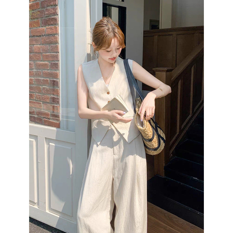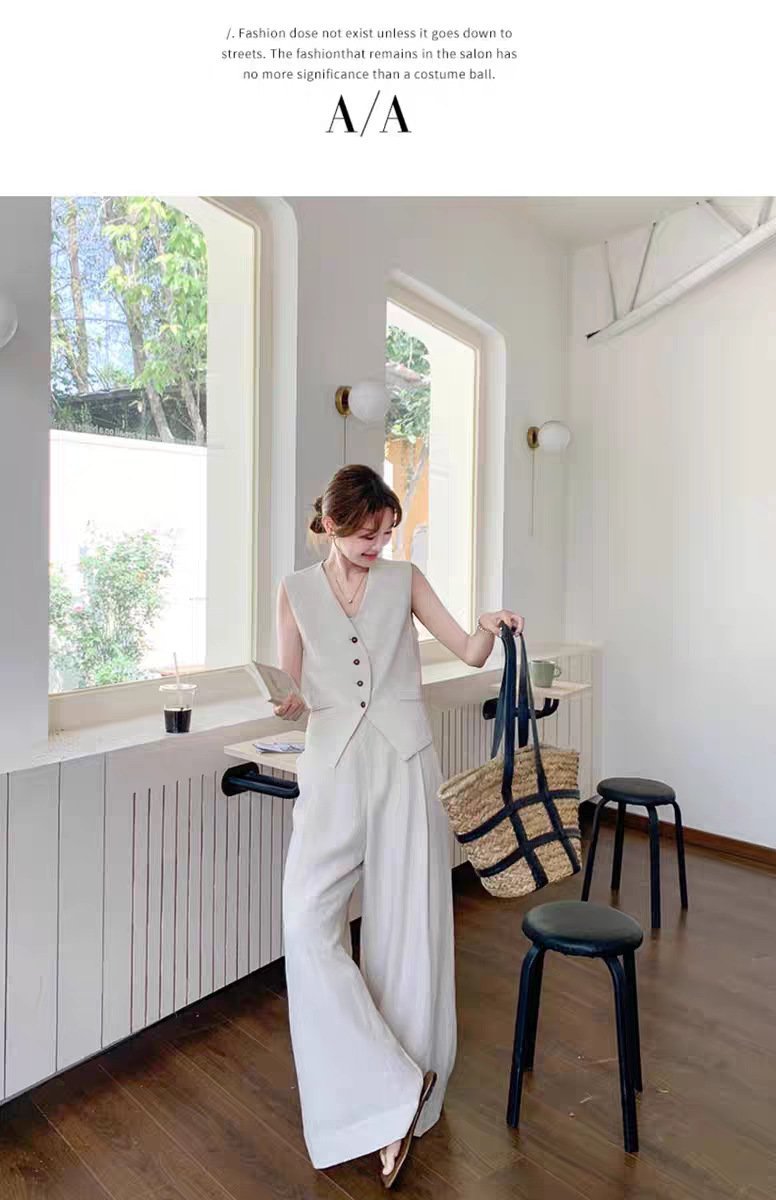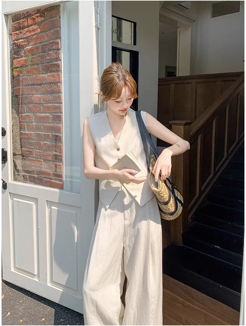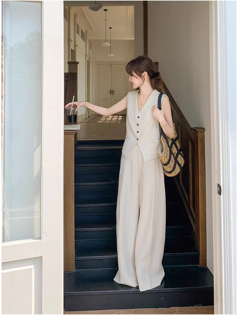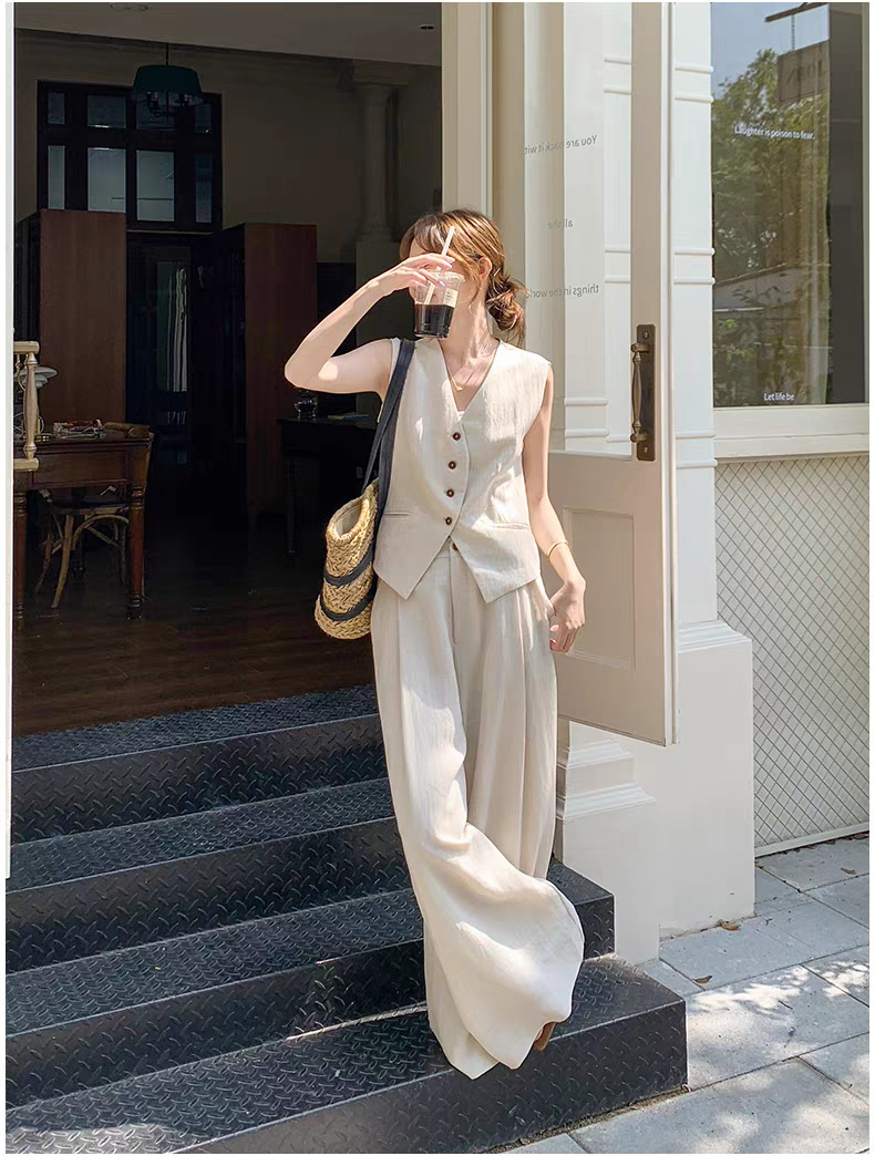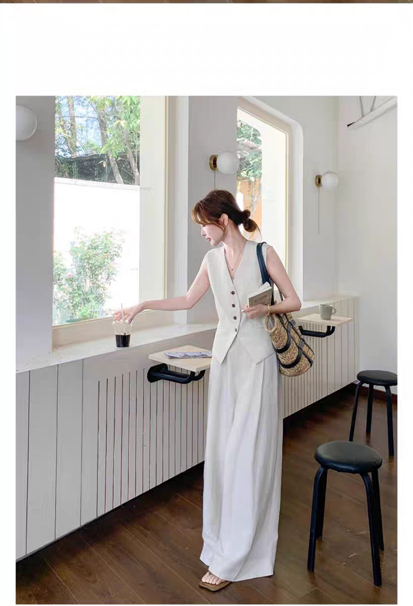 French temperament high-end wear suit women's summer new vest wide-leg pants early autumn two-piece set