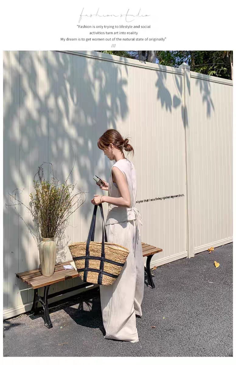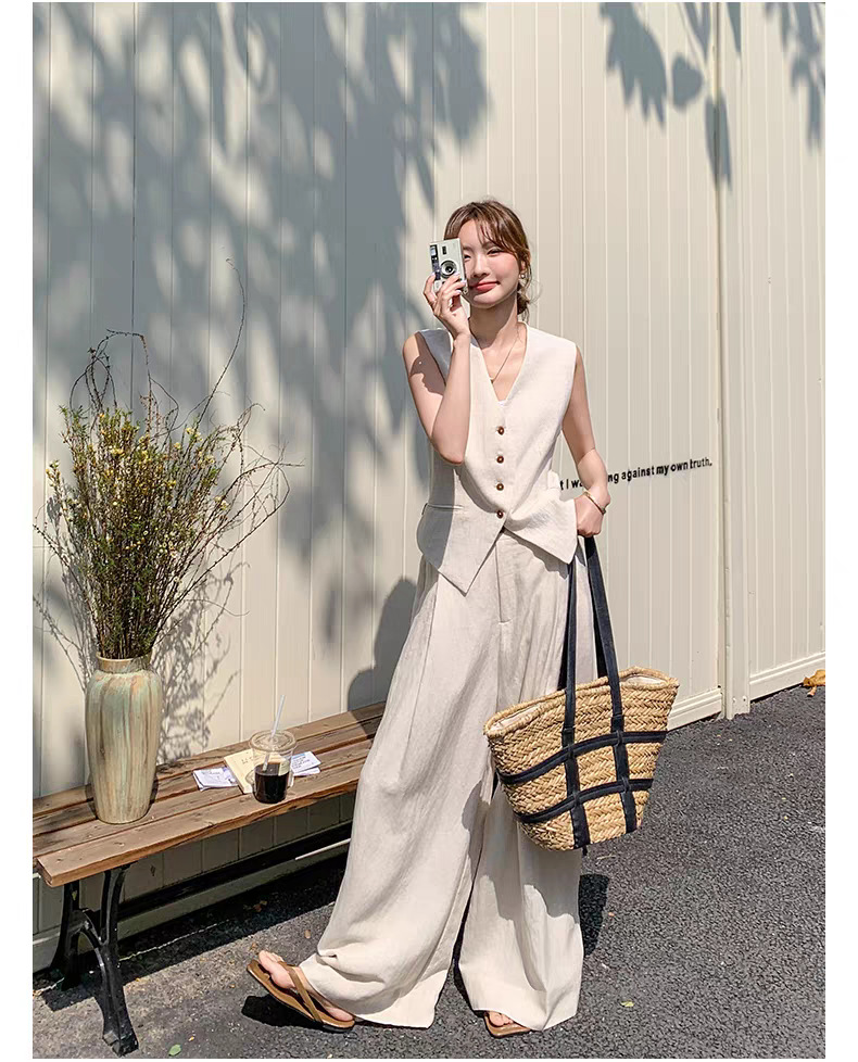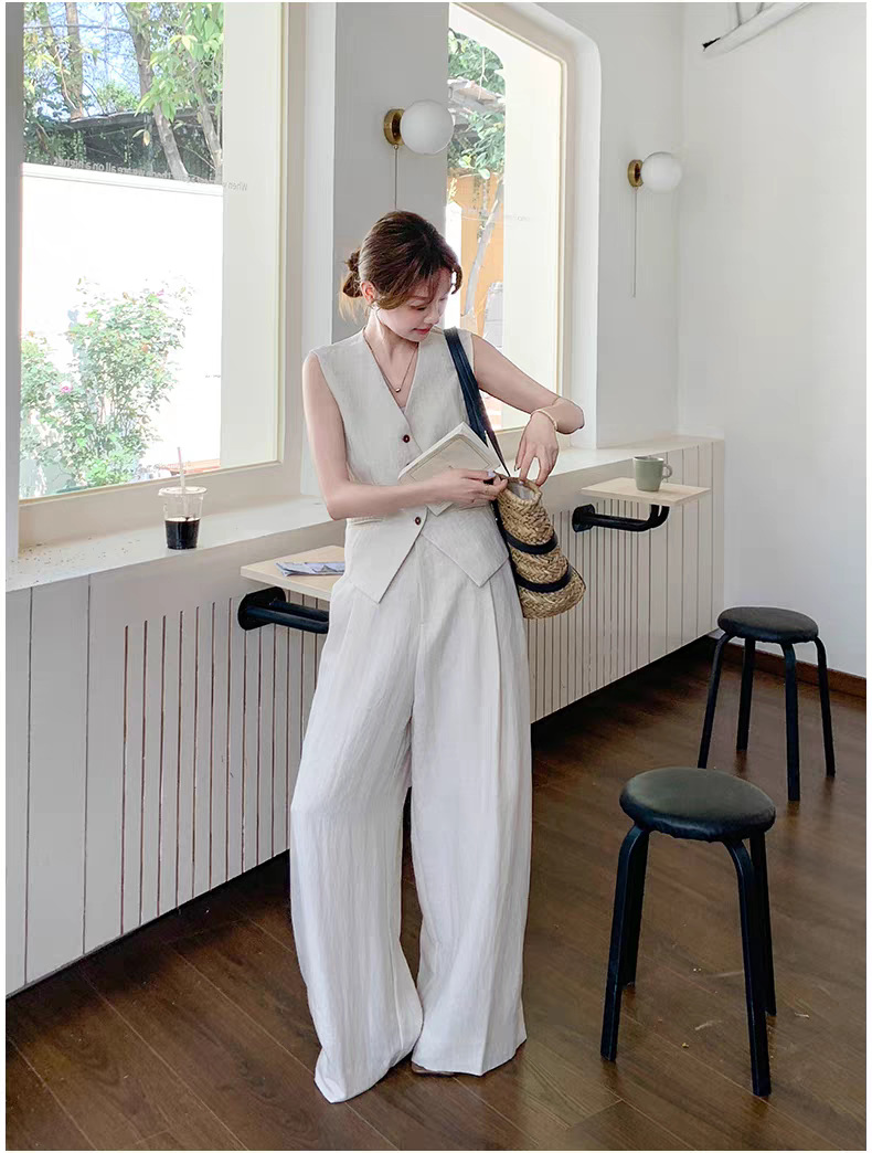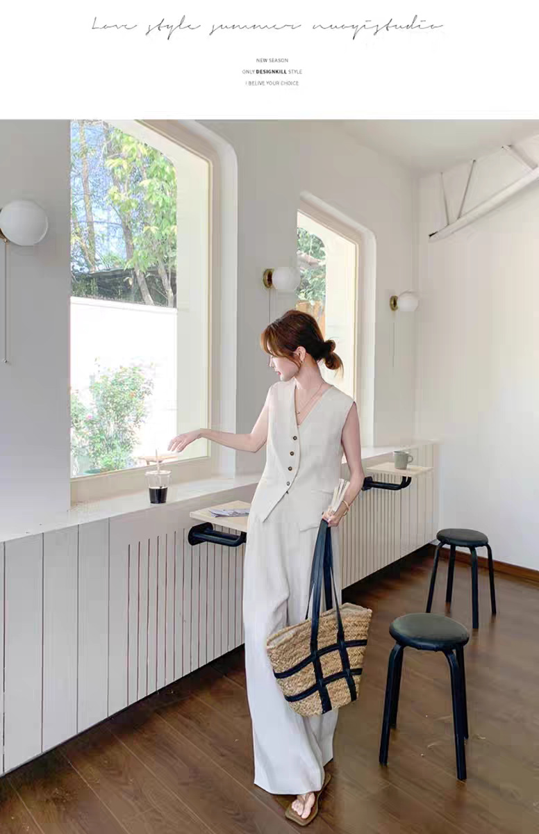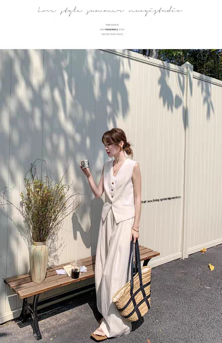 French temperament high-end wear suit women's summer new vest wide-leg pants early autumn two-piece set