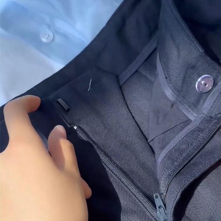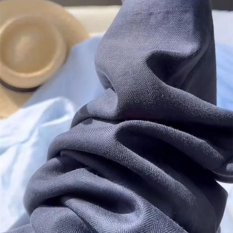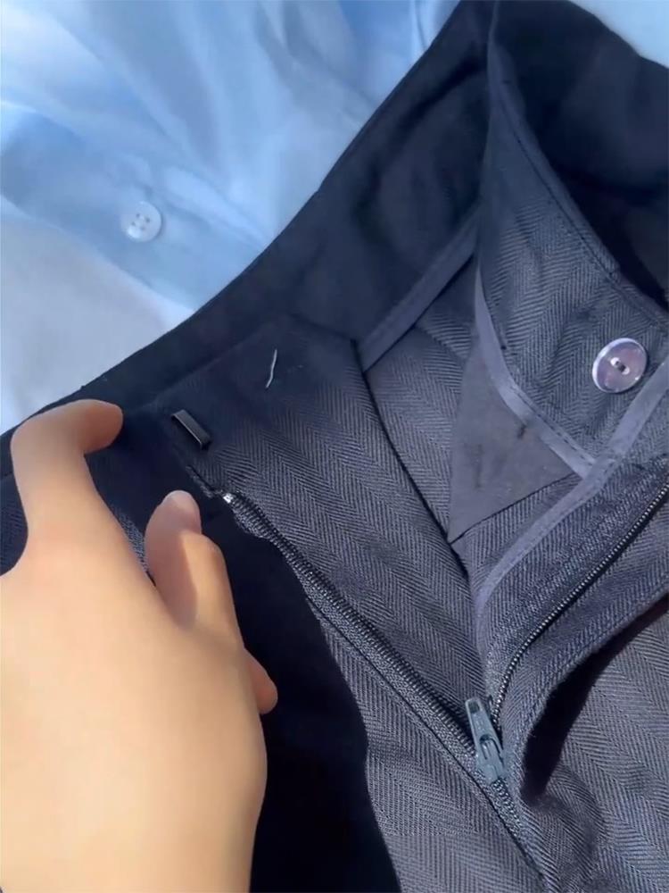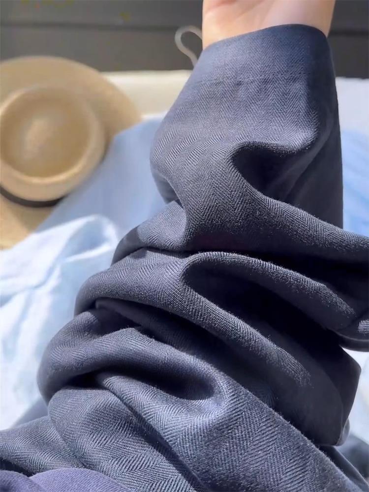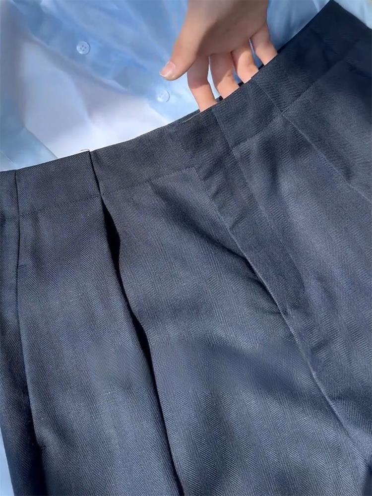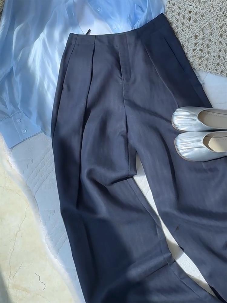 Fried chicken recommended! Old money style navy blue casual pants summer high waist pleated fashion non-stick legs linen suit pants