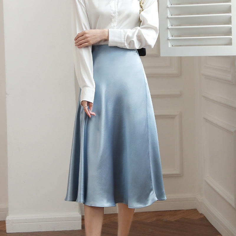 Fried Street Elastic Waist Acetic Acid Skirt High-end Silky 2025 Spring and Summer New Over-the-Knee Swing Skirt