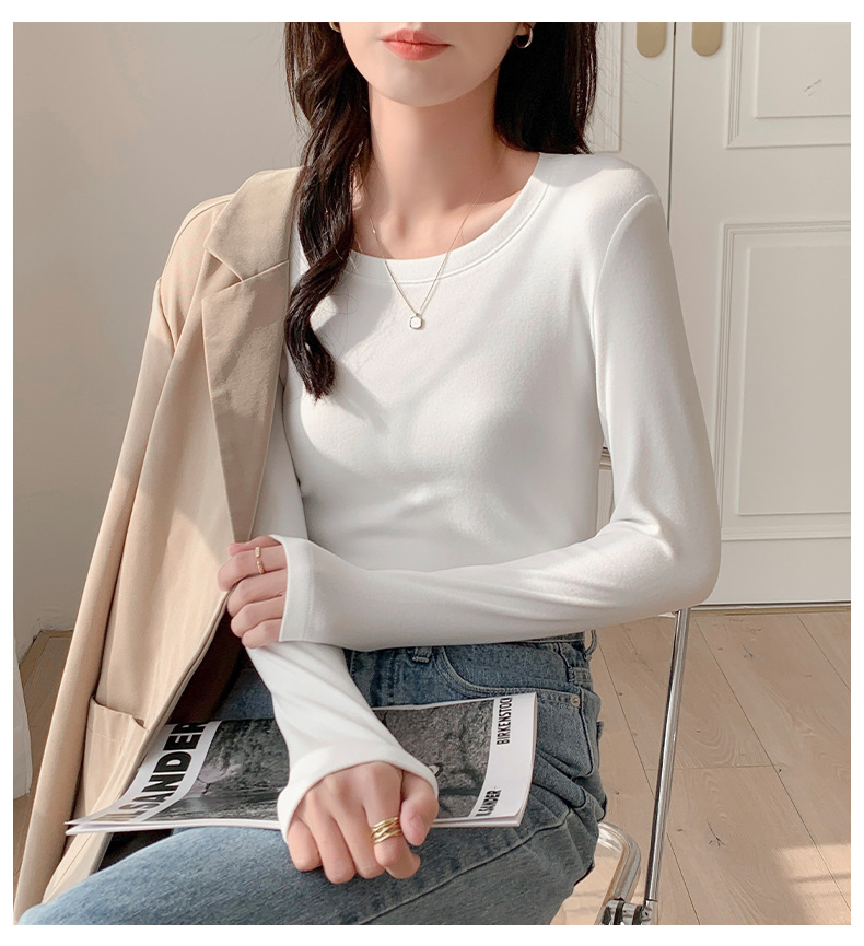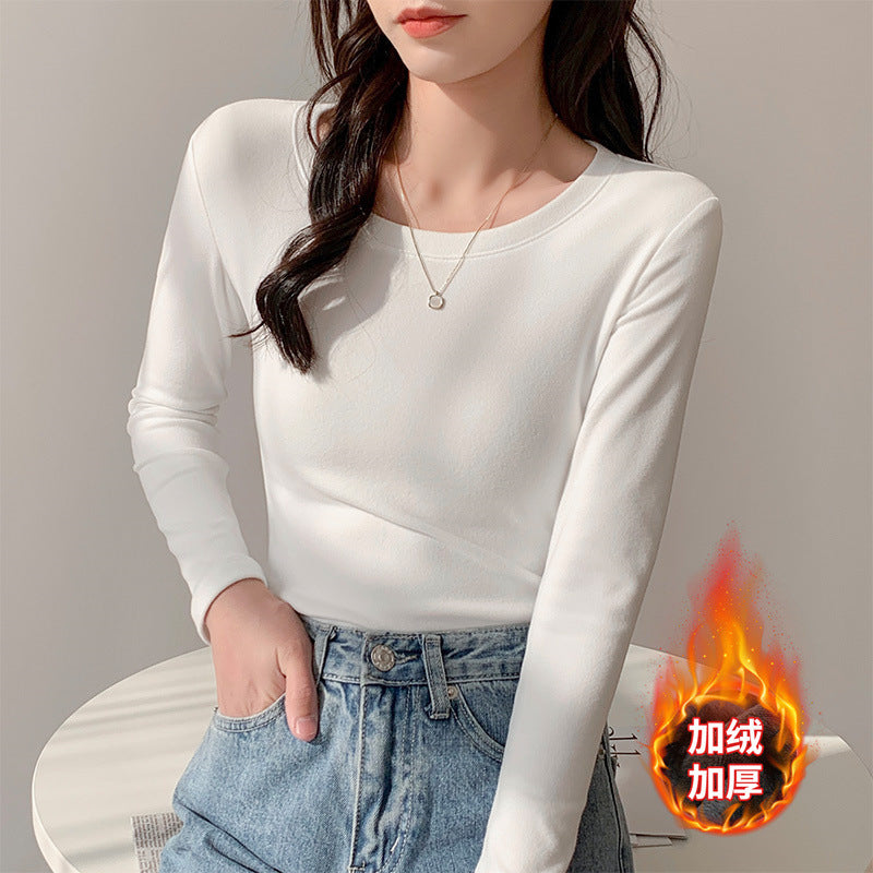 German velvet crew neck bottoming shirt female slim fit versatile autumn and winter new inner top high-end long-sleeved t-shirt small shirt tide