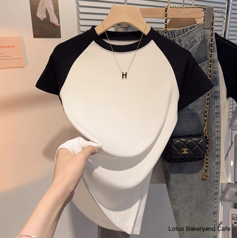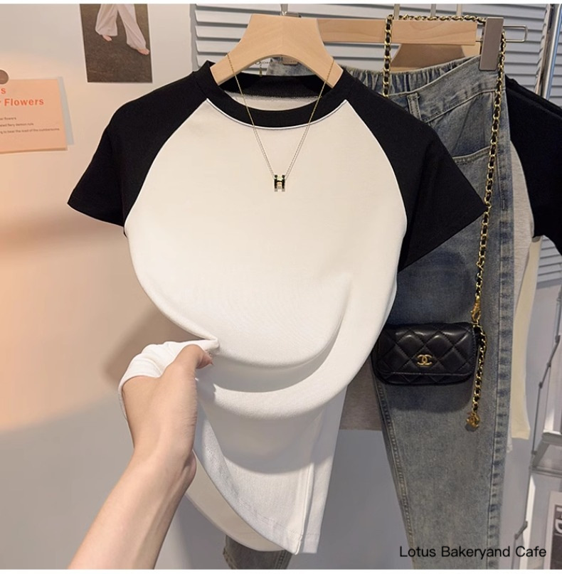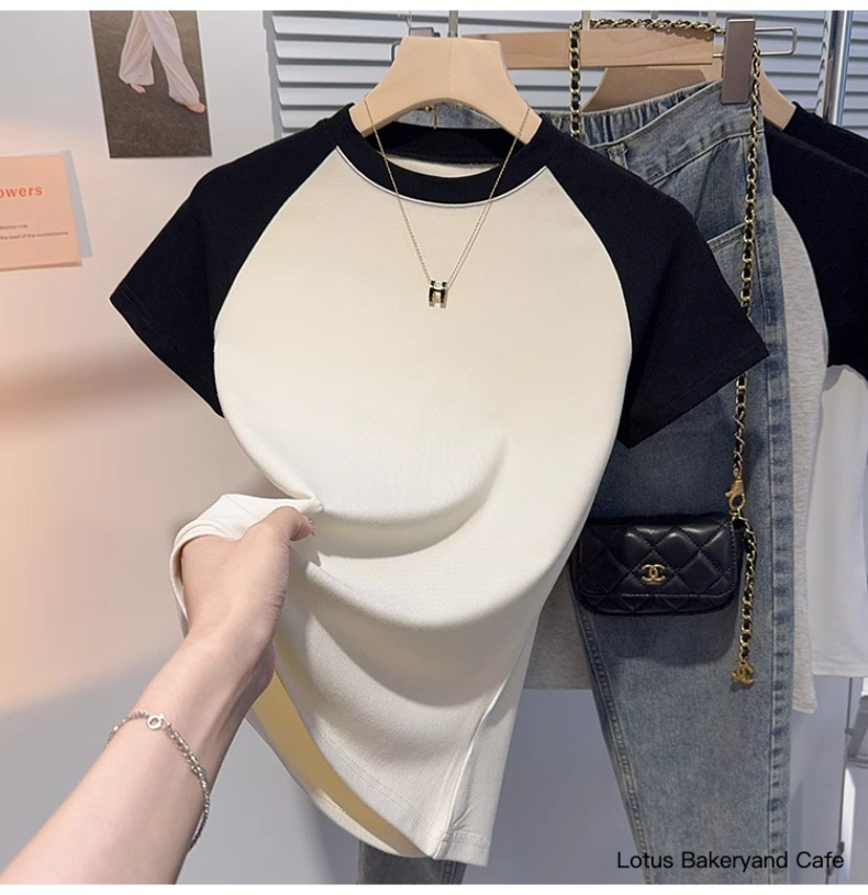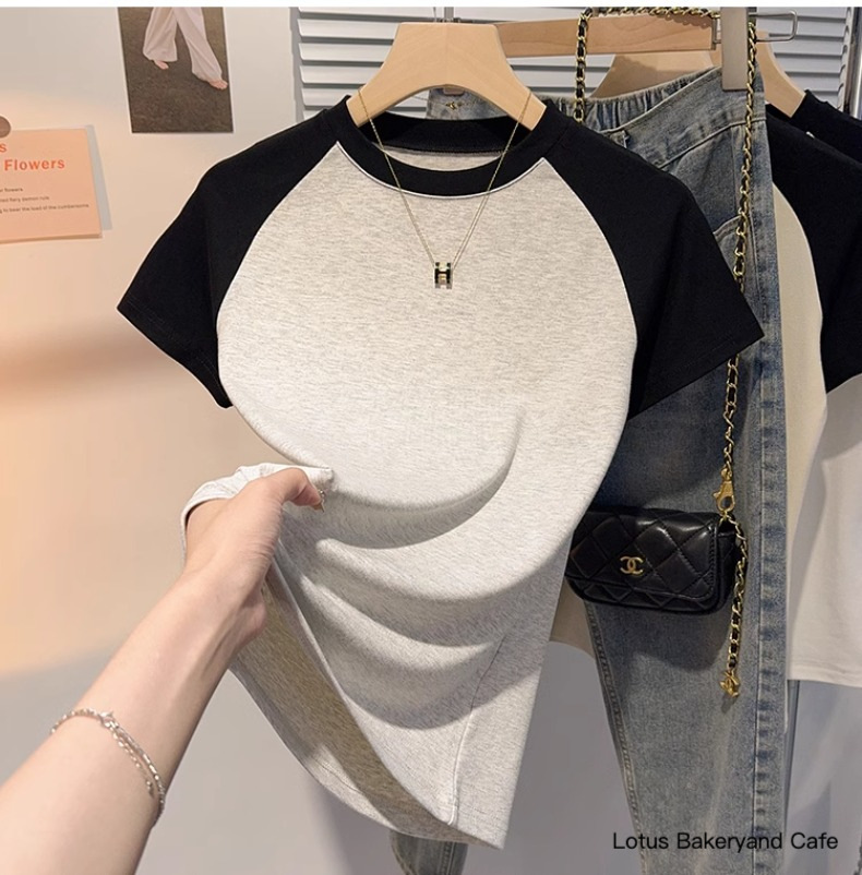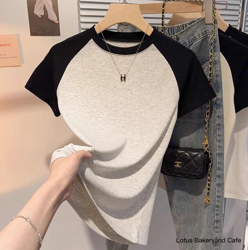 Gray versatile small stand-up collar short-sleeved T-shirt women's 2025 summer new Korean version slim and thin ice silk t-shirt top