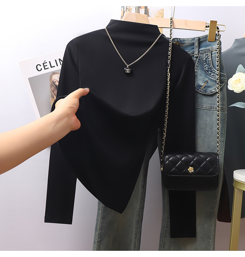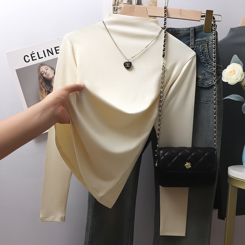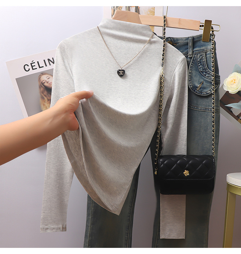 Grey threaded collar long-sleeved bottoming shirt for women's autumn and winter, with fleece, thickened and warm, this year's popular beautiful tops