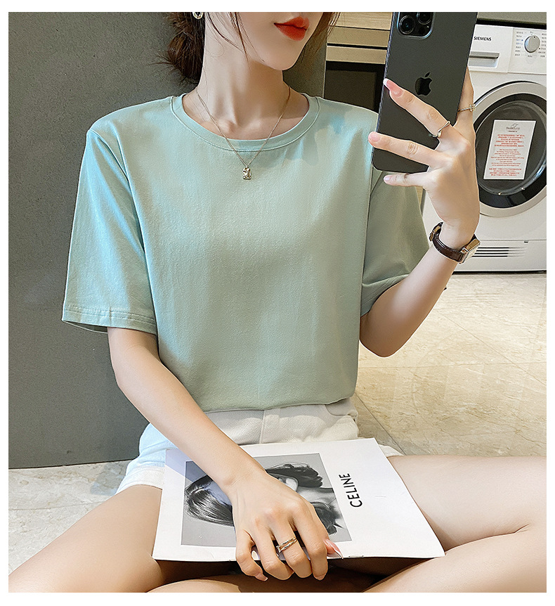 Half-sleeved pure cotton loose short-sleeved t-shirt women's light green age-reducing versatile round neck summer solid color top casual commuting