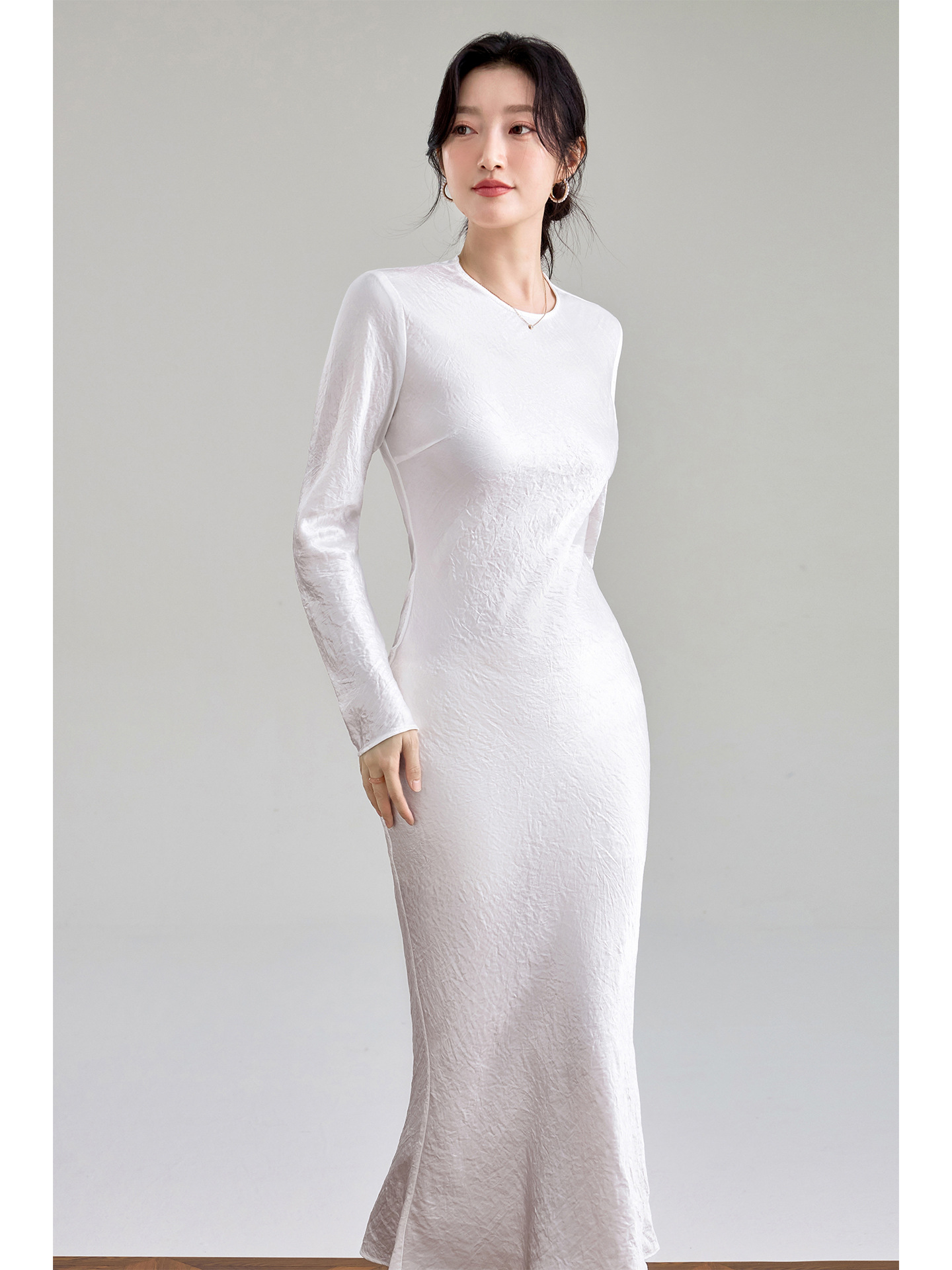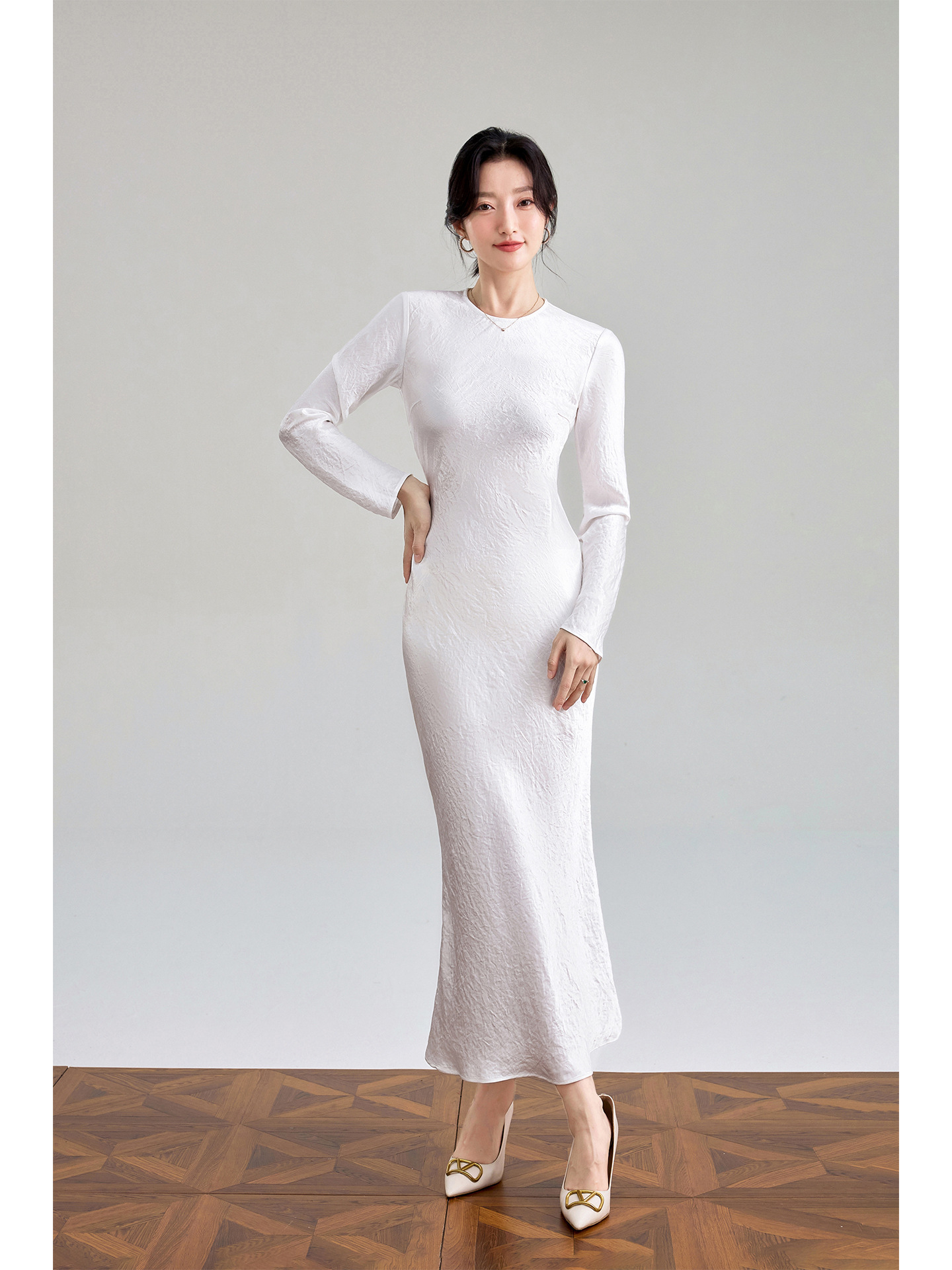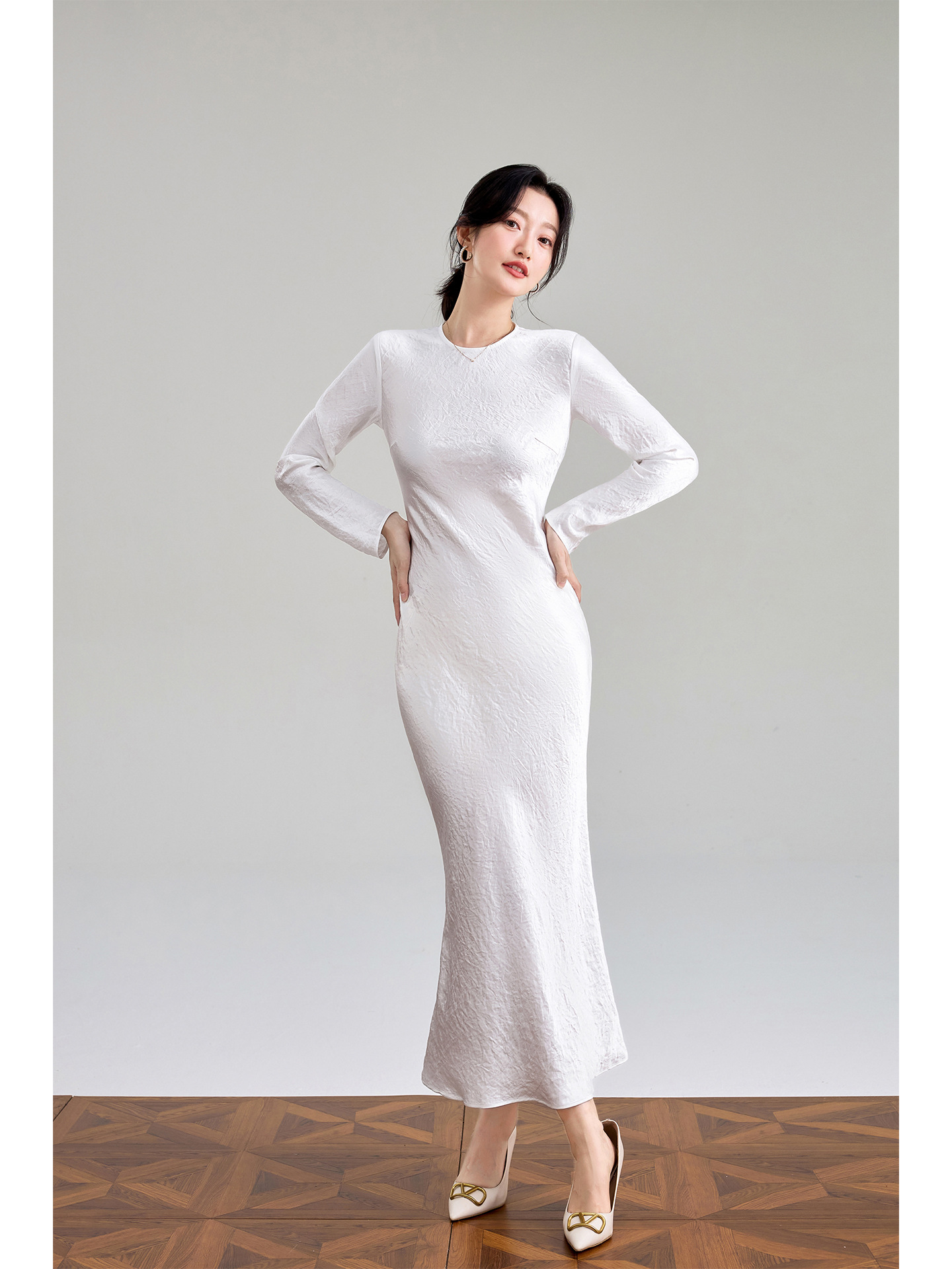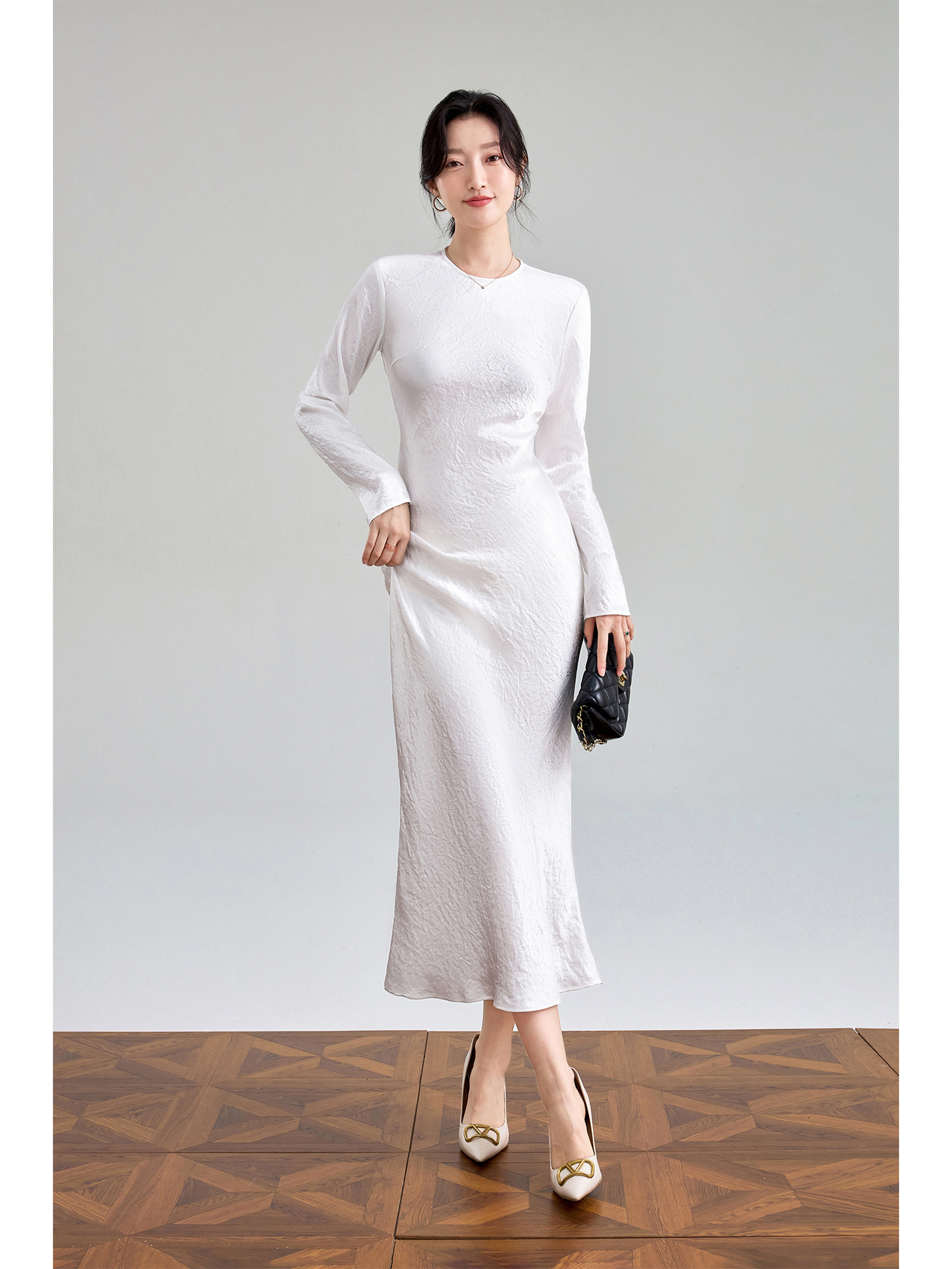 Haute couture 100% acetic acid, spring and autumn French elegance temperament fashionable pole extreme sense satin pleated long-sleeved dress women