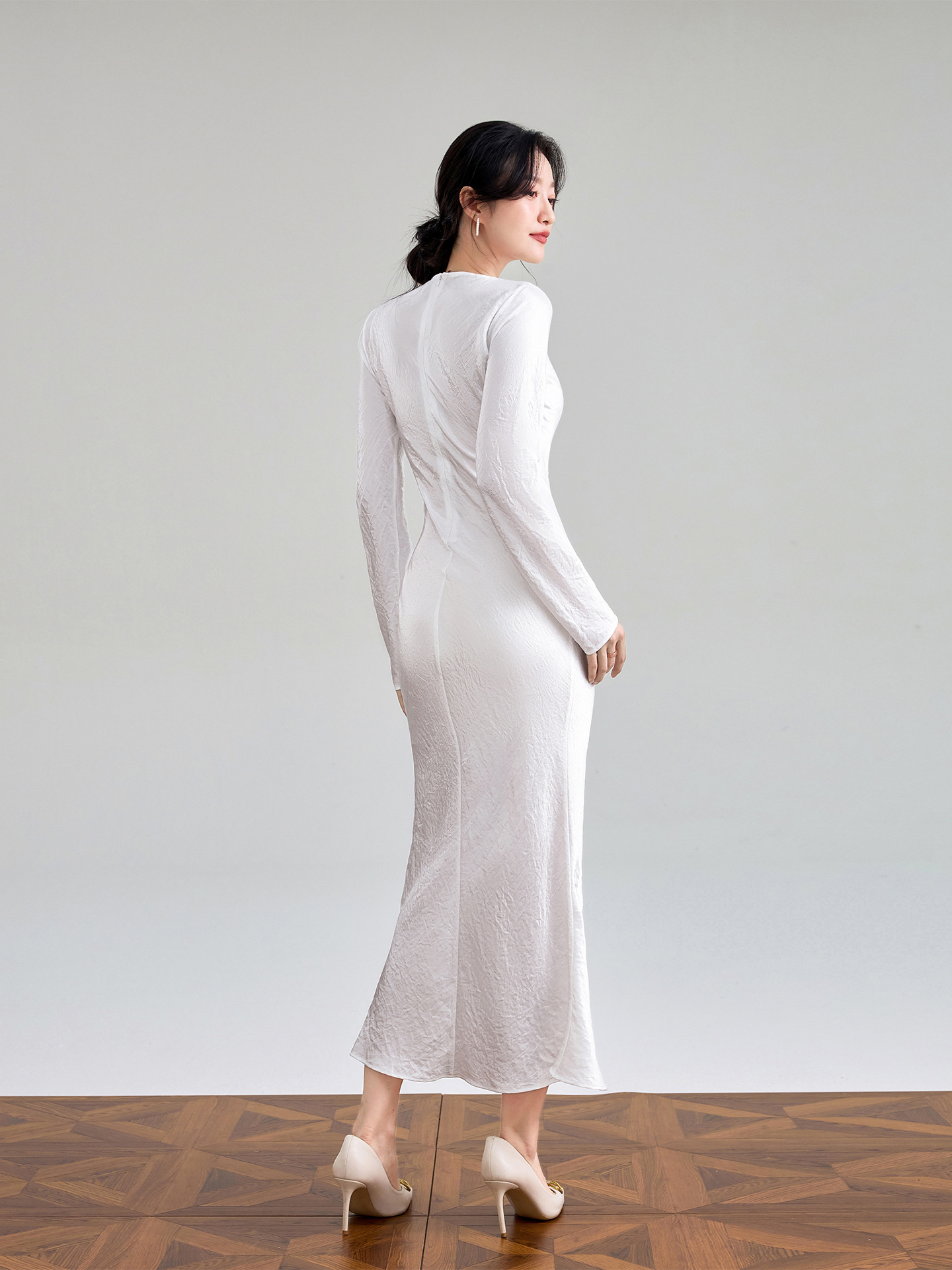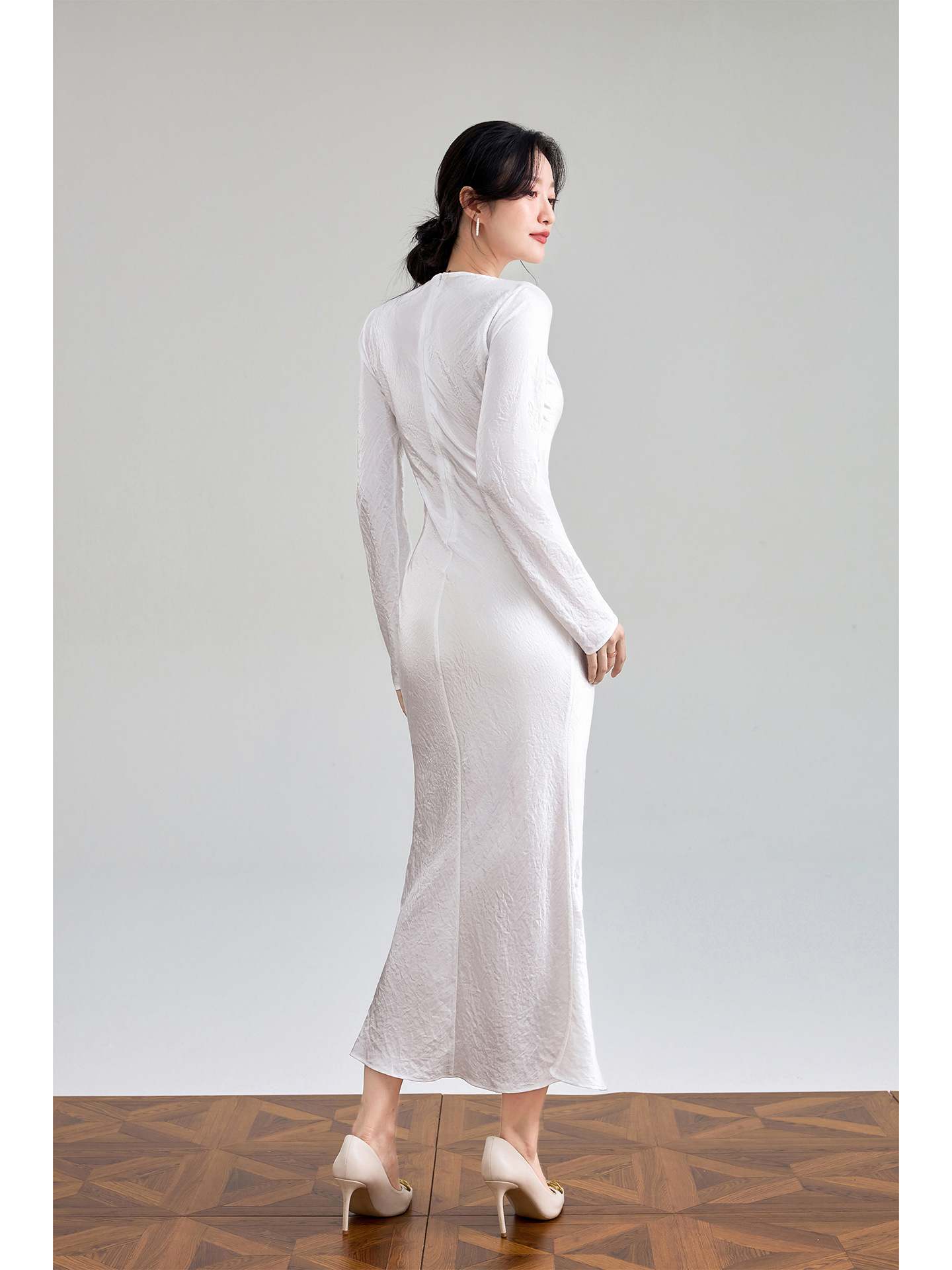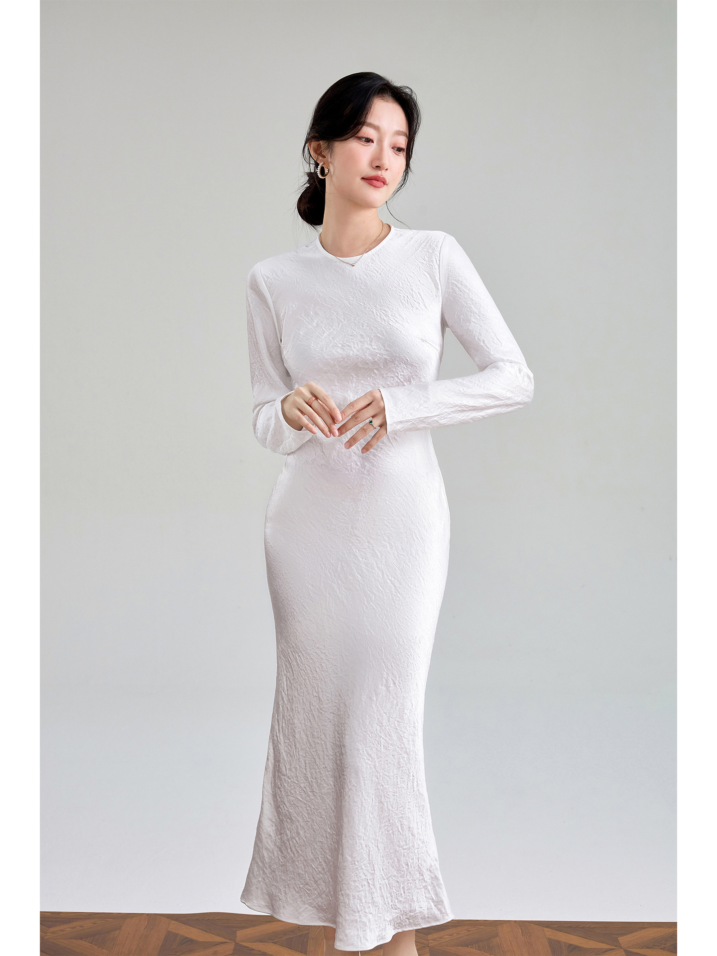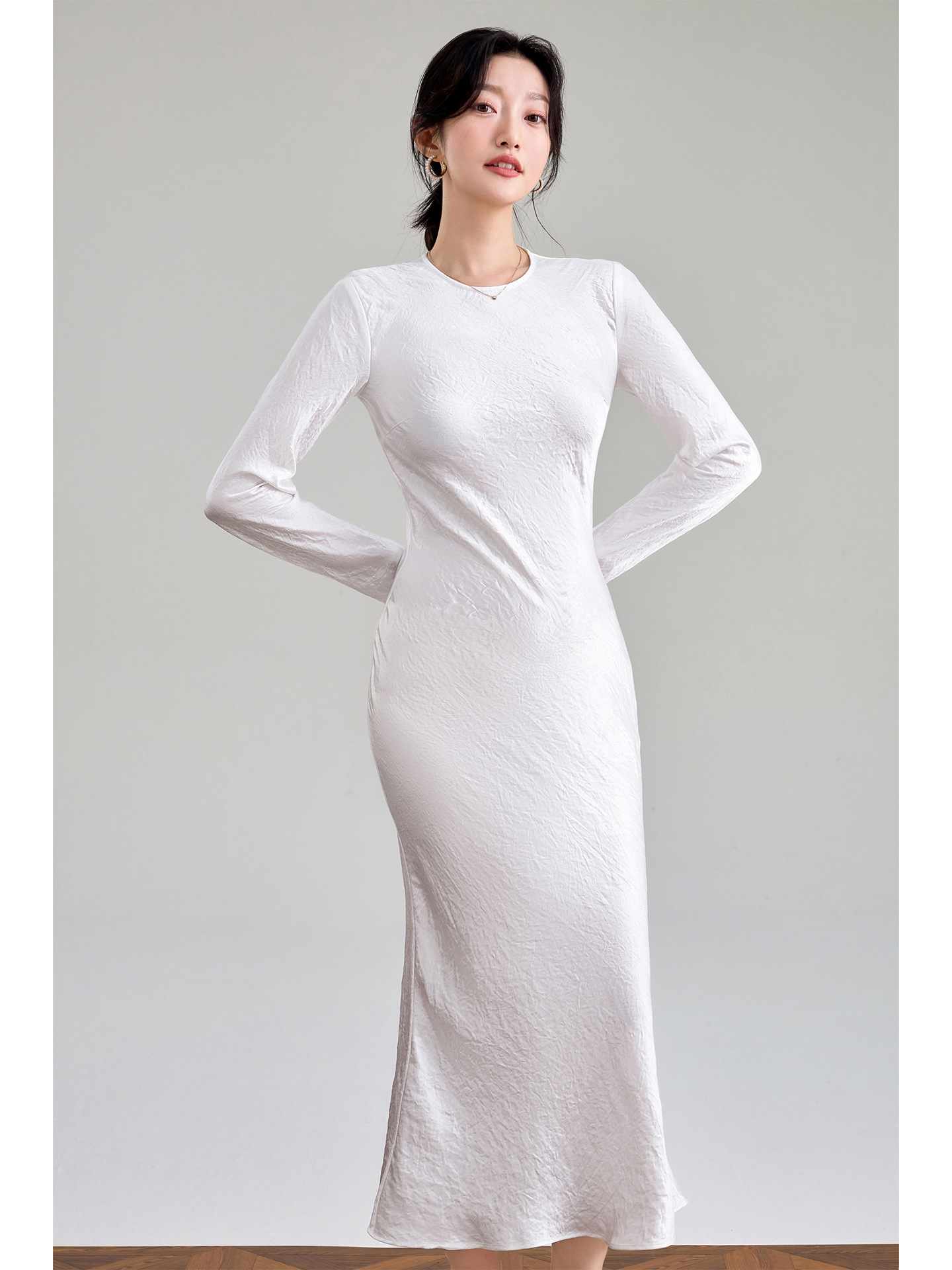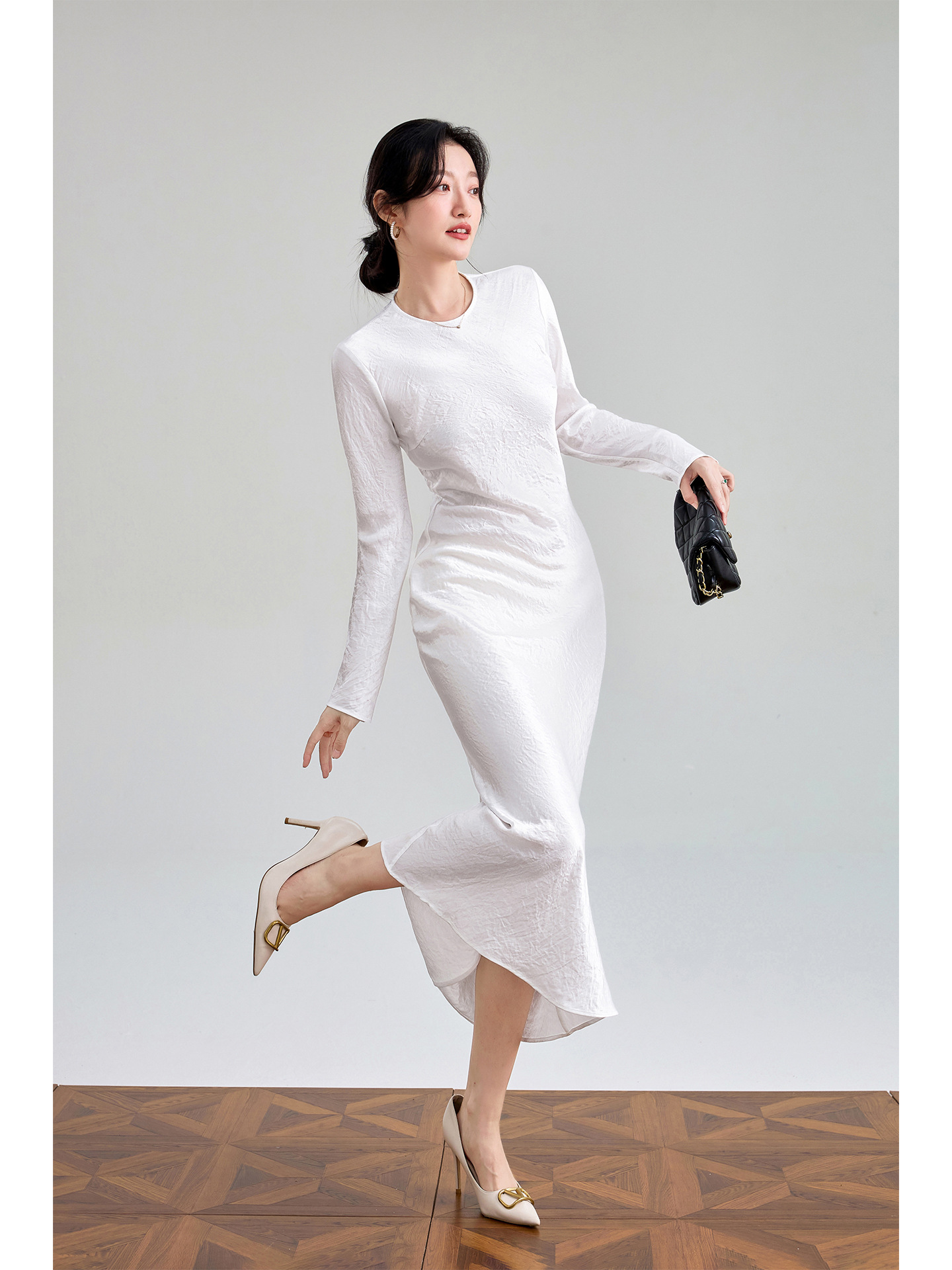 Haute couture 100% acetic acid, spring and autumn French elegance temperament fashionable pole extreme sense satin pleated long-sleeved dress women