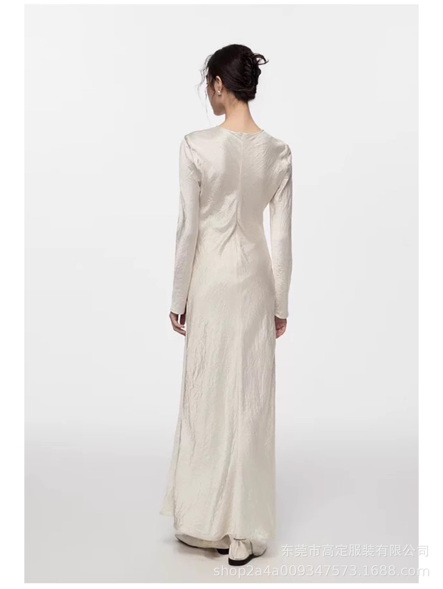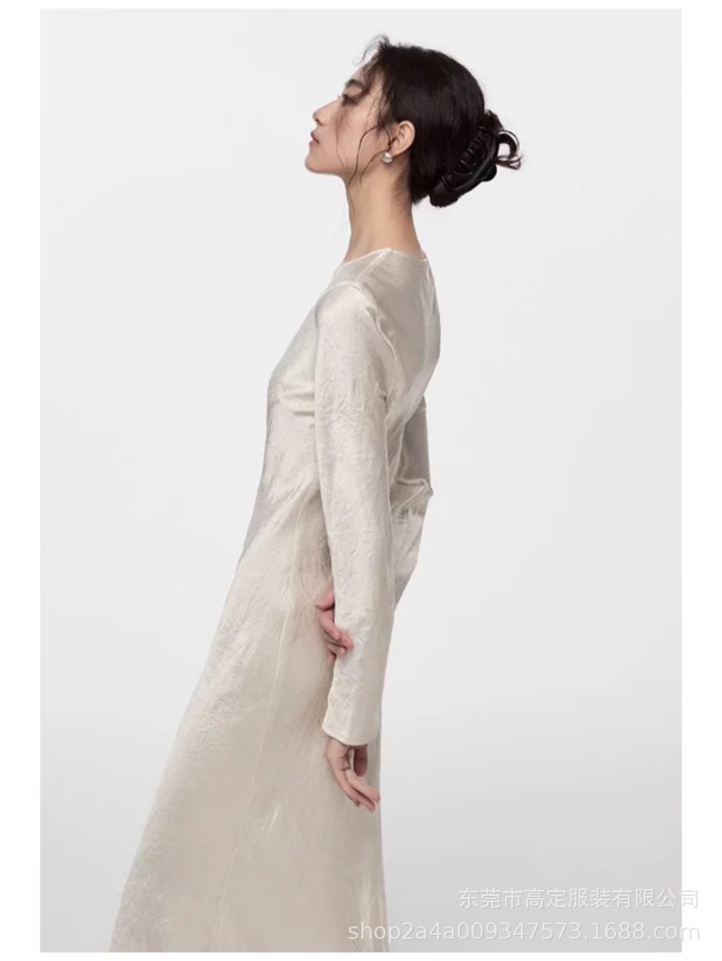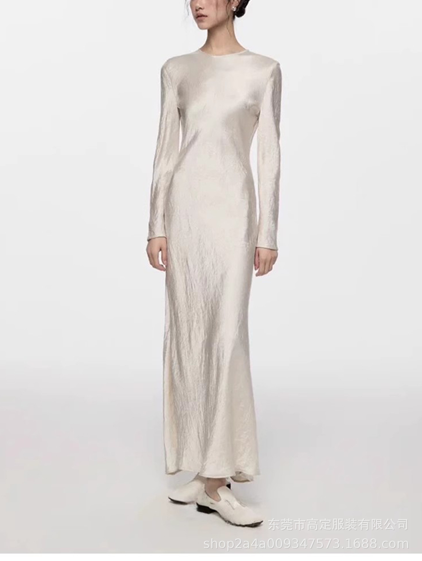 Haute couture 100% acetic acid, spring and autumn French elegance temperament fashionable pole extreme sense satin pleated long-sleeved dress women