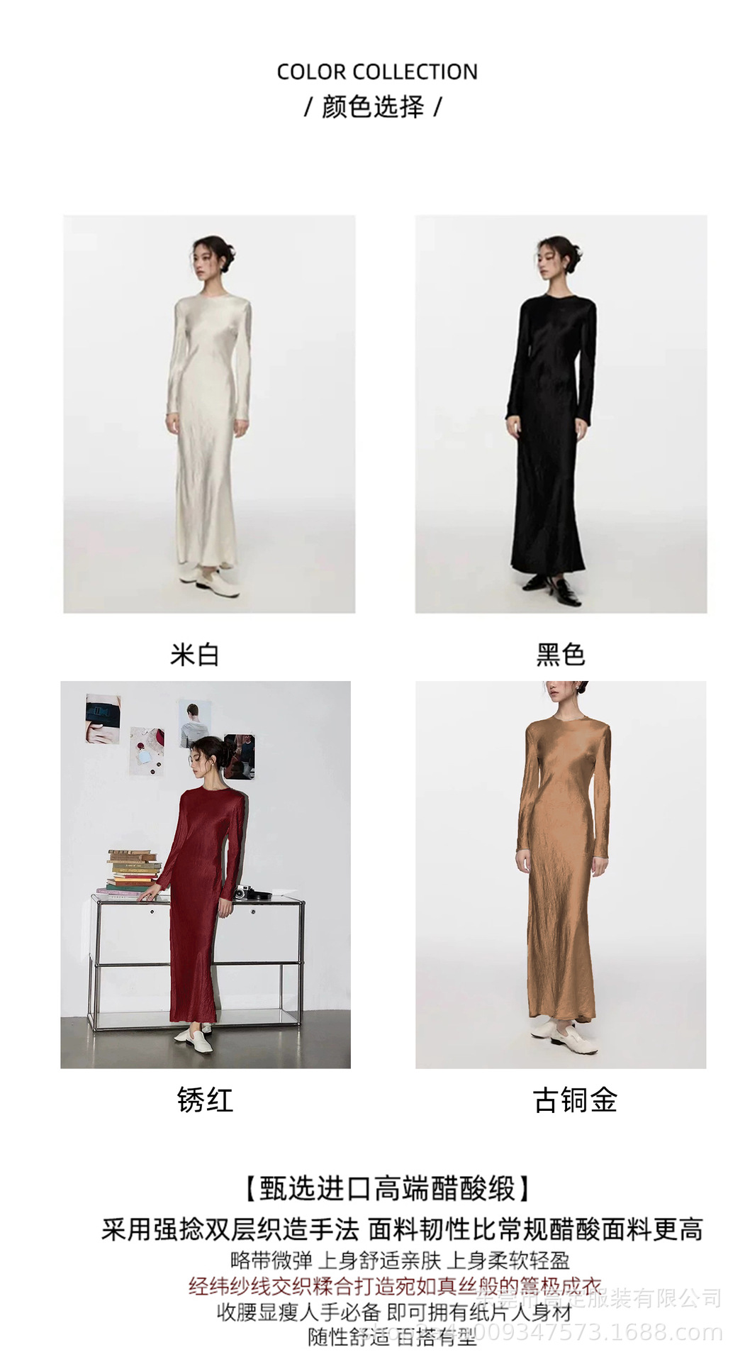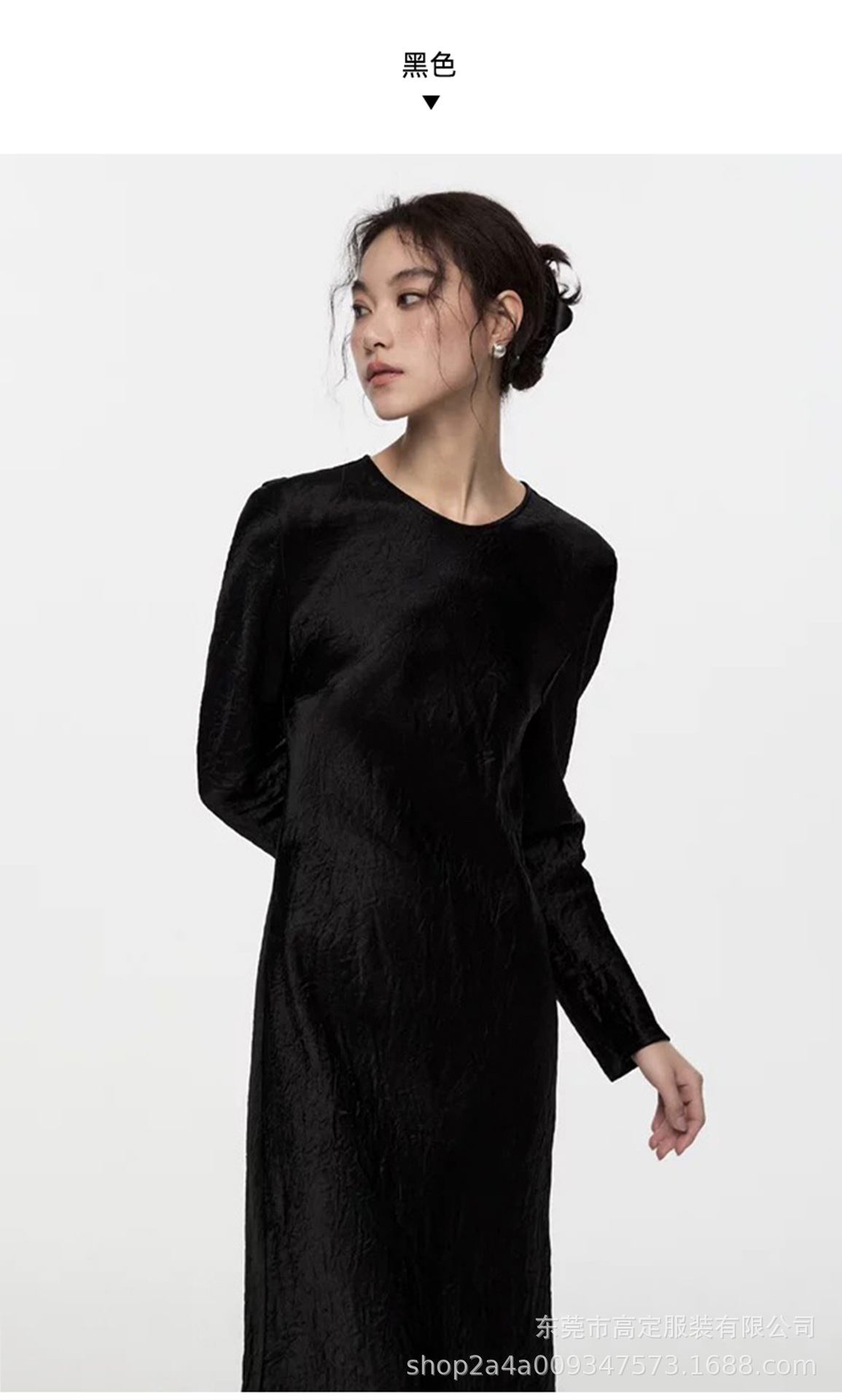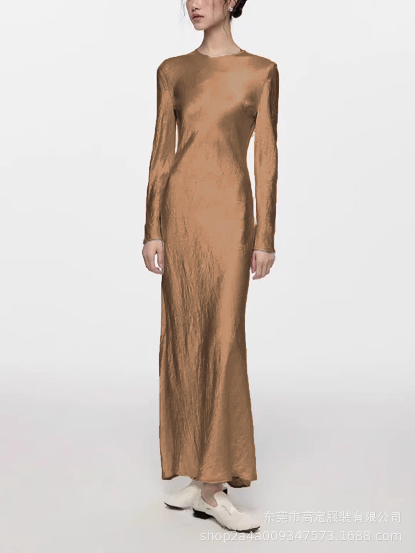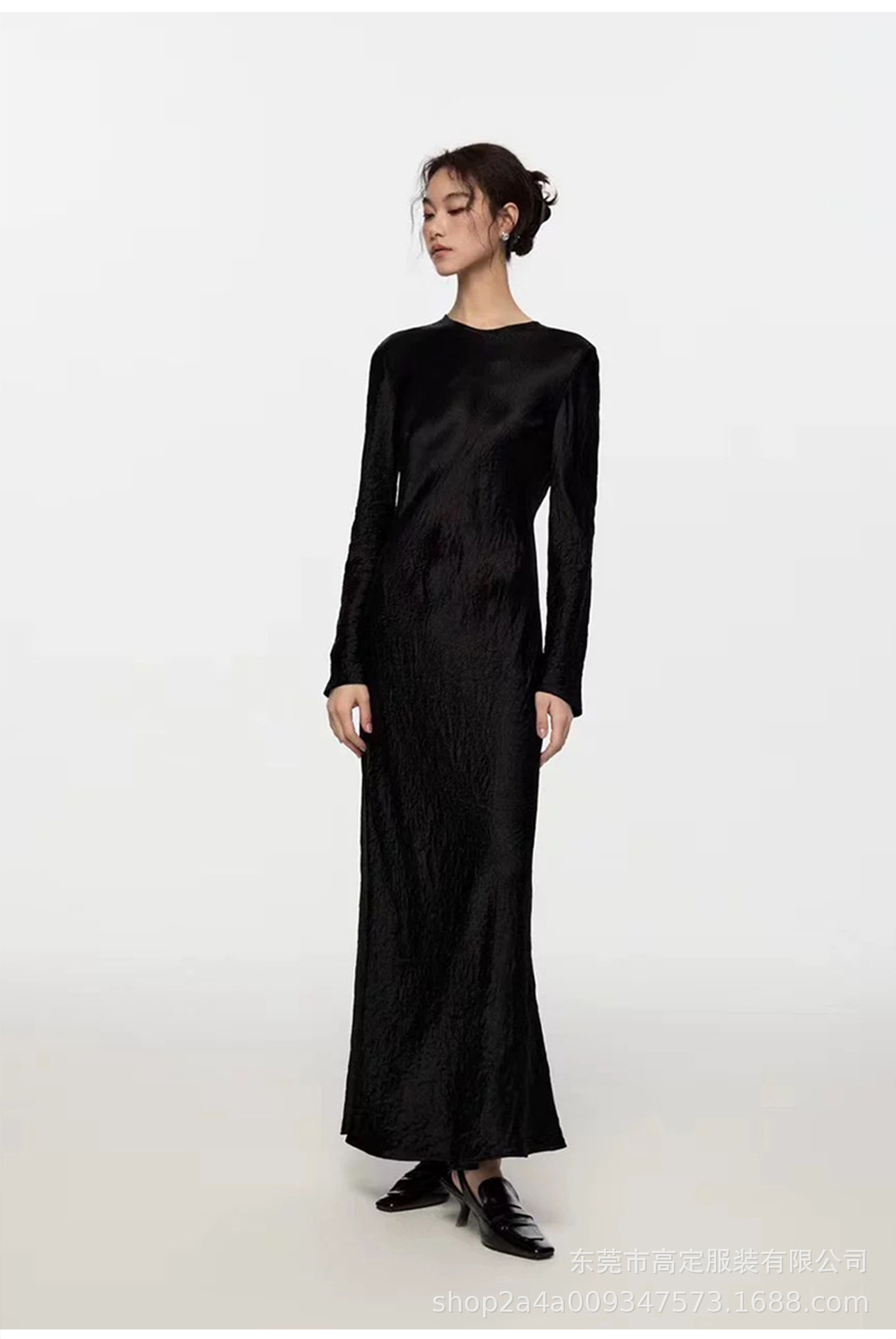 Haute couture 100% acetic acid, spring and autumn French elegance temperament fashionable pole extreme sense satin pleated long-sleeved dress women