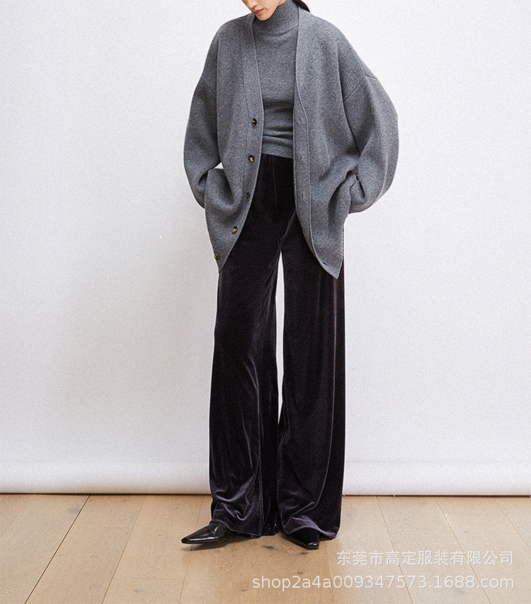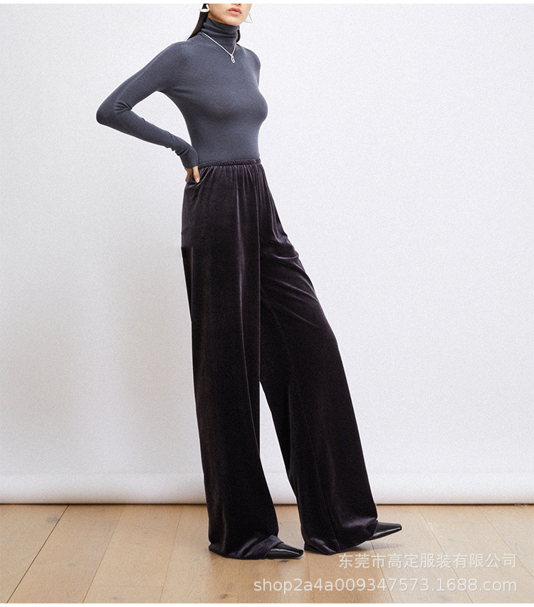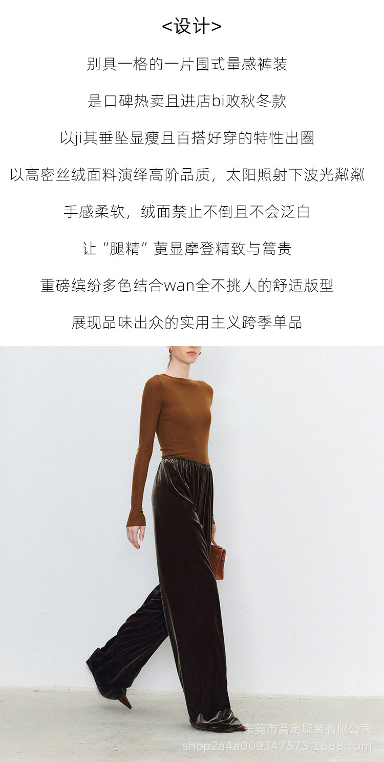 Haute couture clothing delicate velvet one piece neat tailoring thin autumn and winter casual air pants drape wide leg pants women