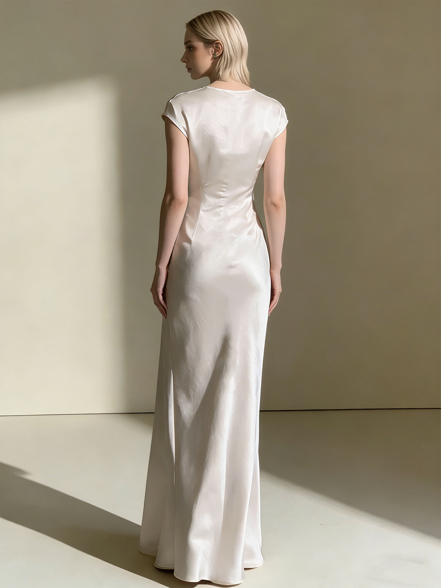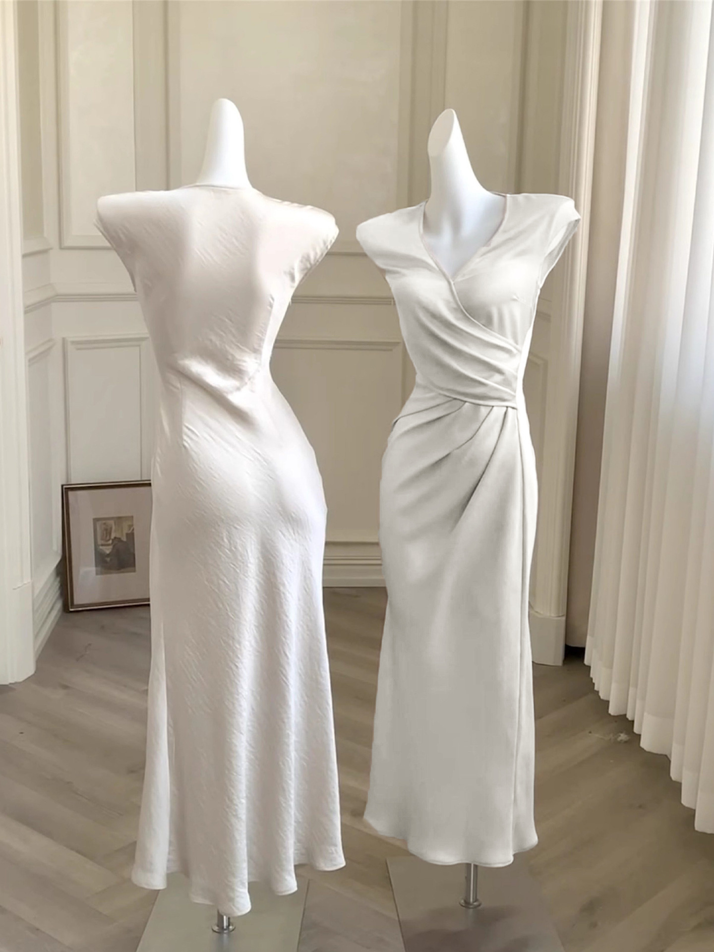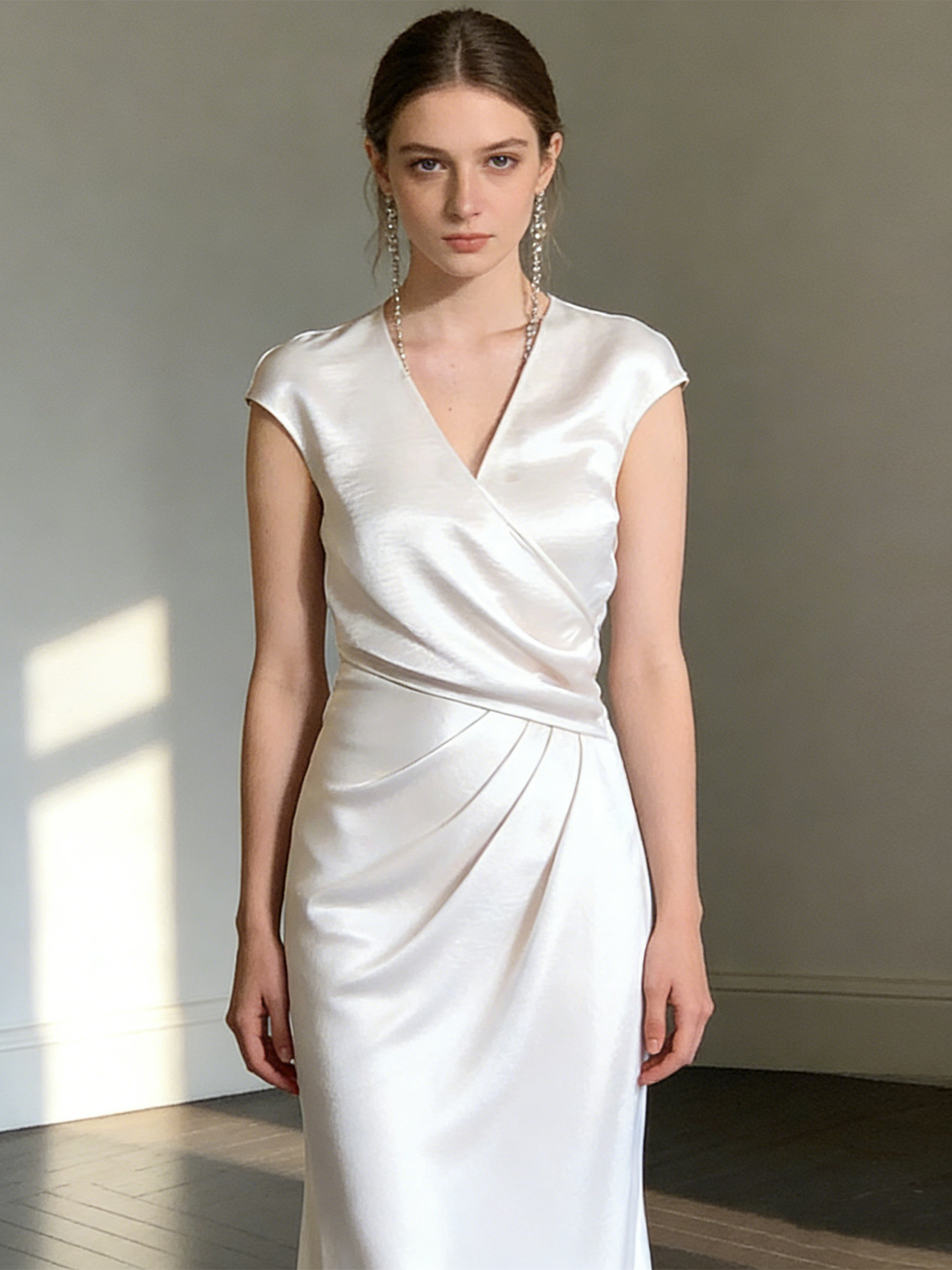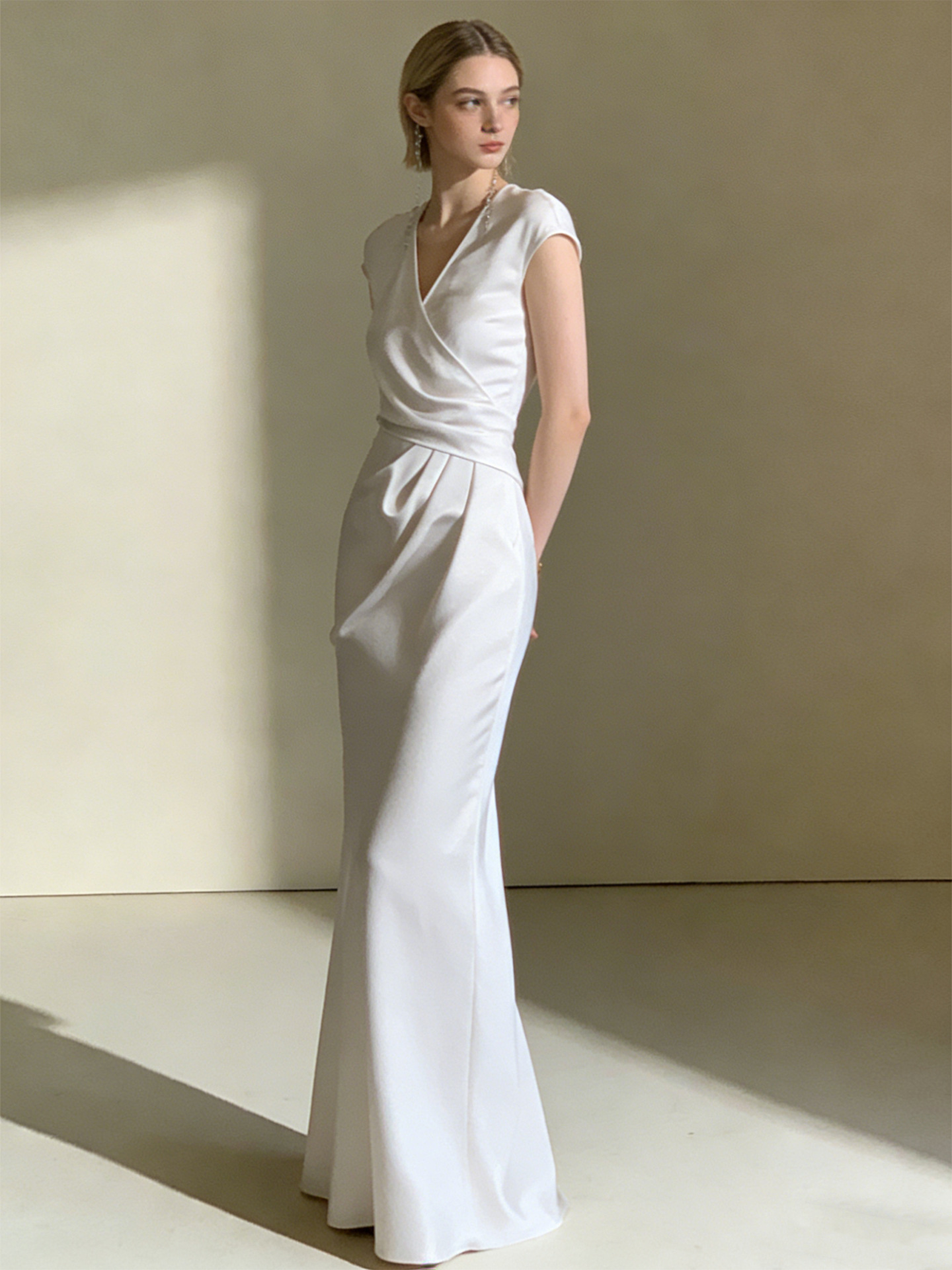 Haute couture French high-end feeling daughter feeling expensive feeling temperament satin overlapping V-neck summer waist thin fishtail dress