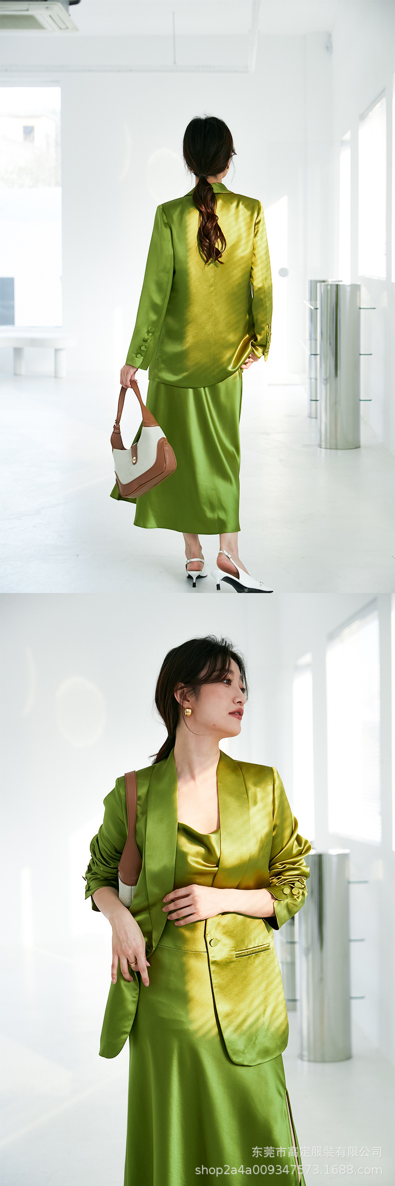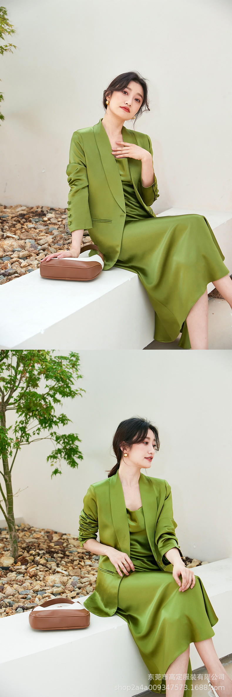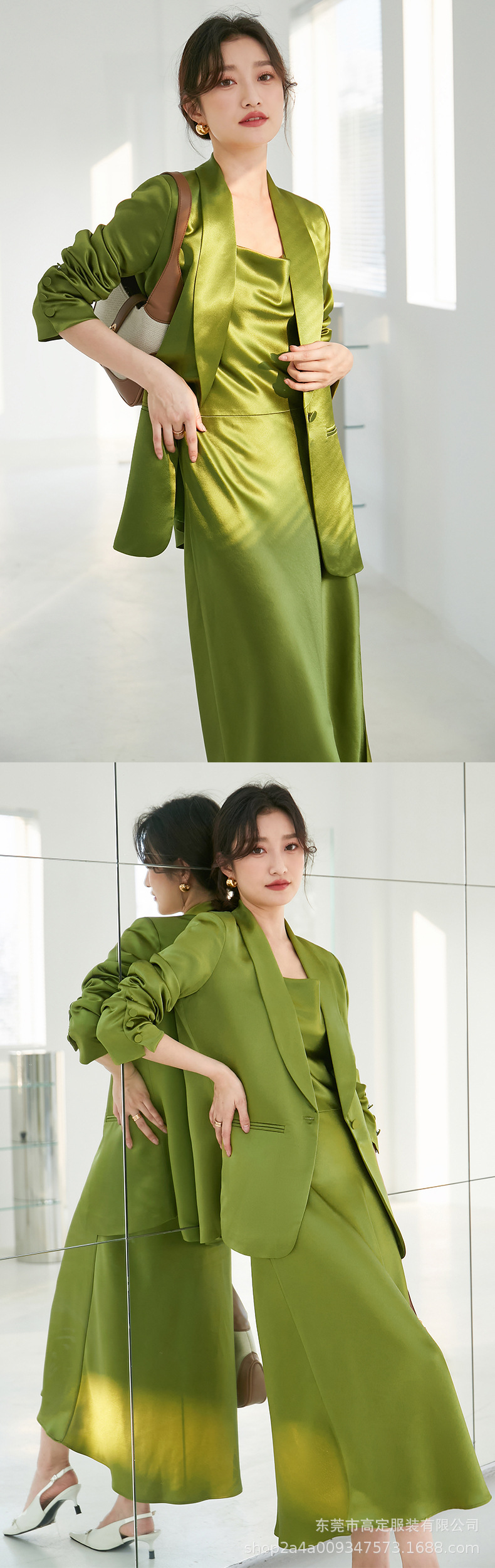 Haute couture gilt Japanese imported acetic acid satin suit celebrity temperament capable temperament powerful swing collar