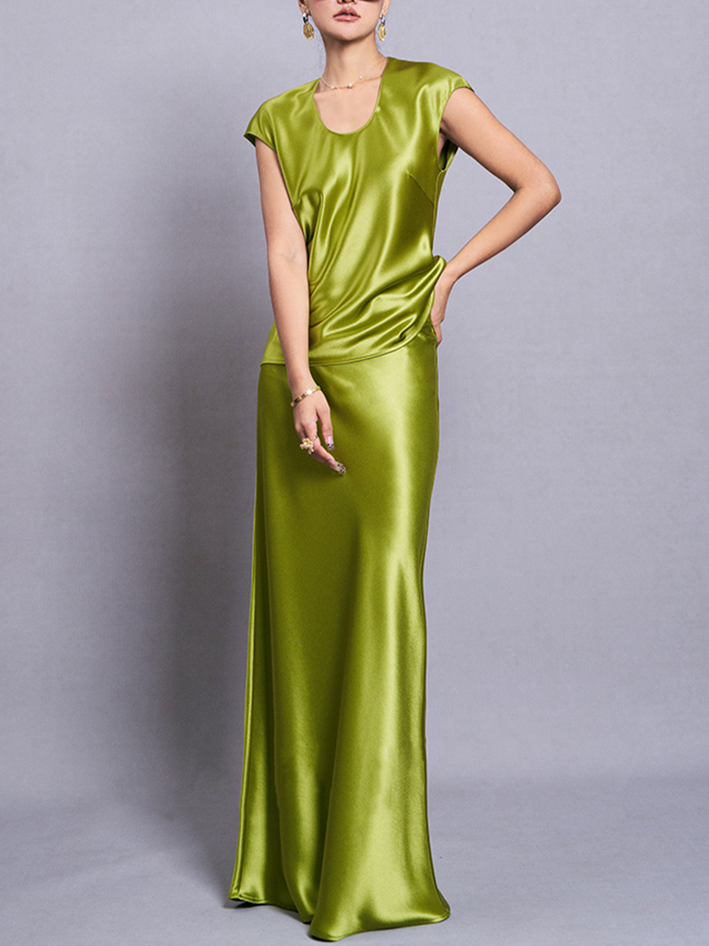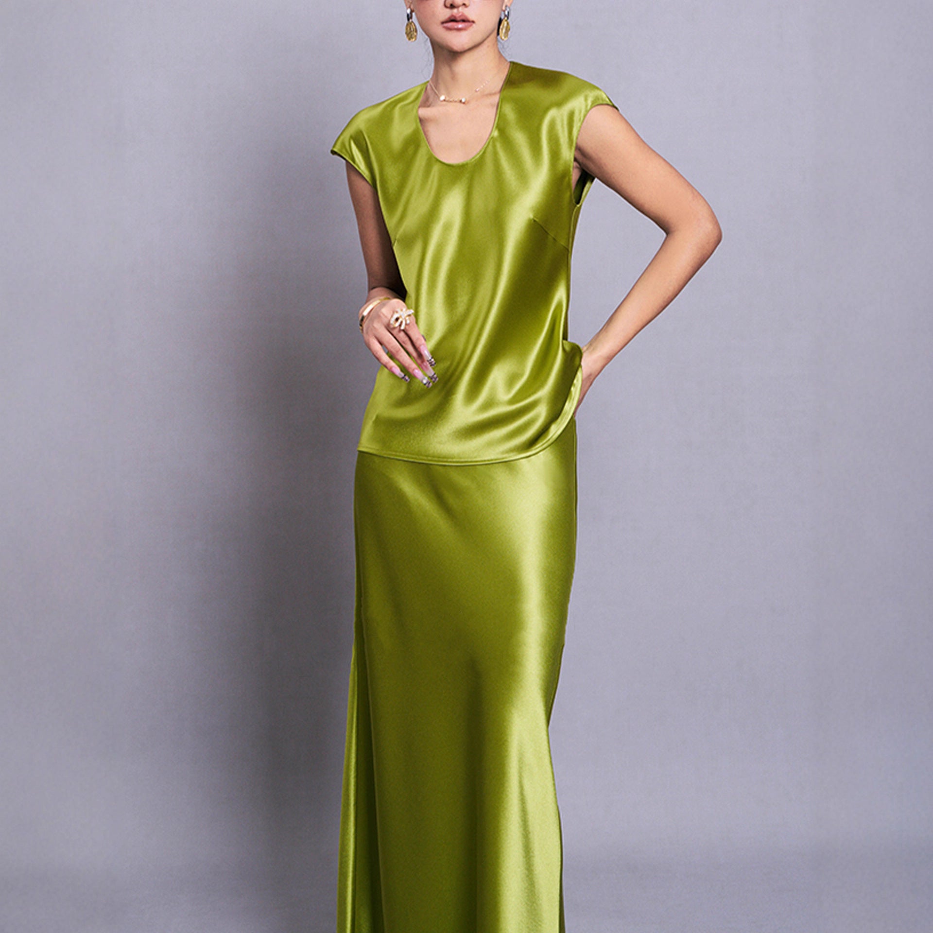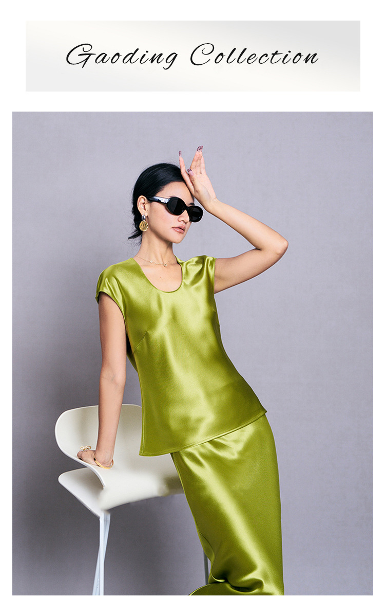Haute Couture Heavy imported triacetate satin shirt sexy and elegant U-neck acetate satin shirt vest base shirt