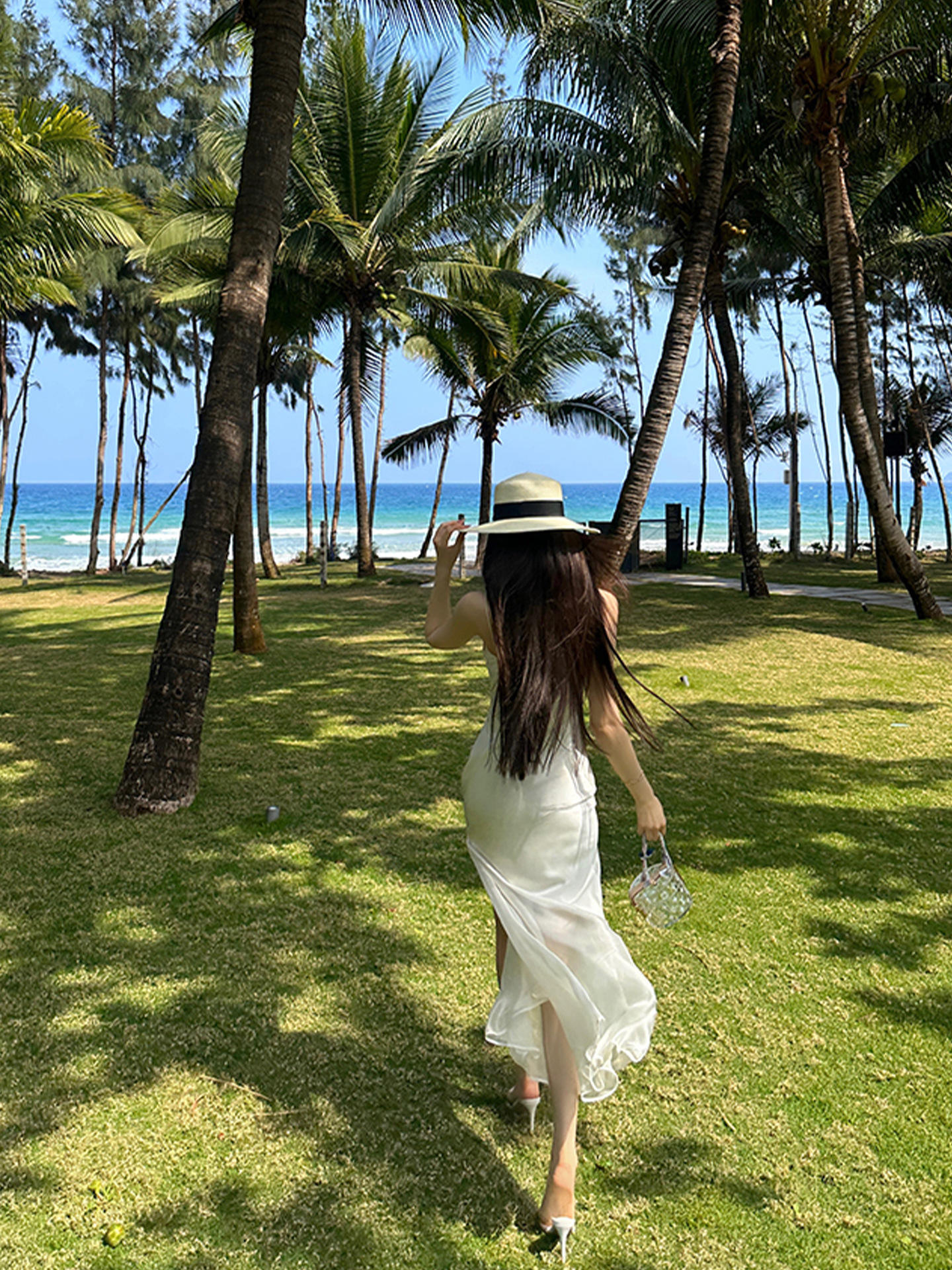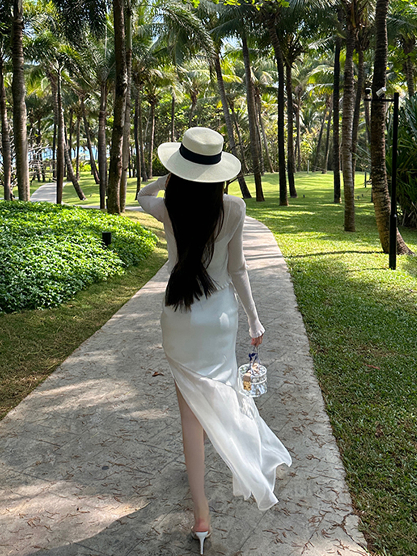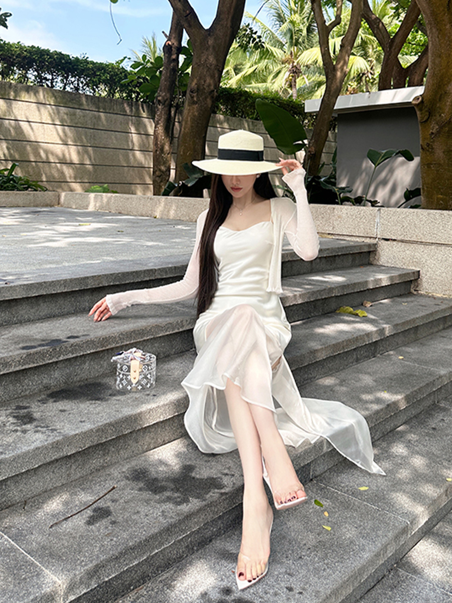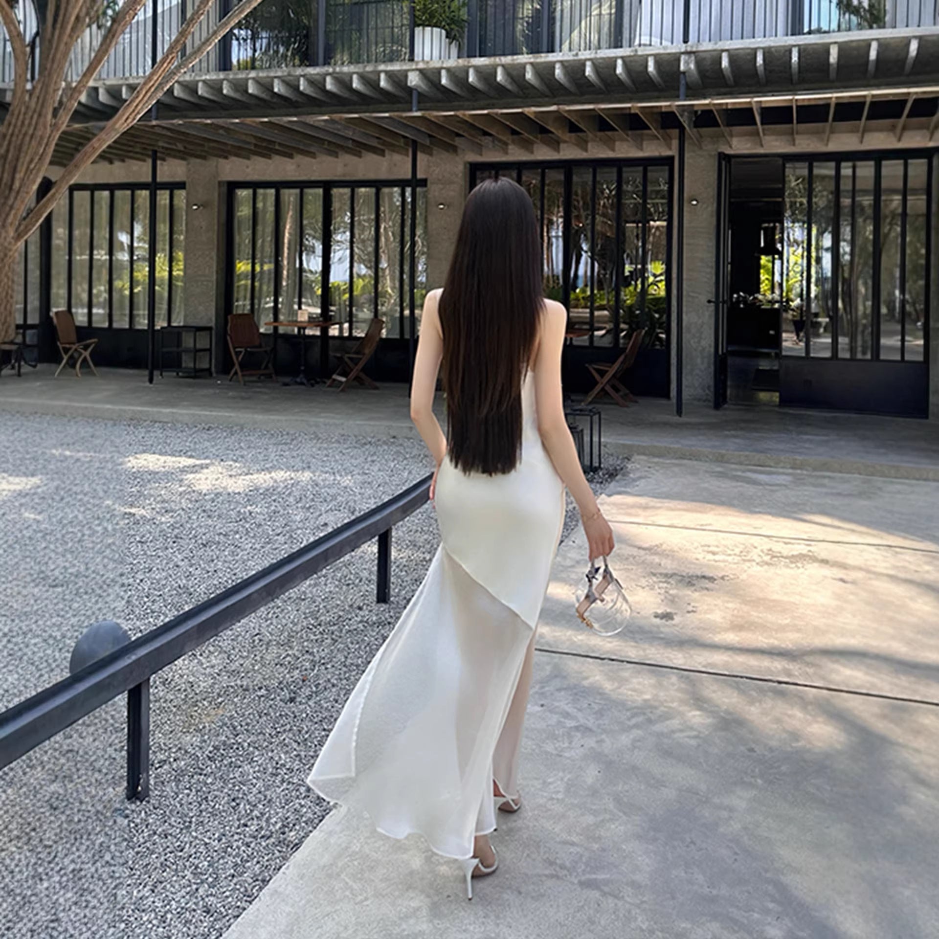 Haute couture imported acetic acid advanced sense splicing tulle suspender long skirt slim temperament Muse seaside vacation fishtail skirt