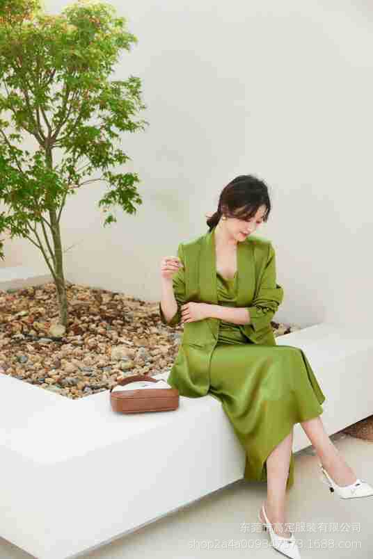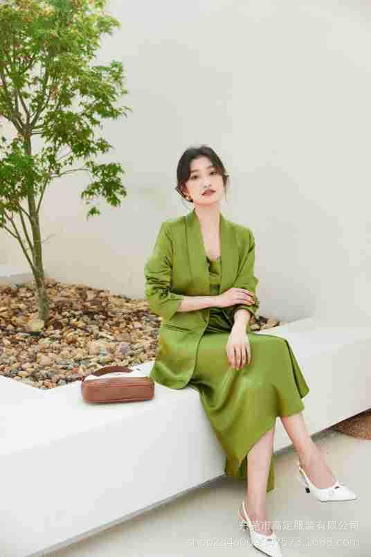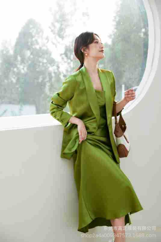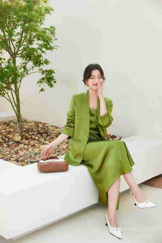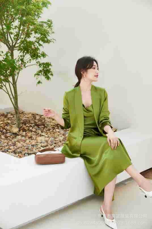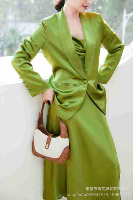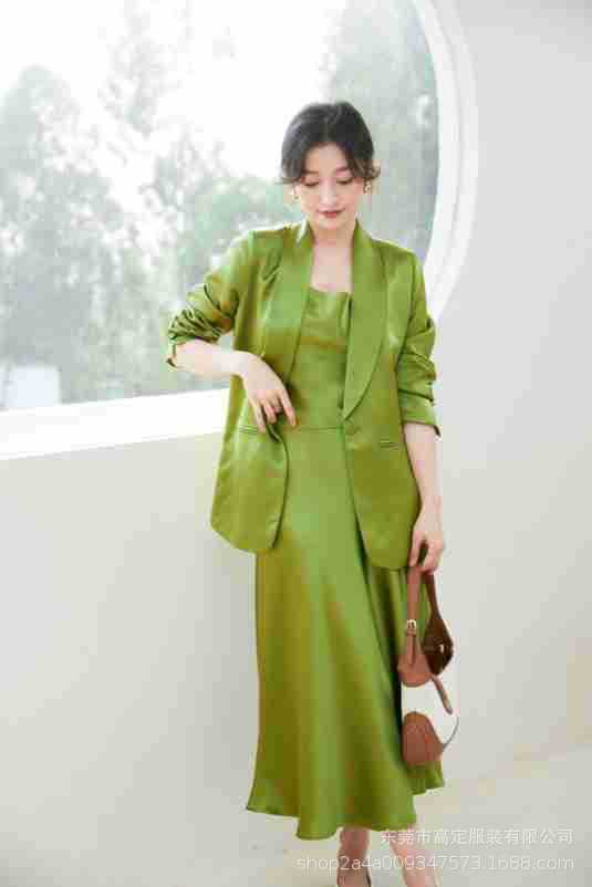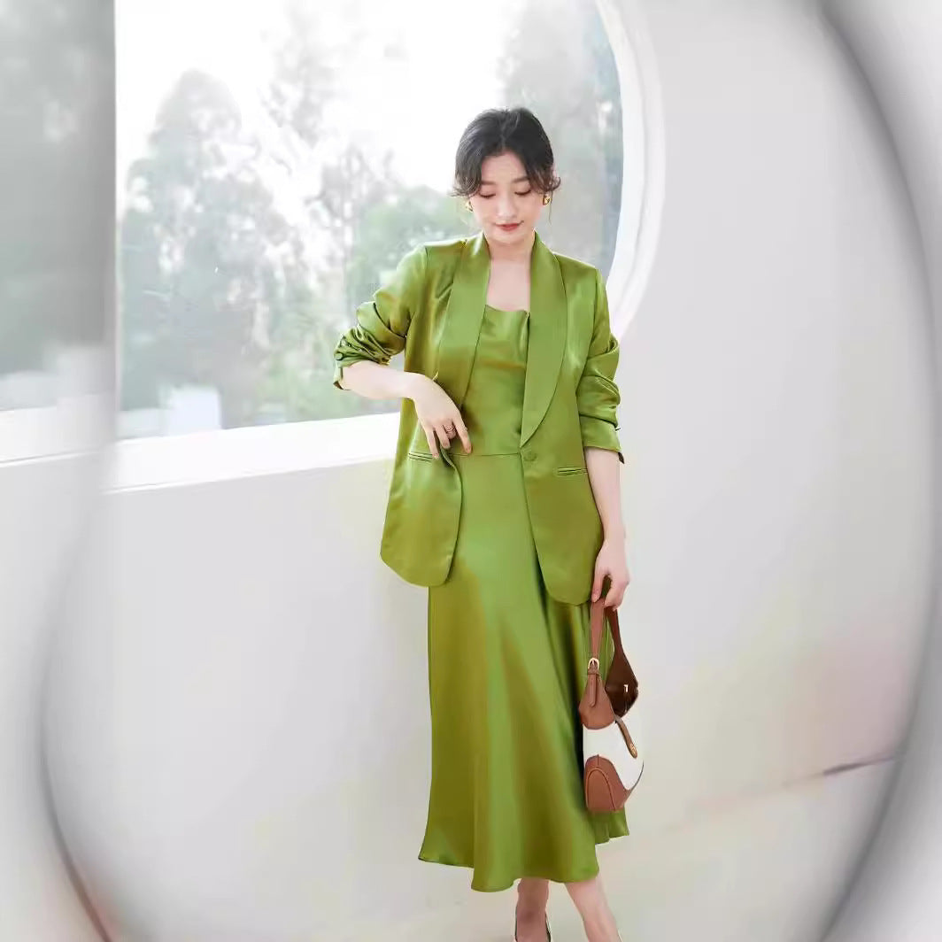 Haute couture imported acetic acid fried street temperament high sense fashion suit acetic acid satin pearlescent suit + dress