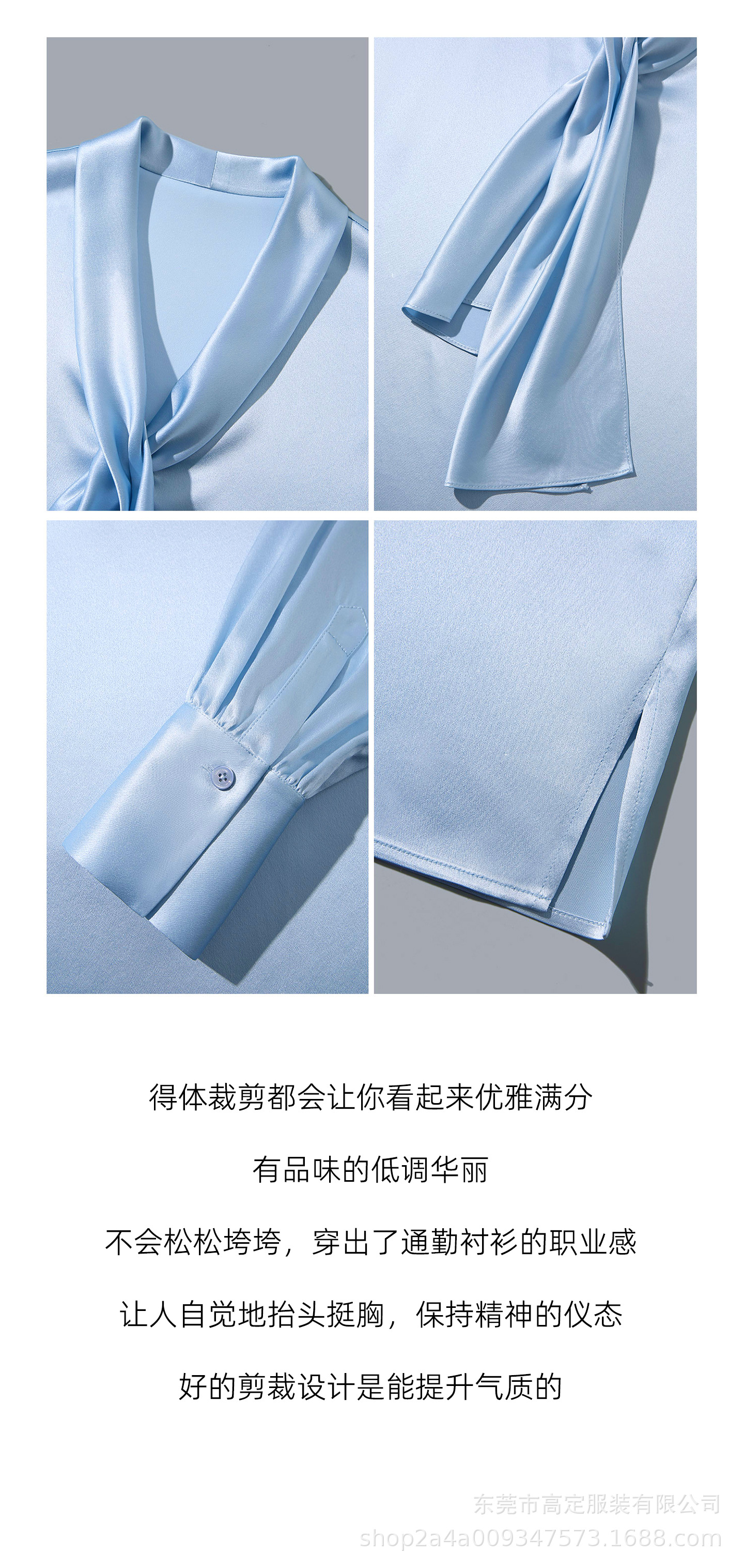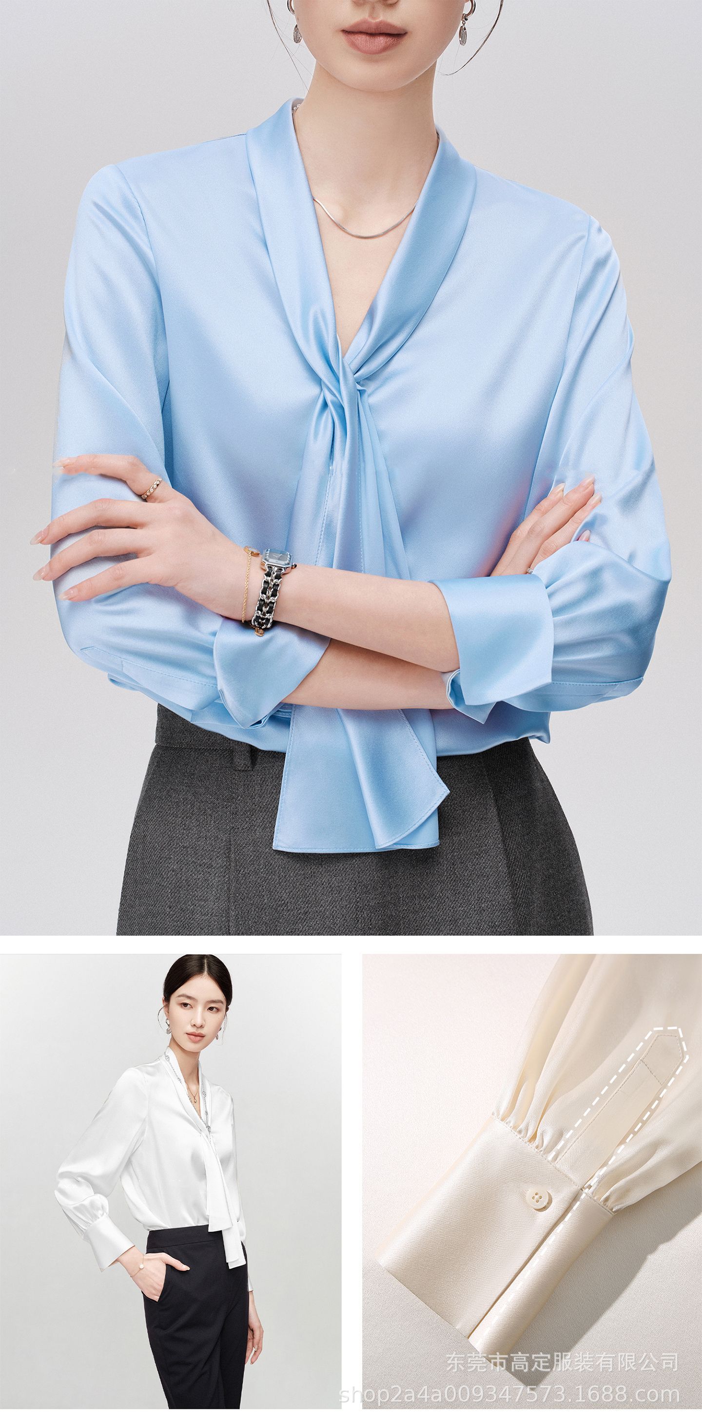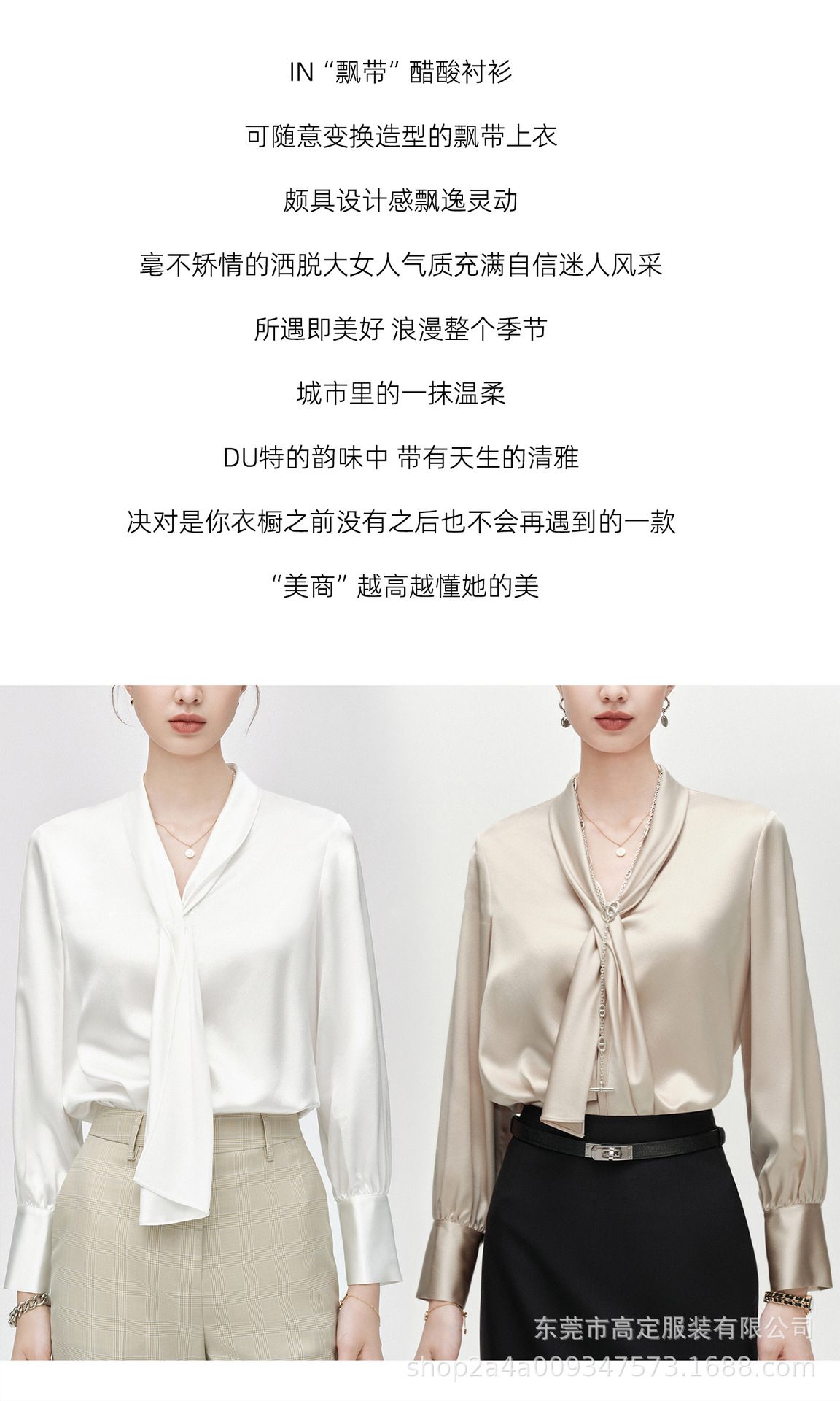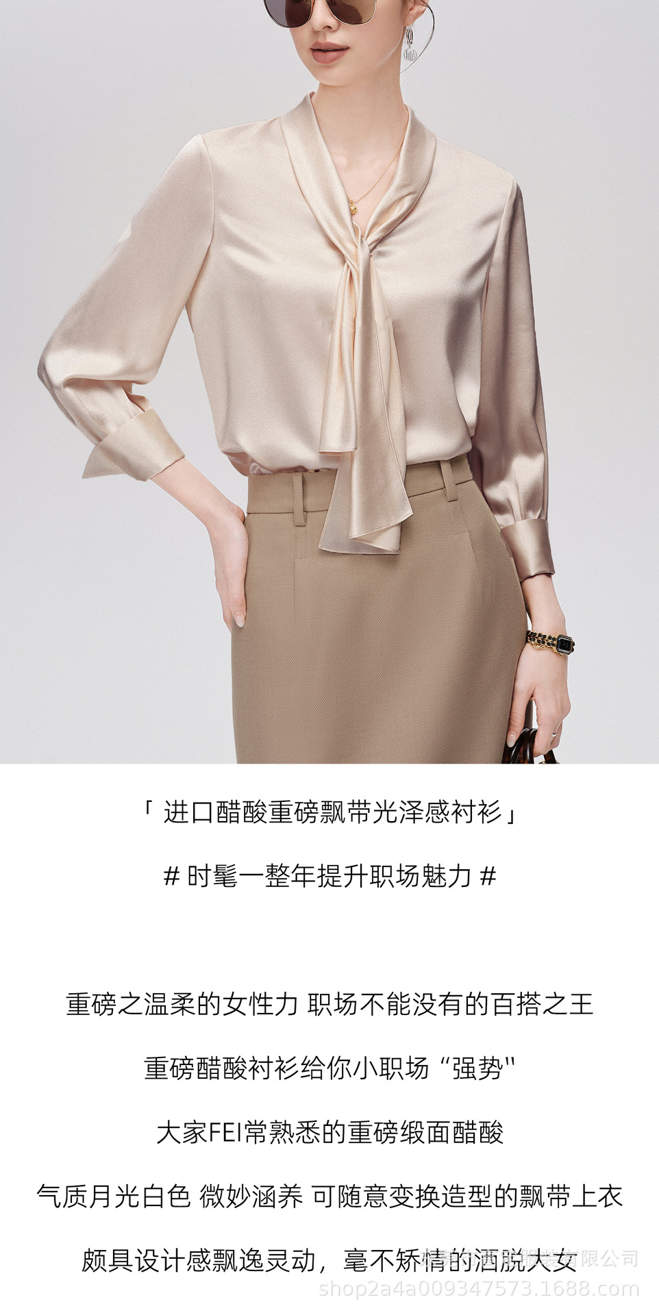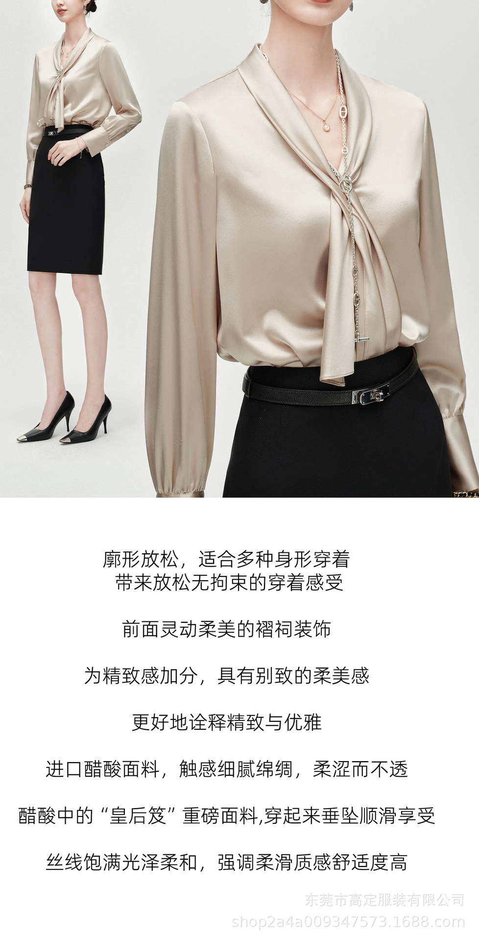 Haute couture imported acetic acid, heavy streamer, long-sleeved top, feminine gloss shirt, professional commuter dress, senior