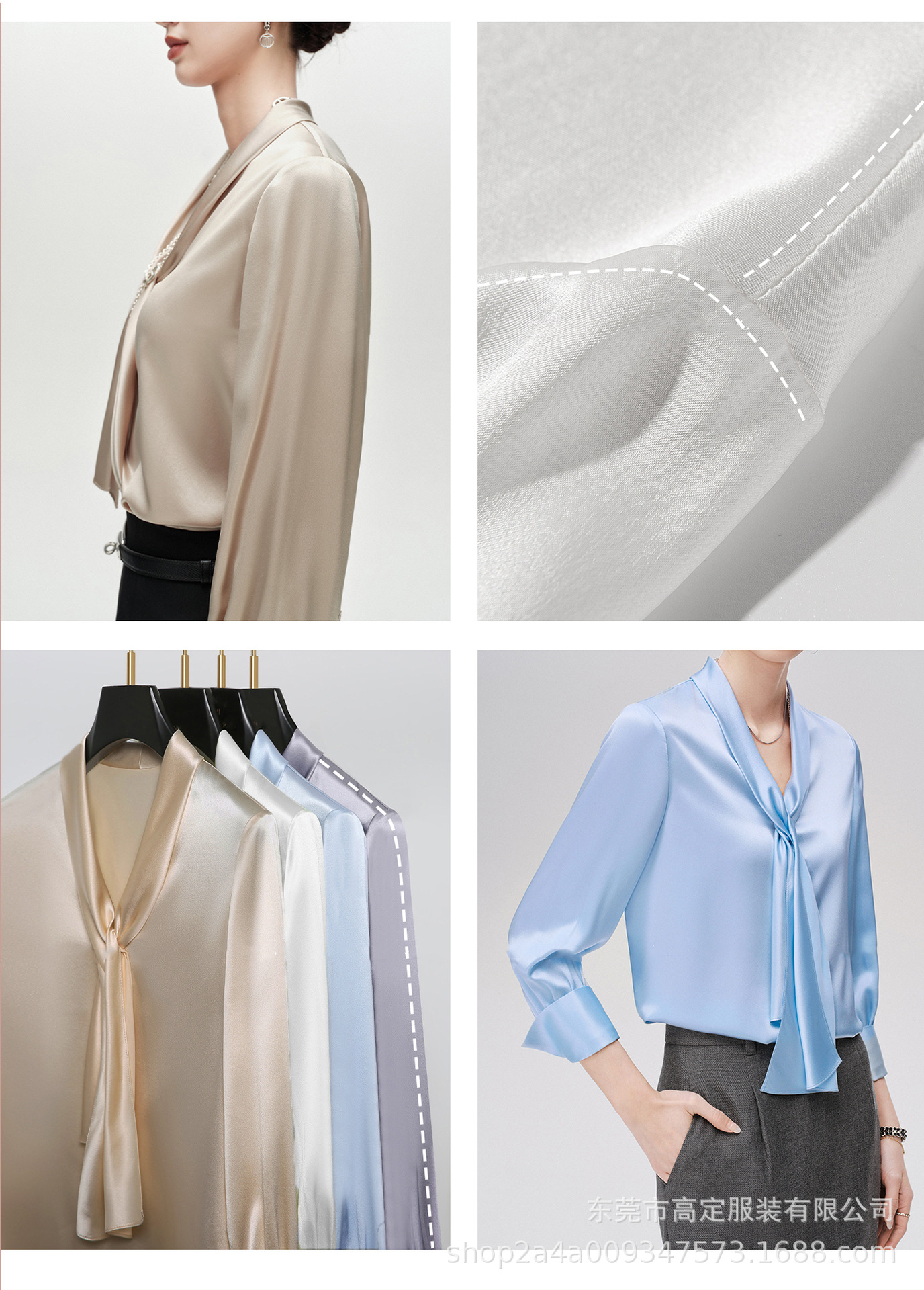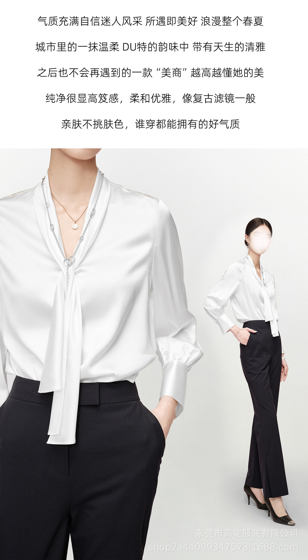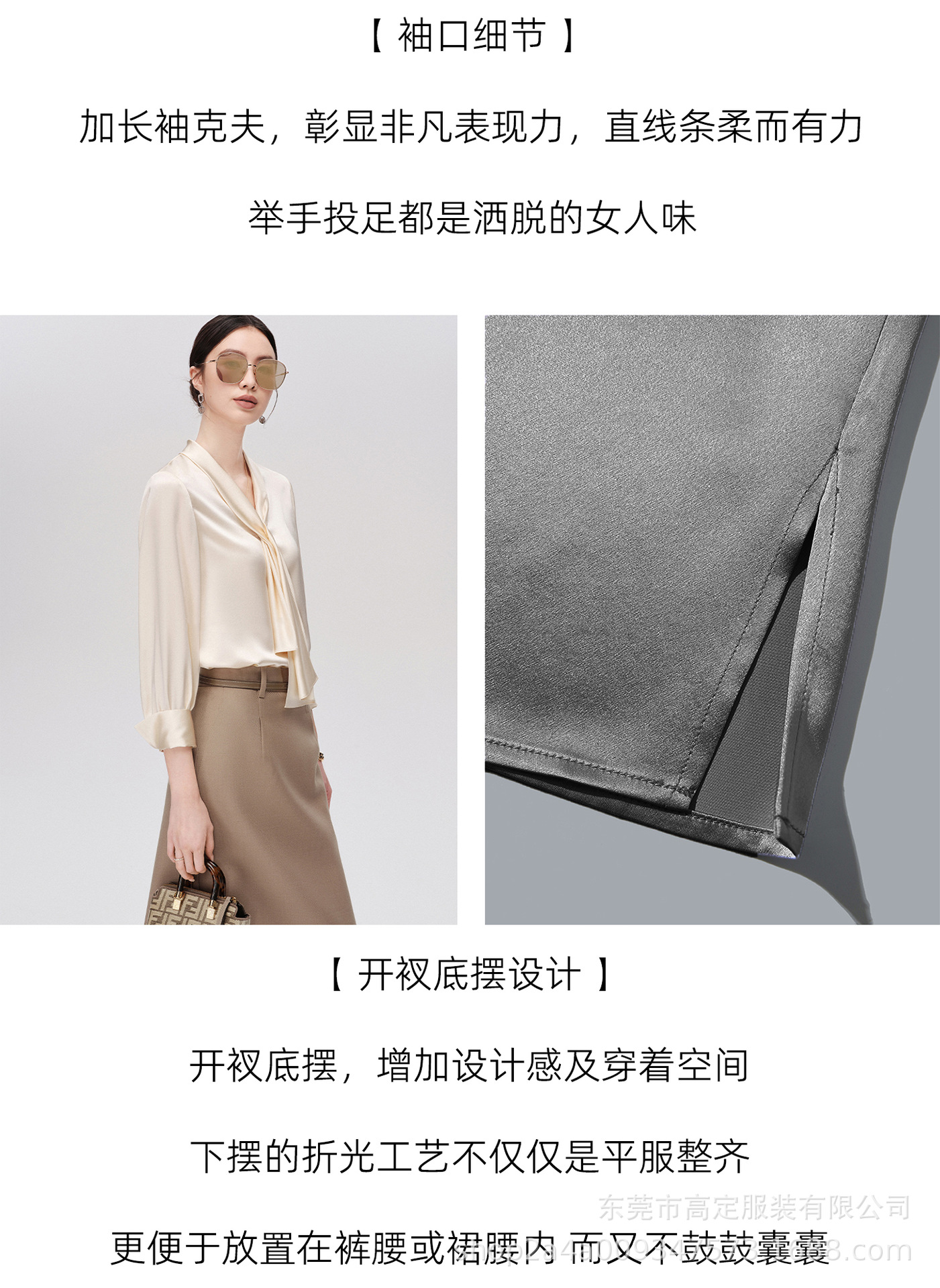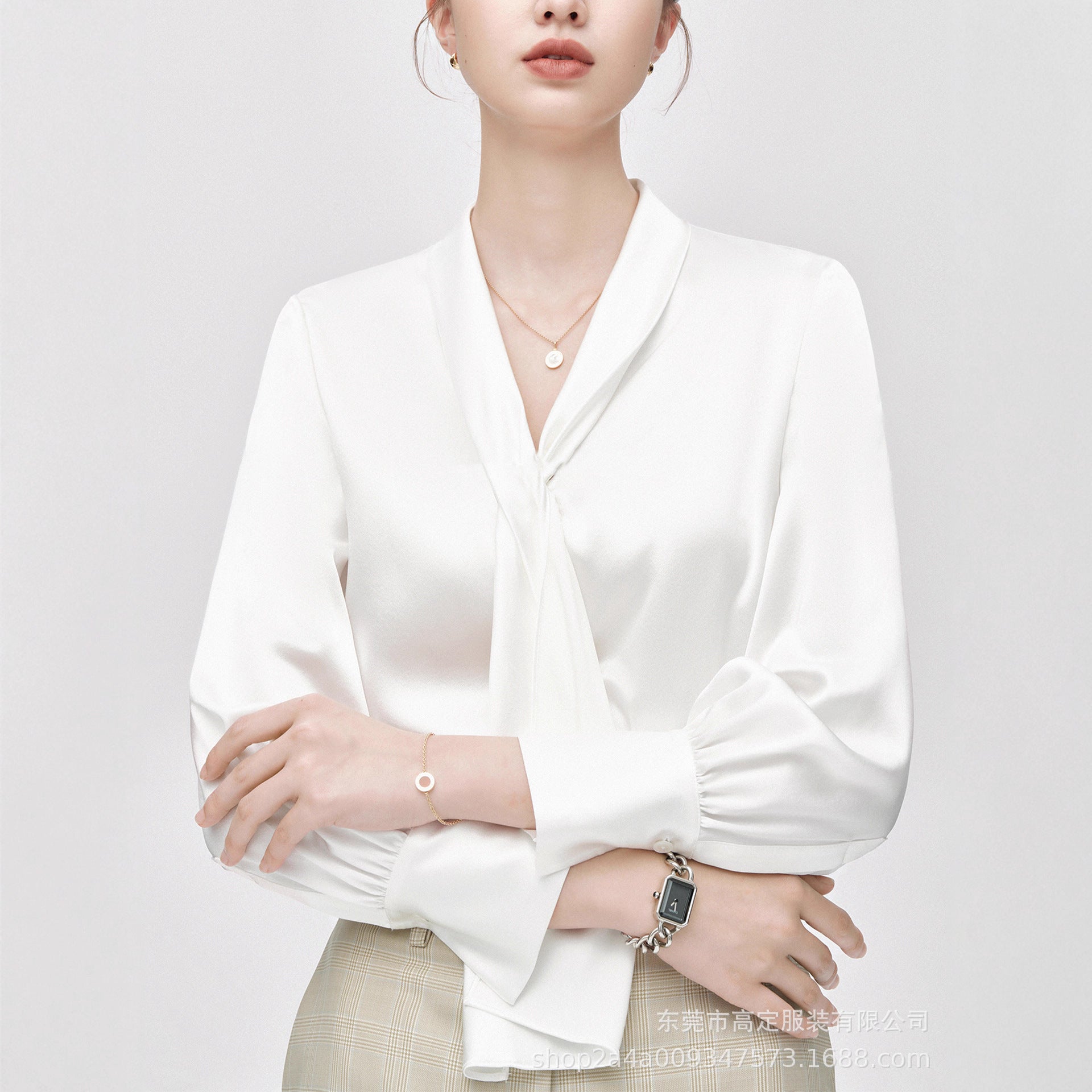 Haute couture imported acetic acid, heavy streamer, long-sleeved top, feminine gloss shirt, professional commuter dress, senior