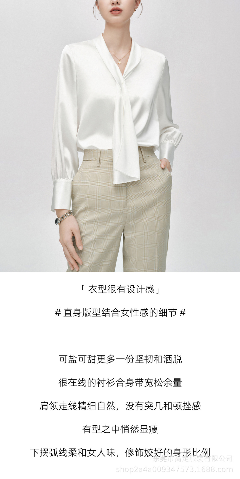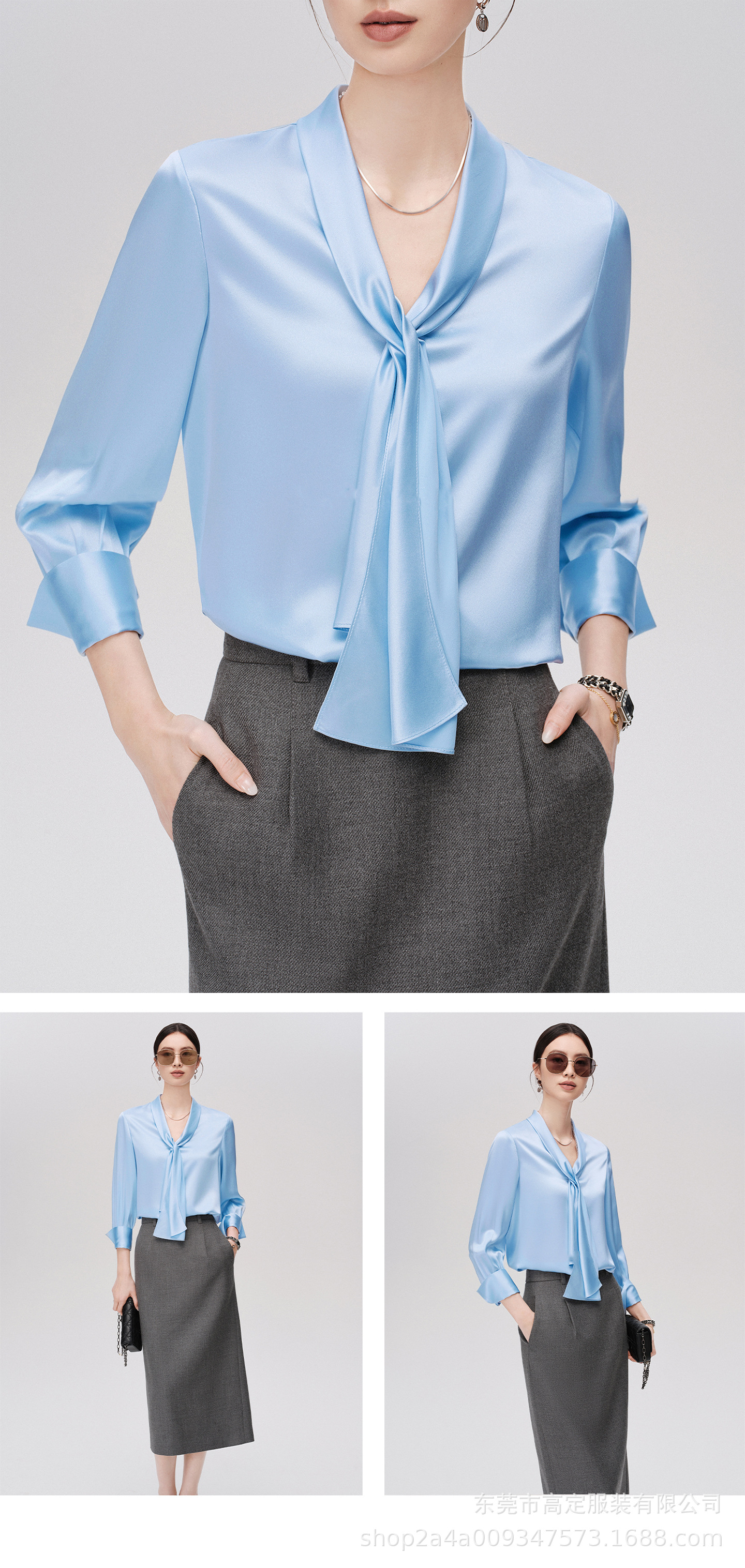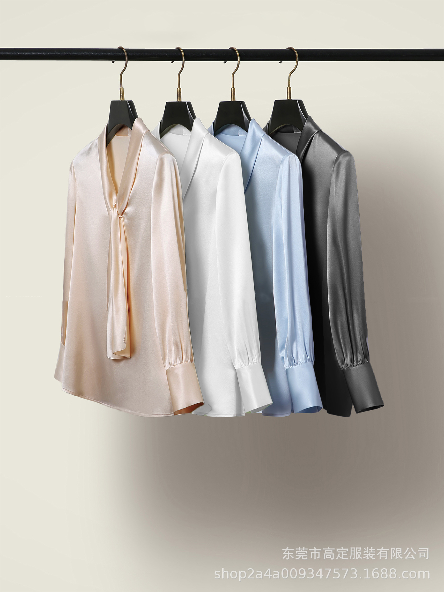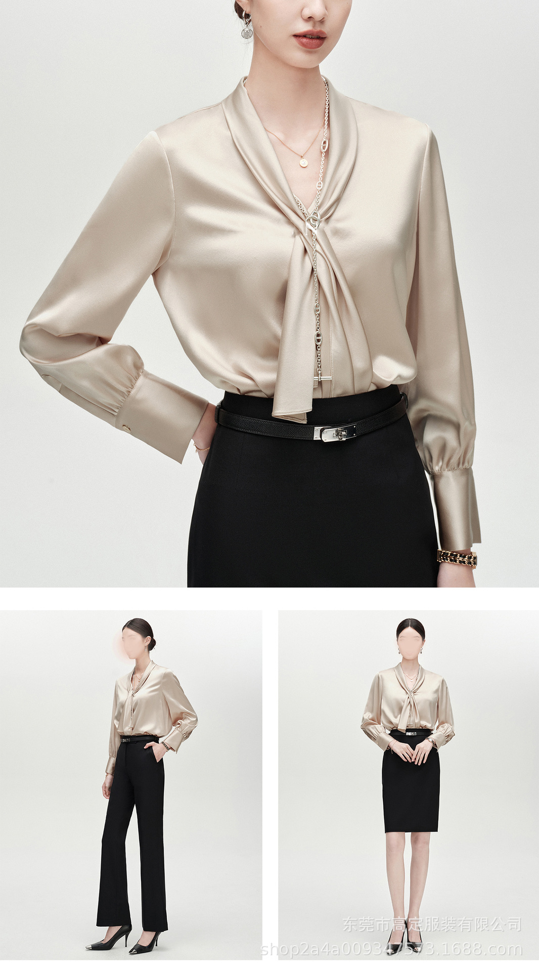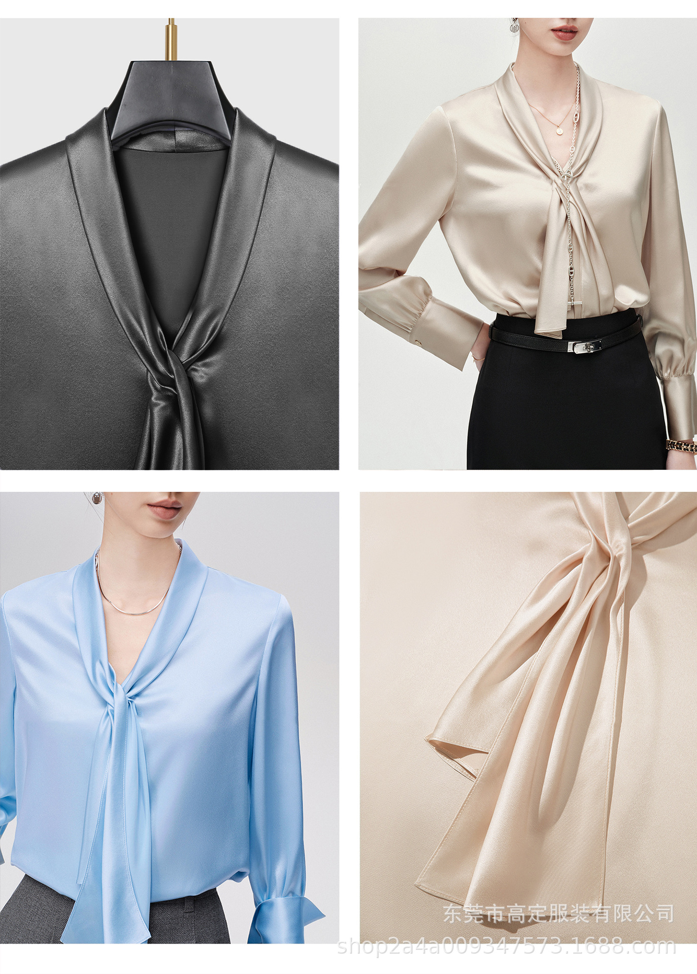 Haute couture imported acetic acid, heavy streamer, long-sleeved top, feminine gloss shirt, professional commuter dress, senior