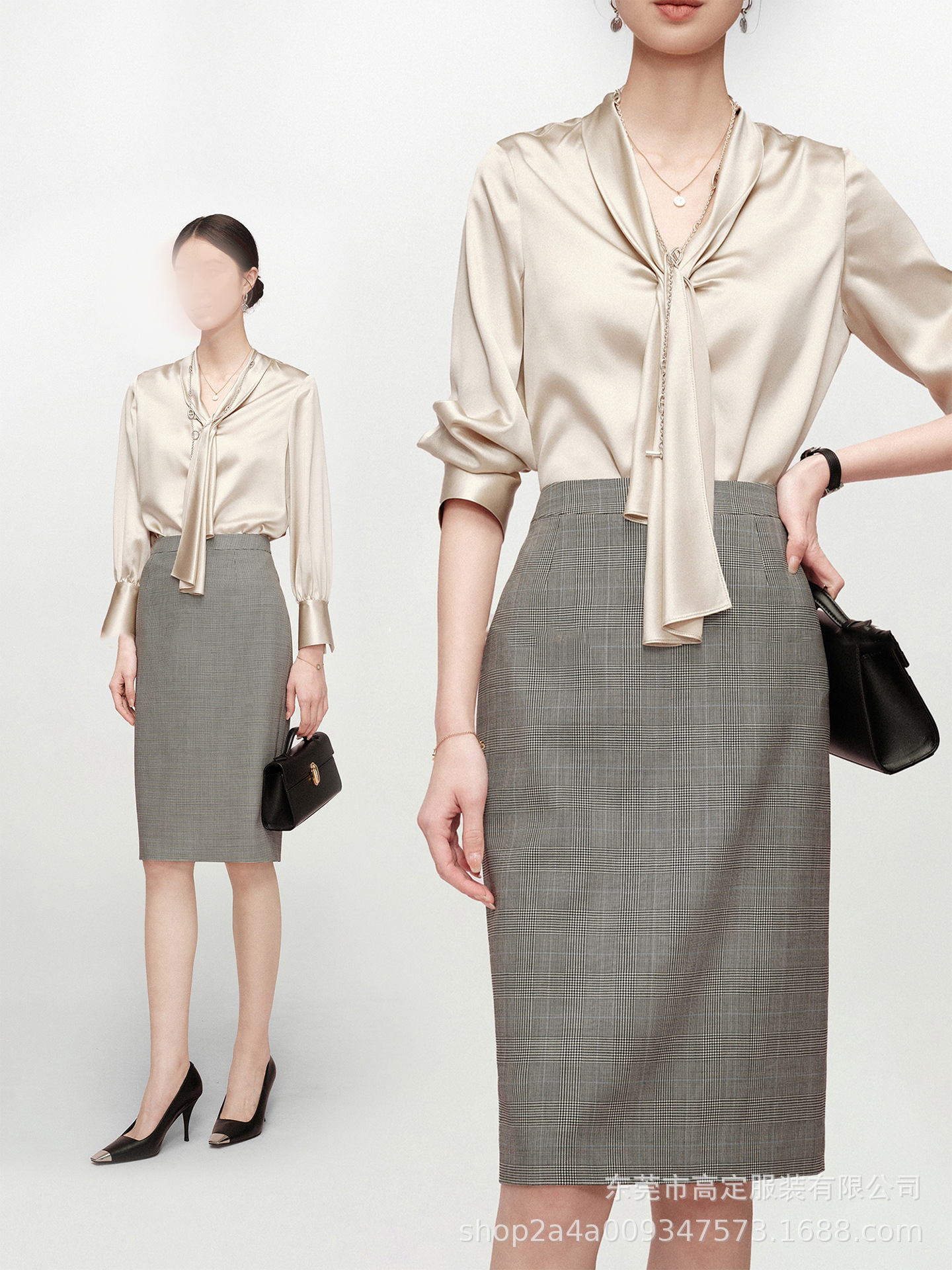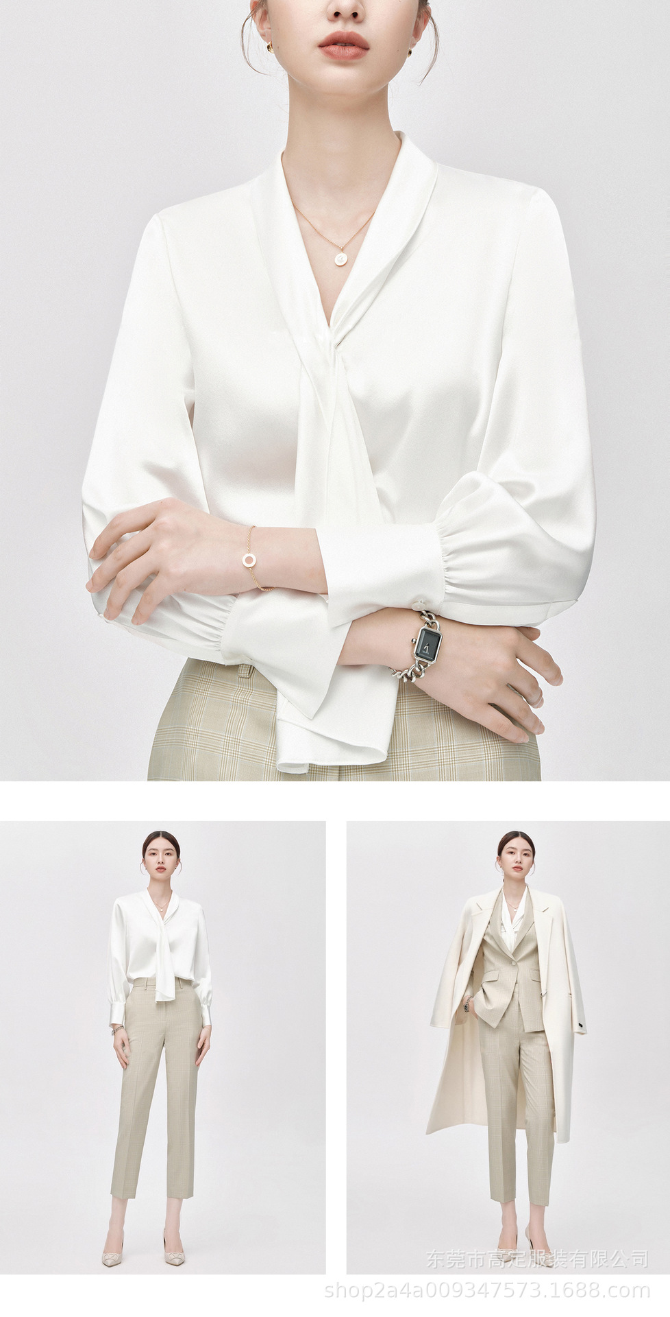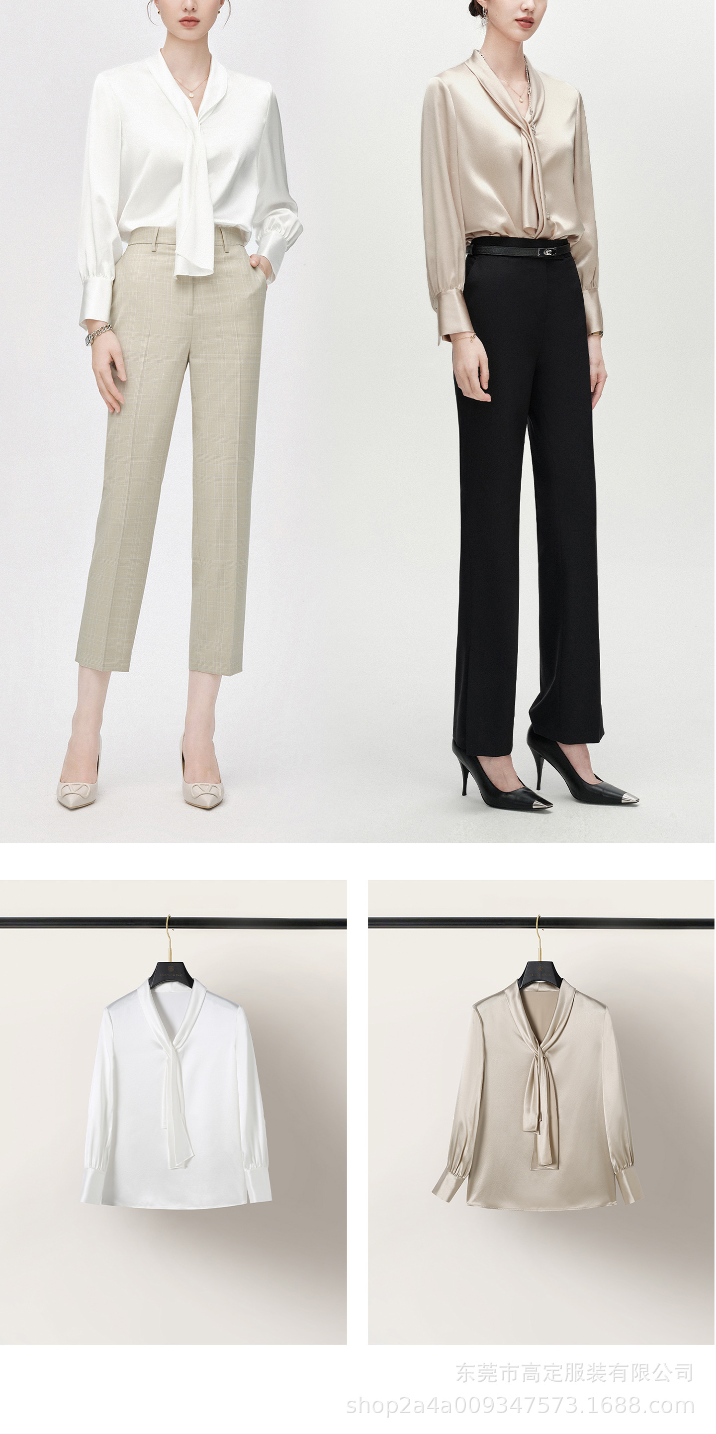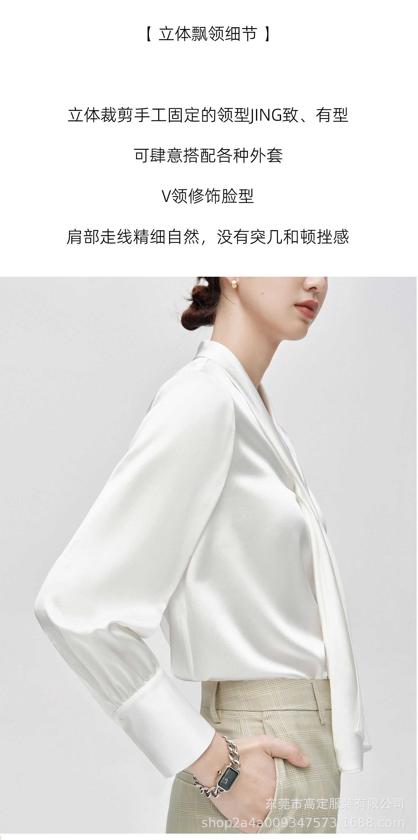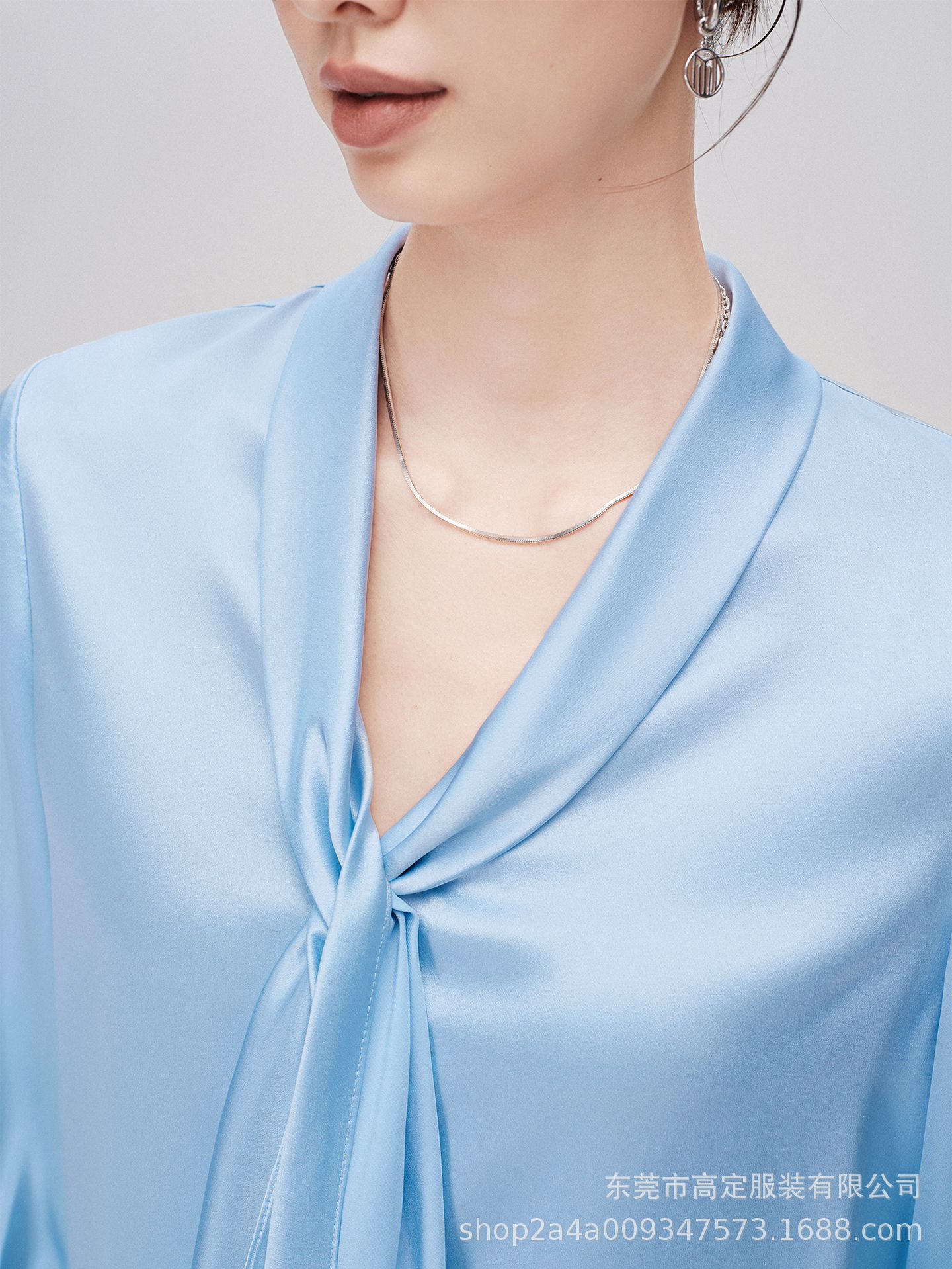 Haute couture imported acetic acid, heavy streamer, long-sleeved top, feminine gloss shirt, professional commuter dress, senior