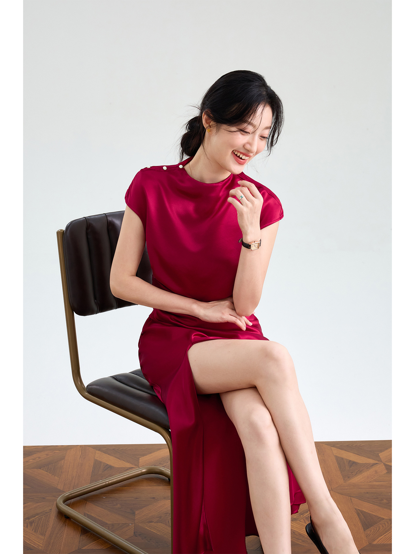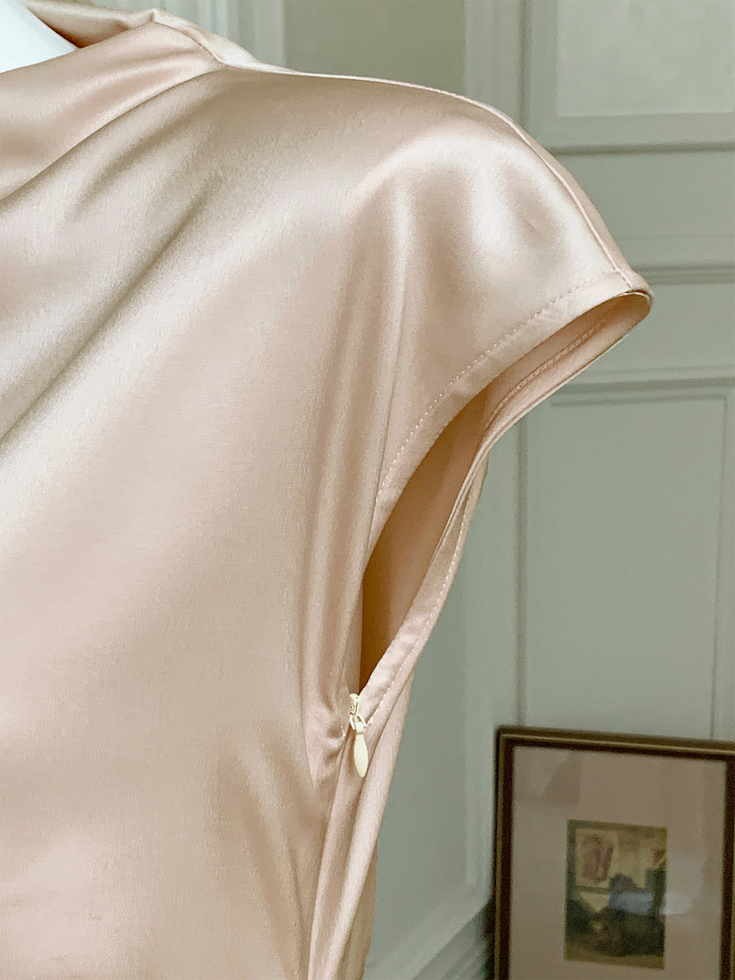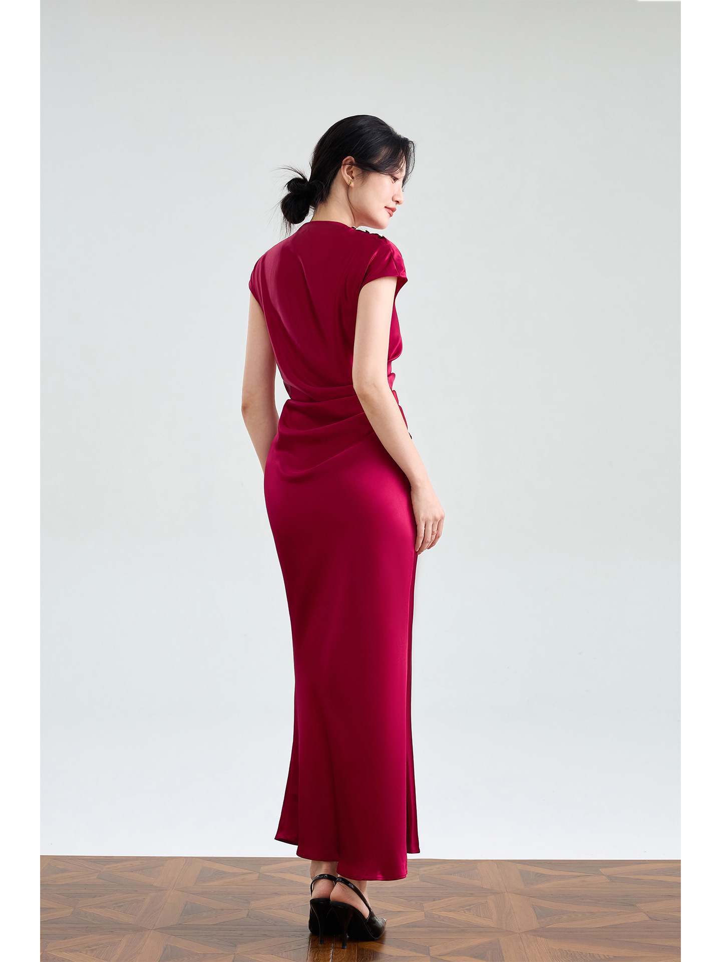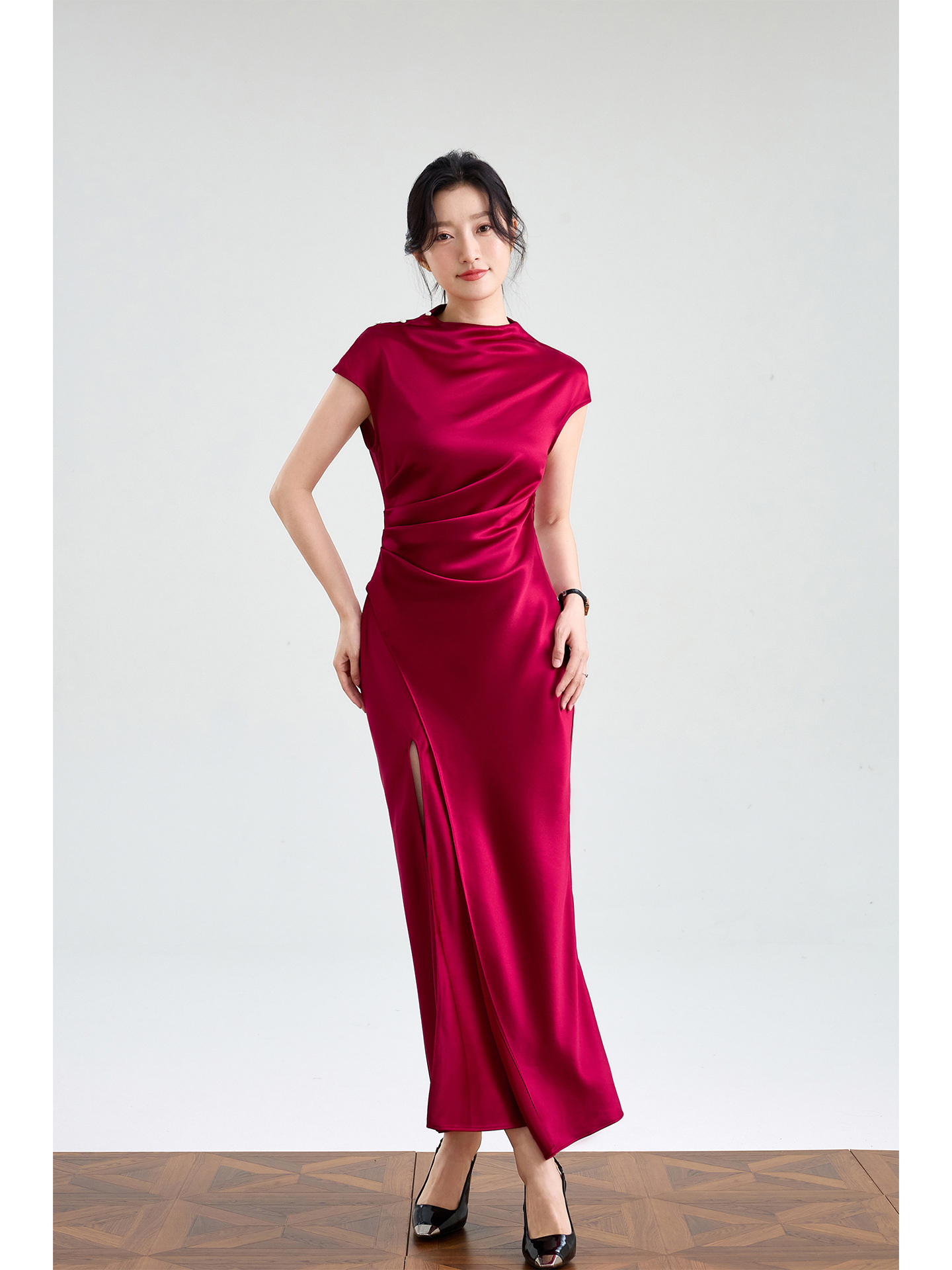 Haute couture imported acetic acid, pure desire style semi-turtleneck satin dress temperament thin split fork fish tail long dress French
