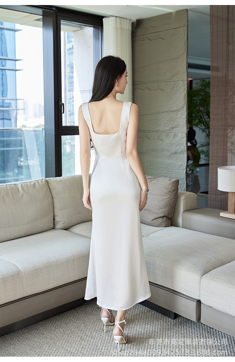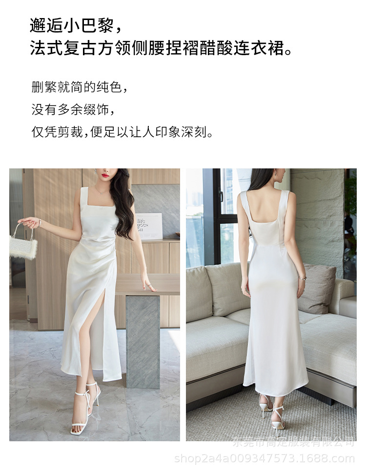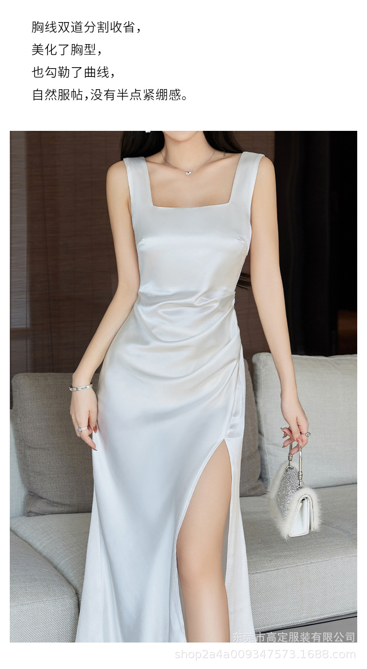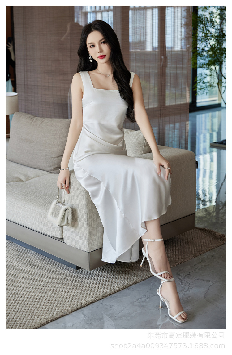 Haute couture new acetic acid satin suspender skirt U-neck long skirt gentle wind high sense acetic acid satin dress