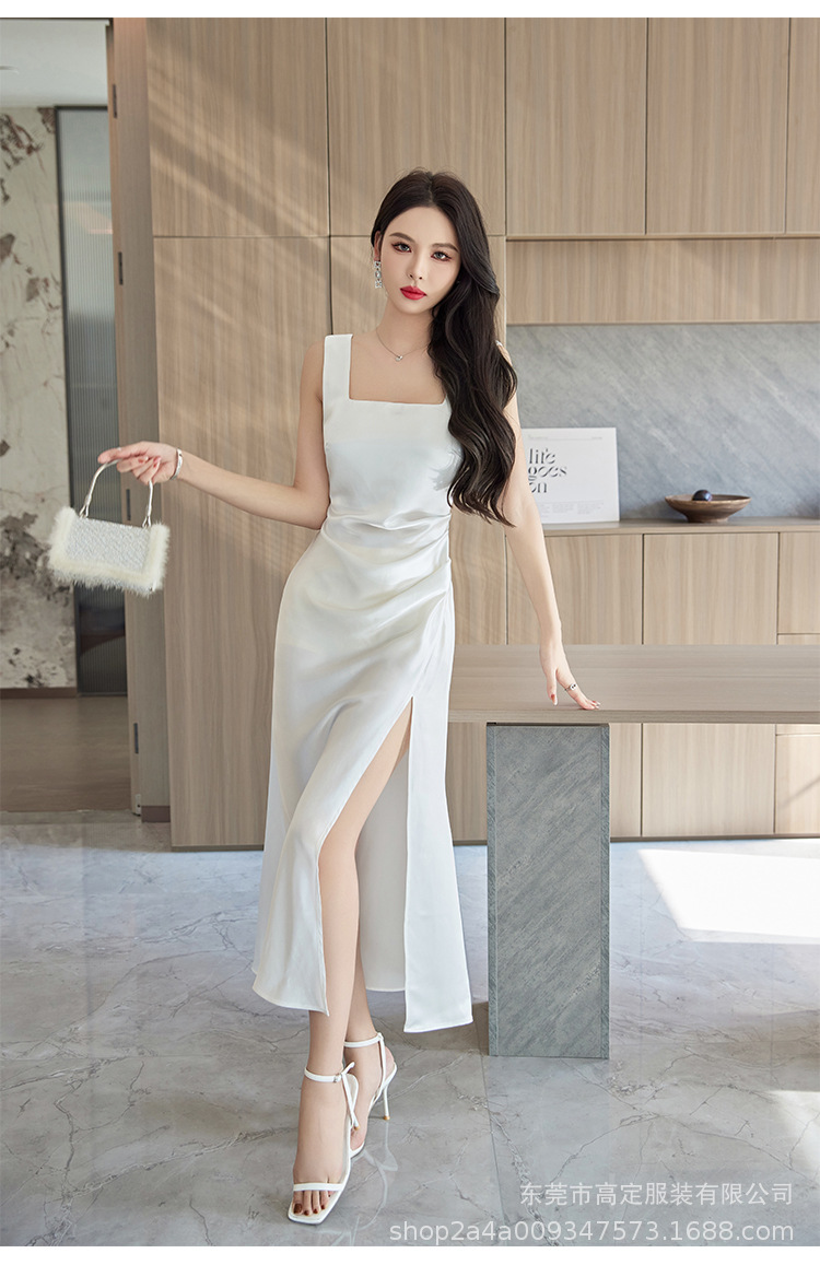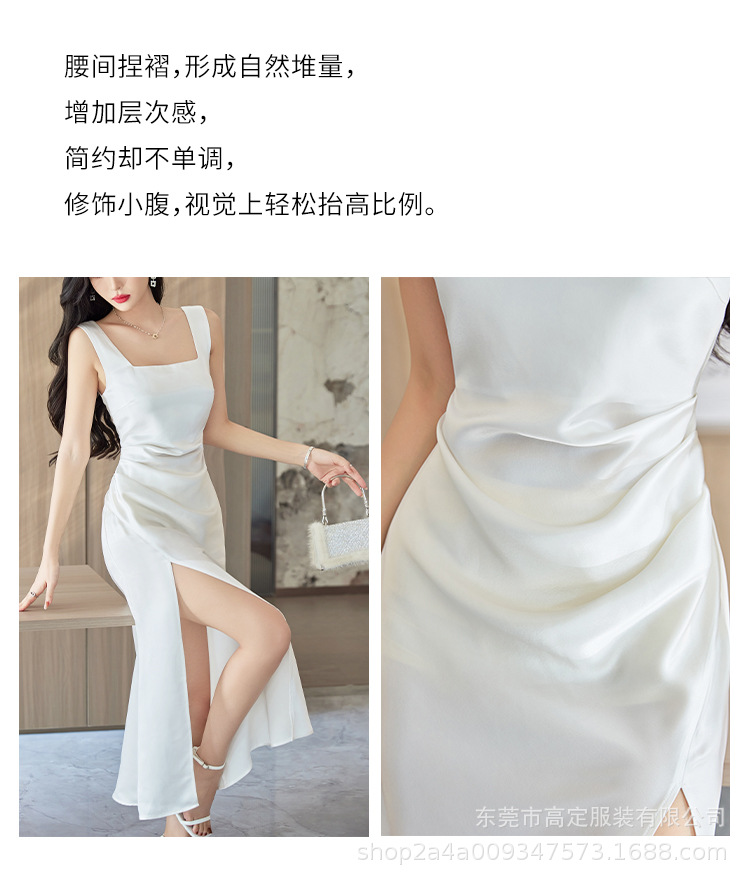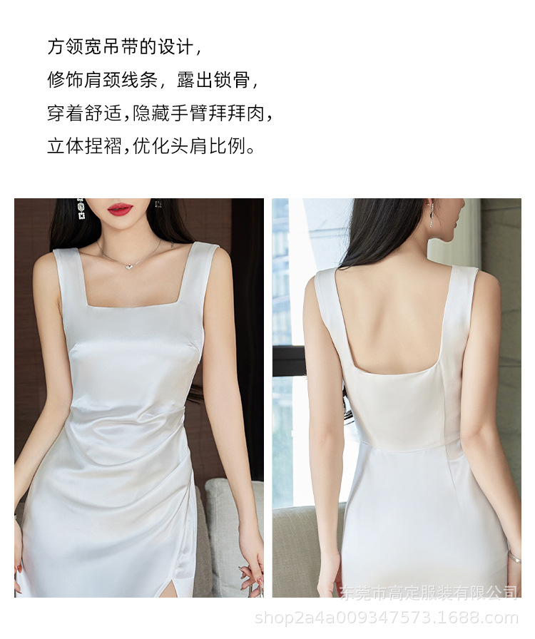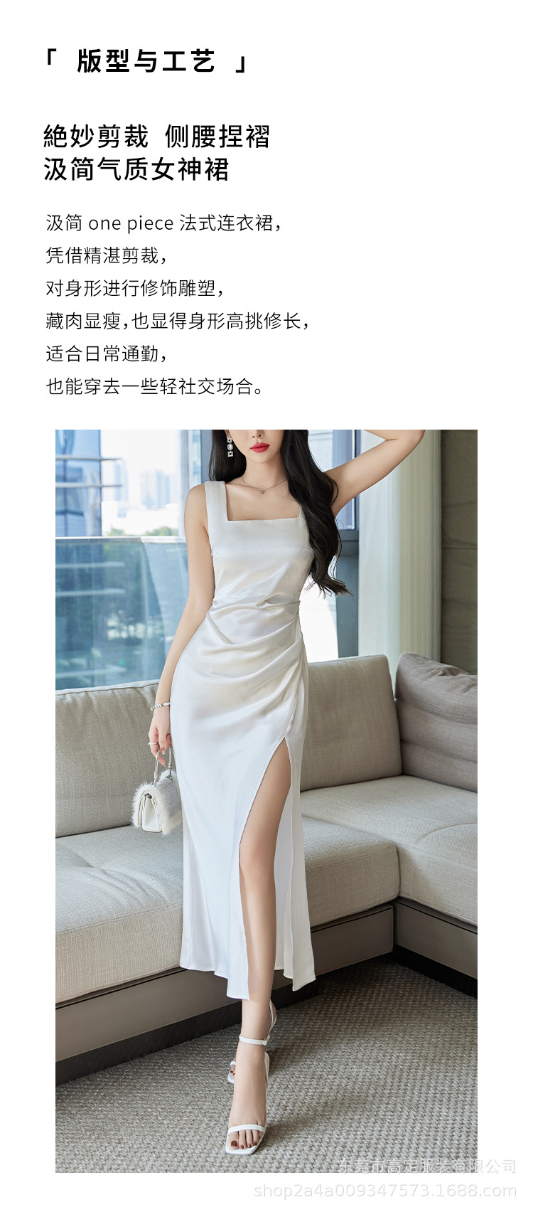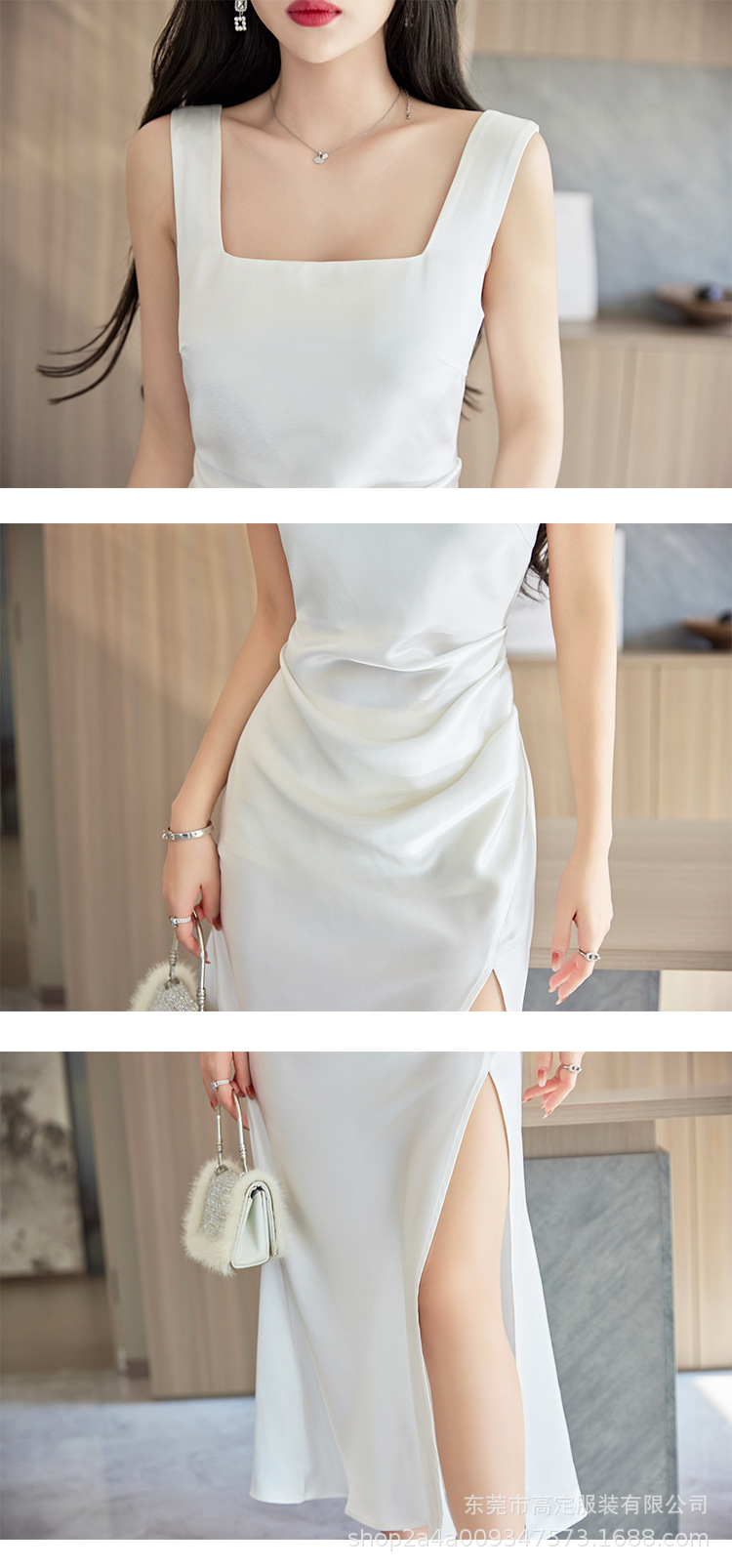 Haute couture new acetic acid satin suspender skirt U-neck long skirt gentle wind high sense acetic acid satin dress