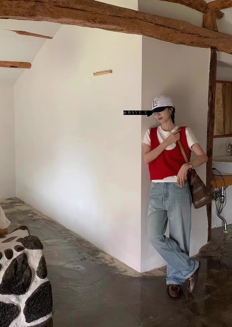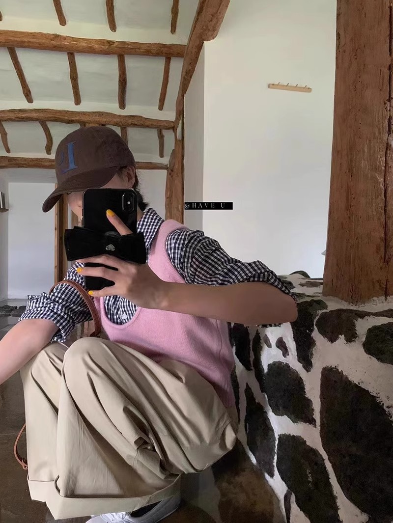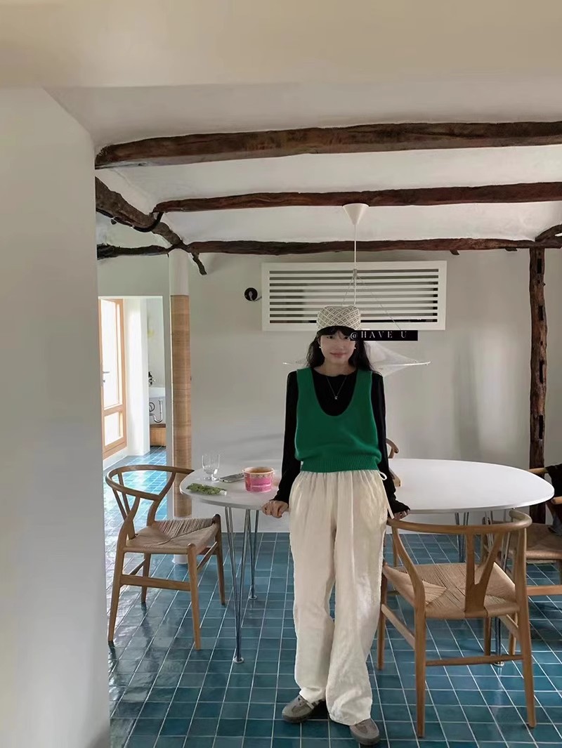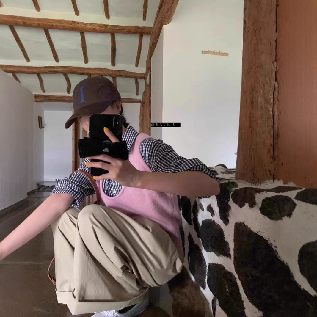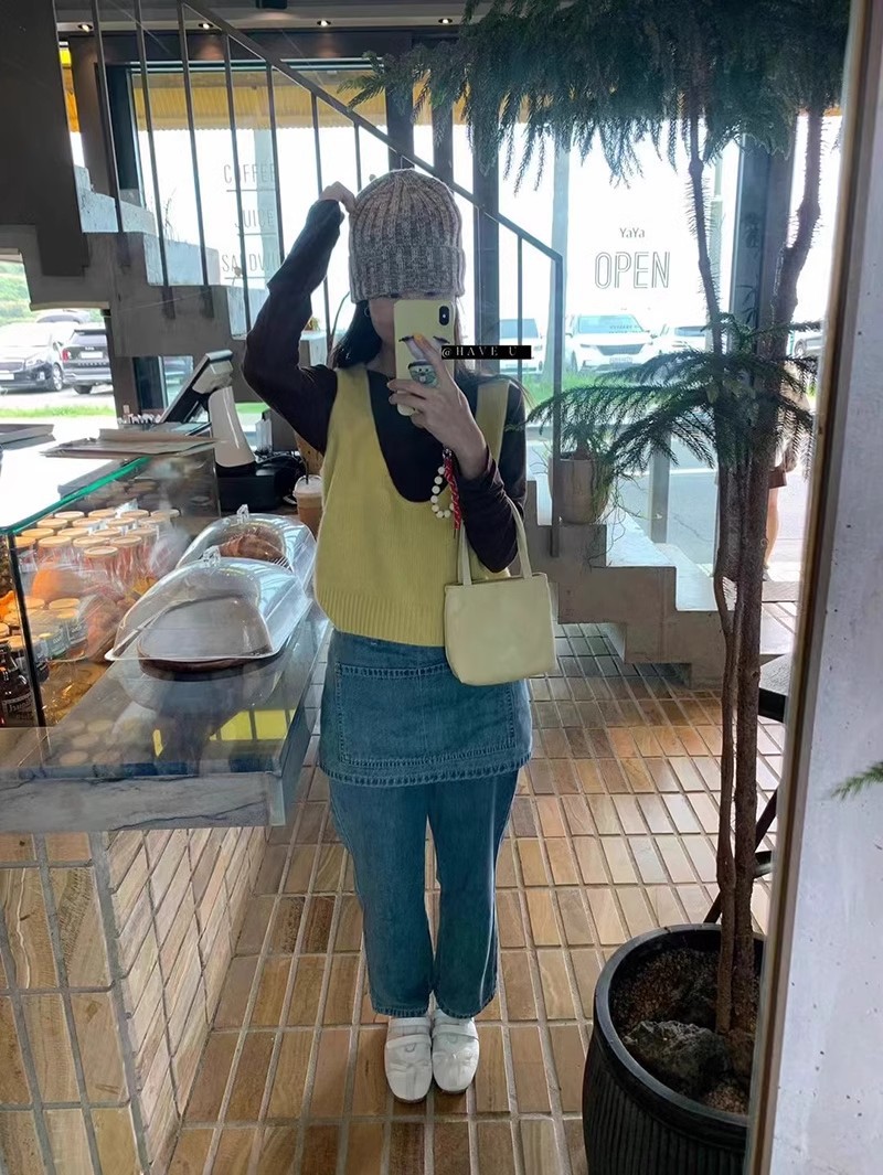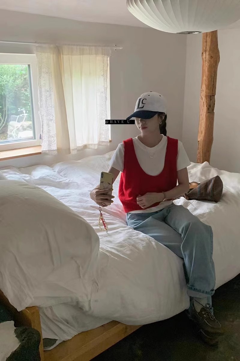 HAVE U wool knitted vest u neck elastic short small Korean ins wind wide shoulder strap stacked vest women