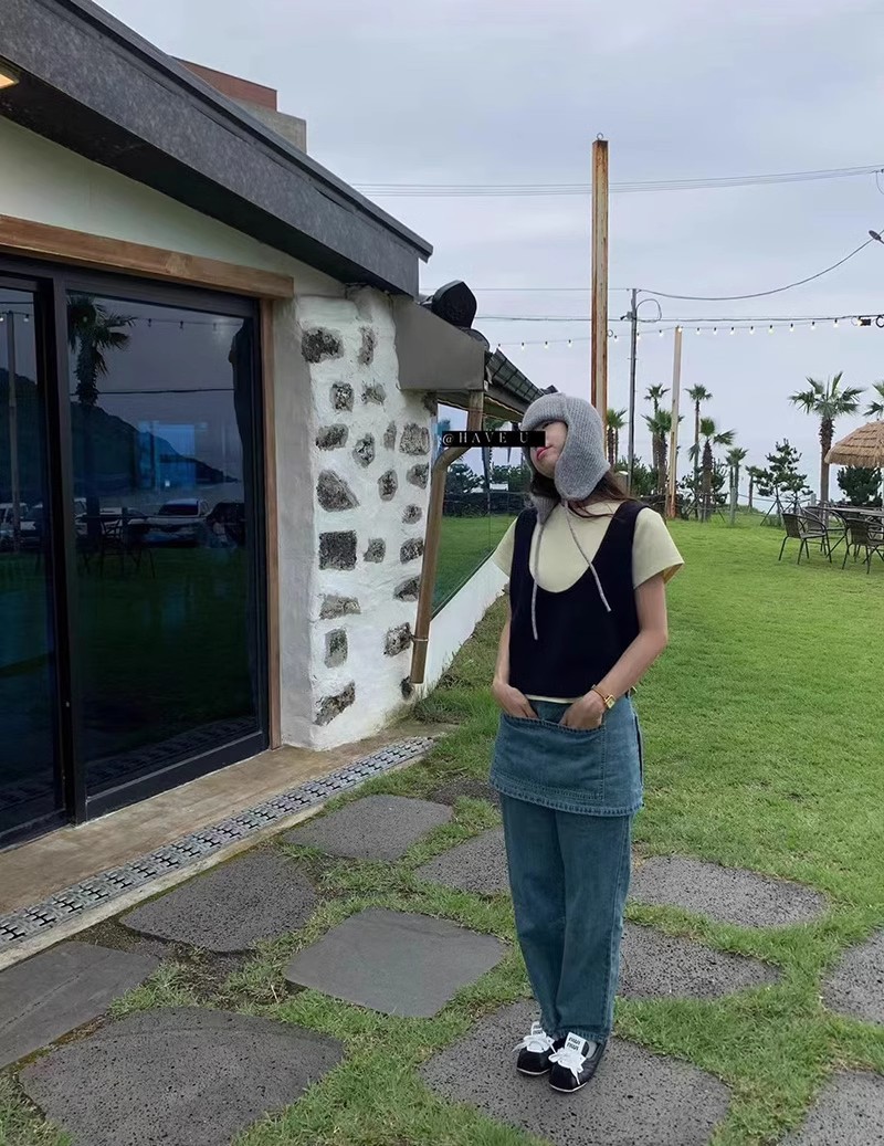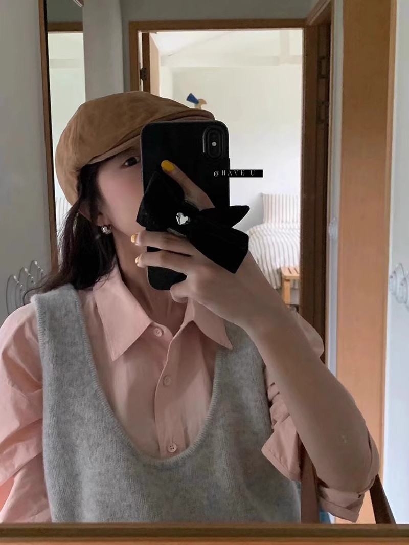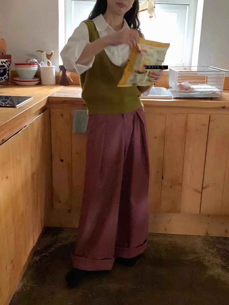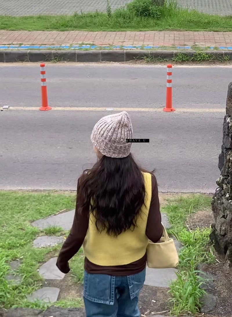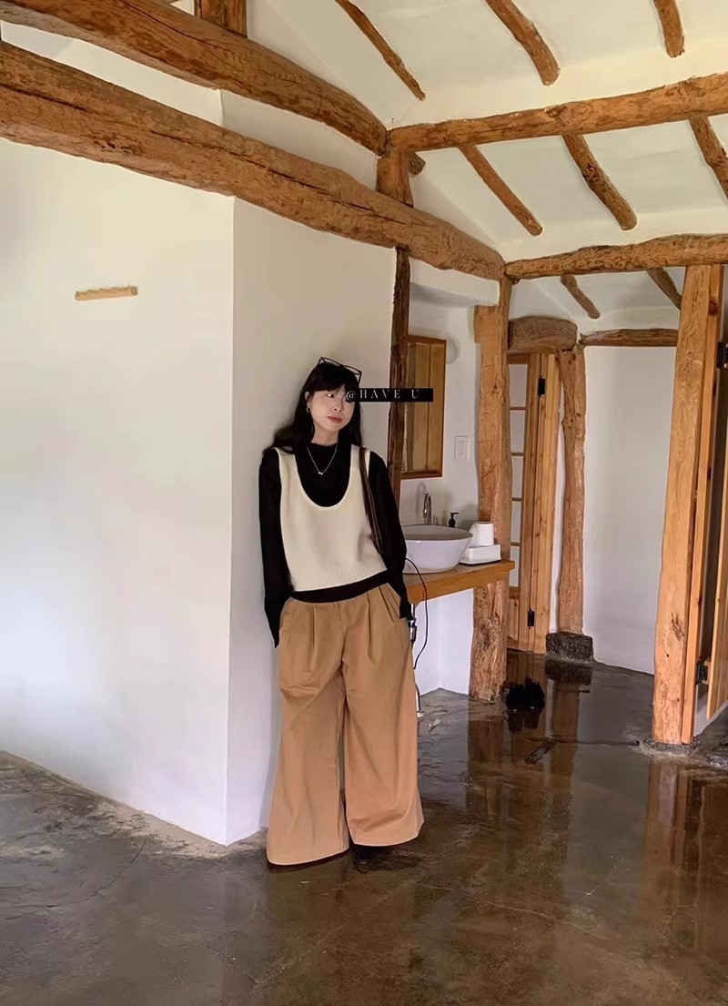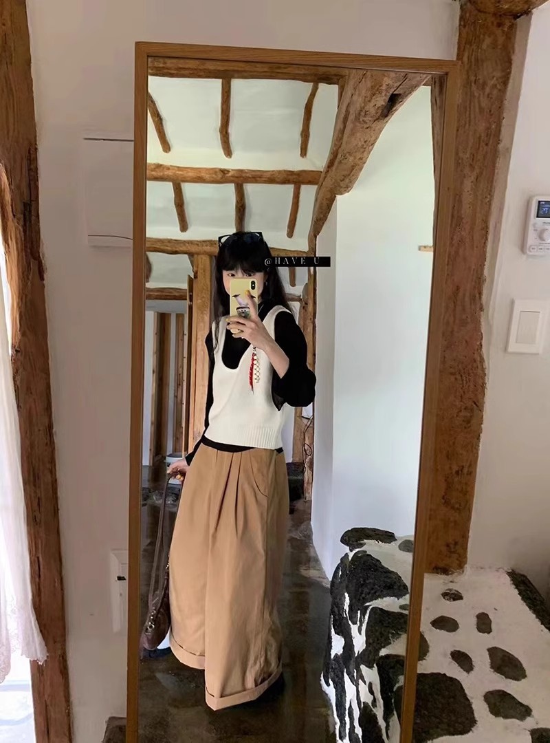 HAVE U wool knitted vest u neck elastic short small Korean ins wind wide shoulder strap stacked vest women