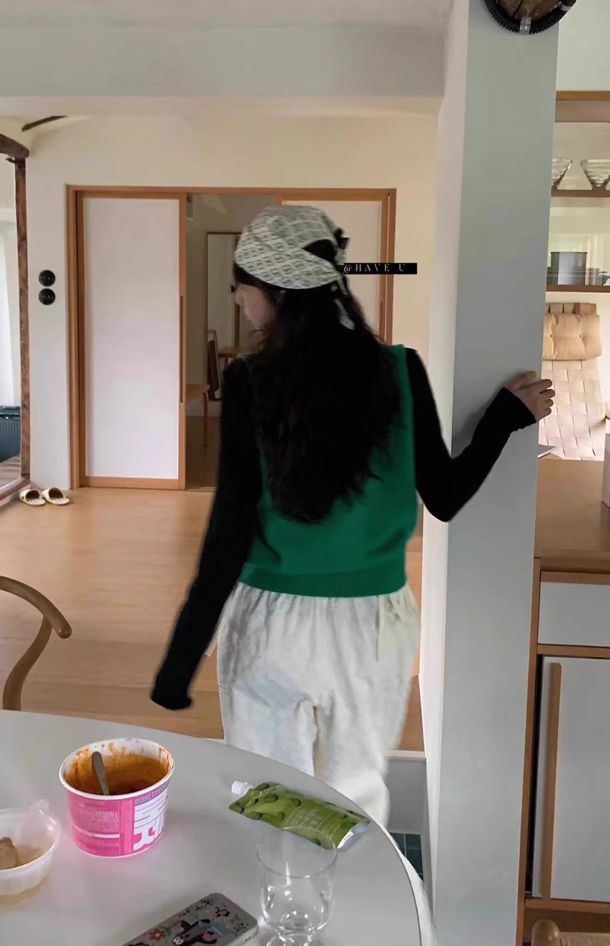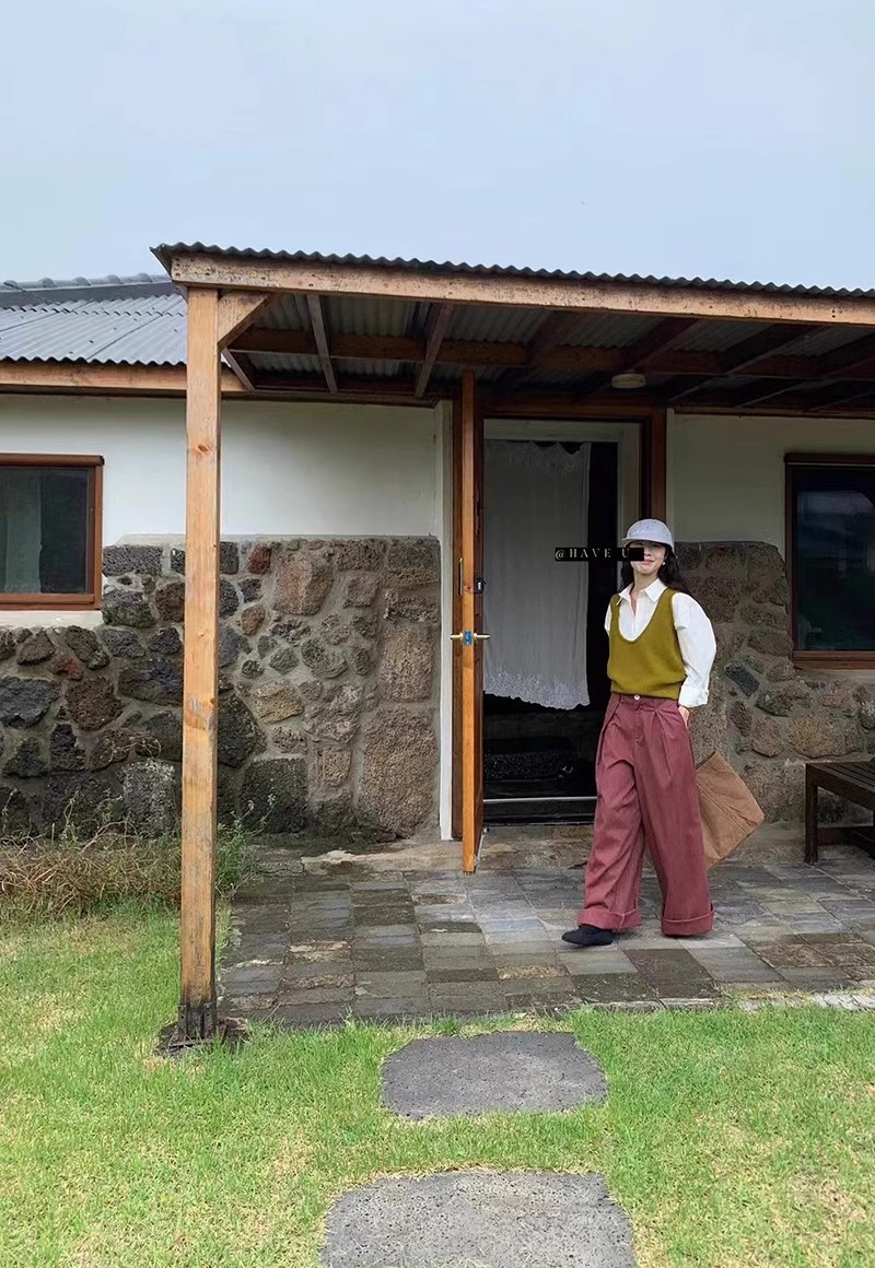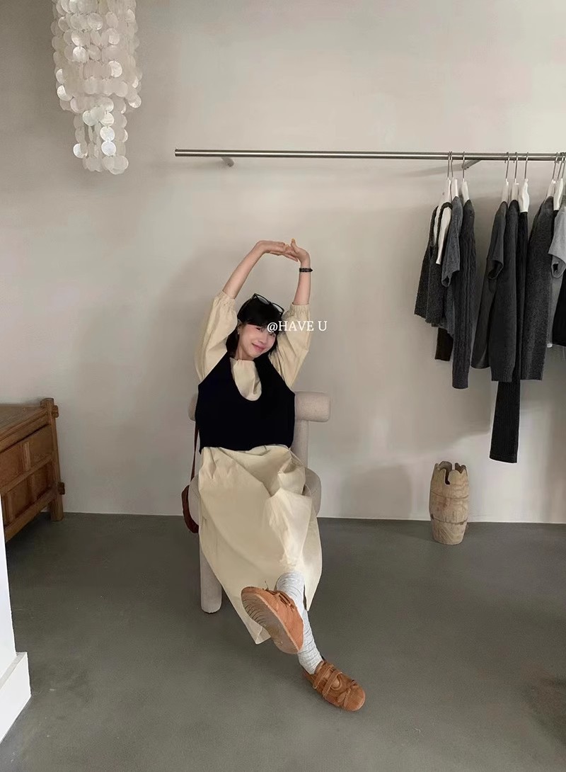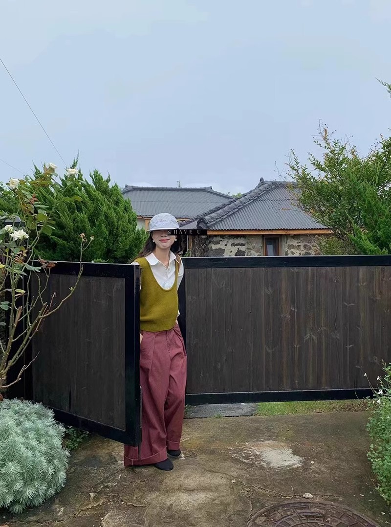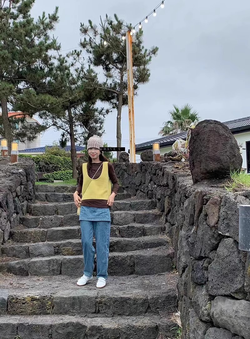 HAVE U wool knitted vest u neck elastic short small Korean ins wind wide shoulder strap stacked vest women