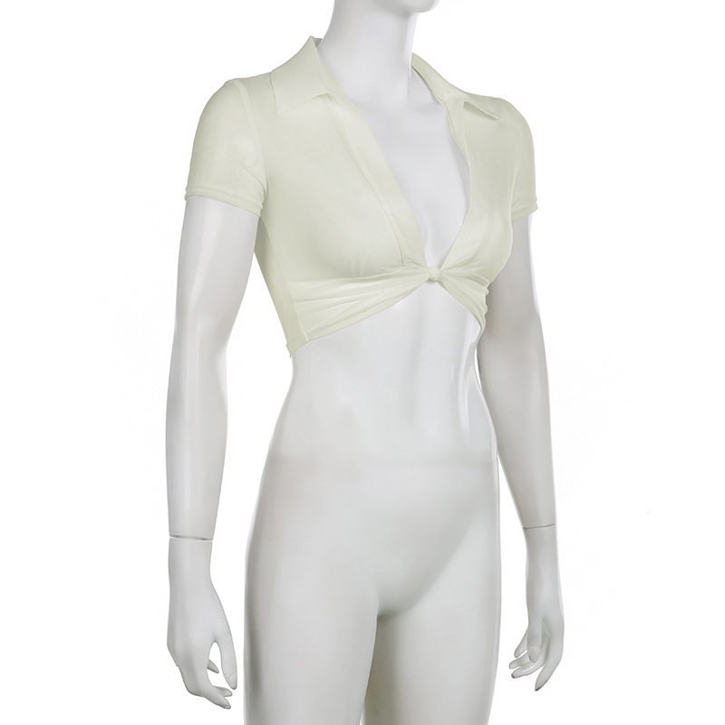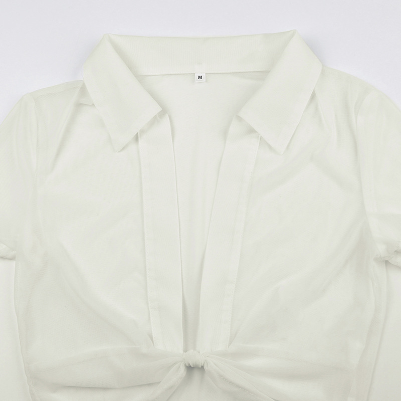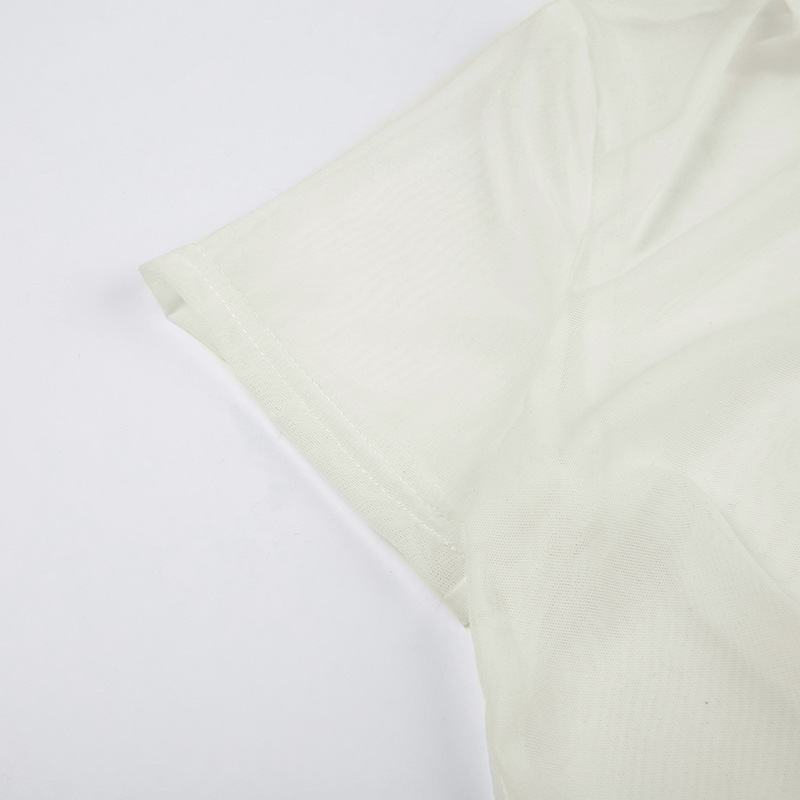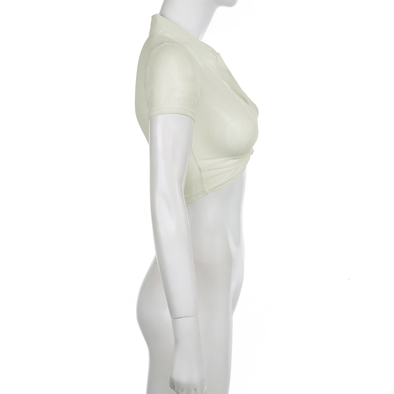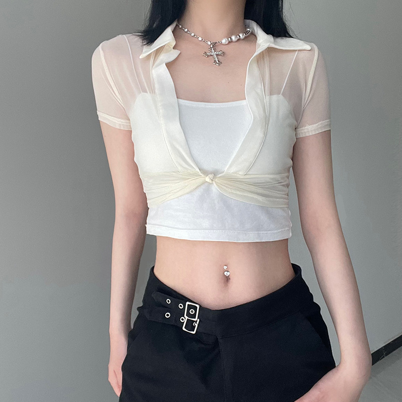 Hegel sexy thin spring perspective split design T-shirt Spice Girl short outer mesh sunscreen blouse