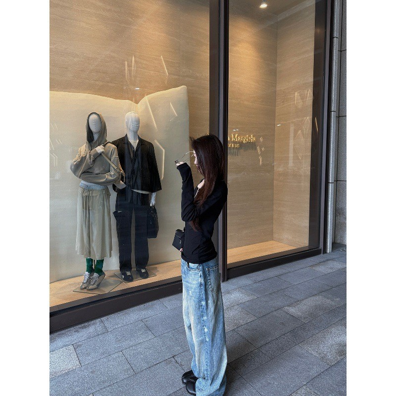 Here yaya shop 8.8 20:00 Salt Salt Cold Brew Cold Imported Fabric Buttons Skinny Lazy t