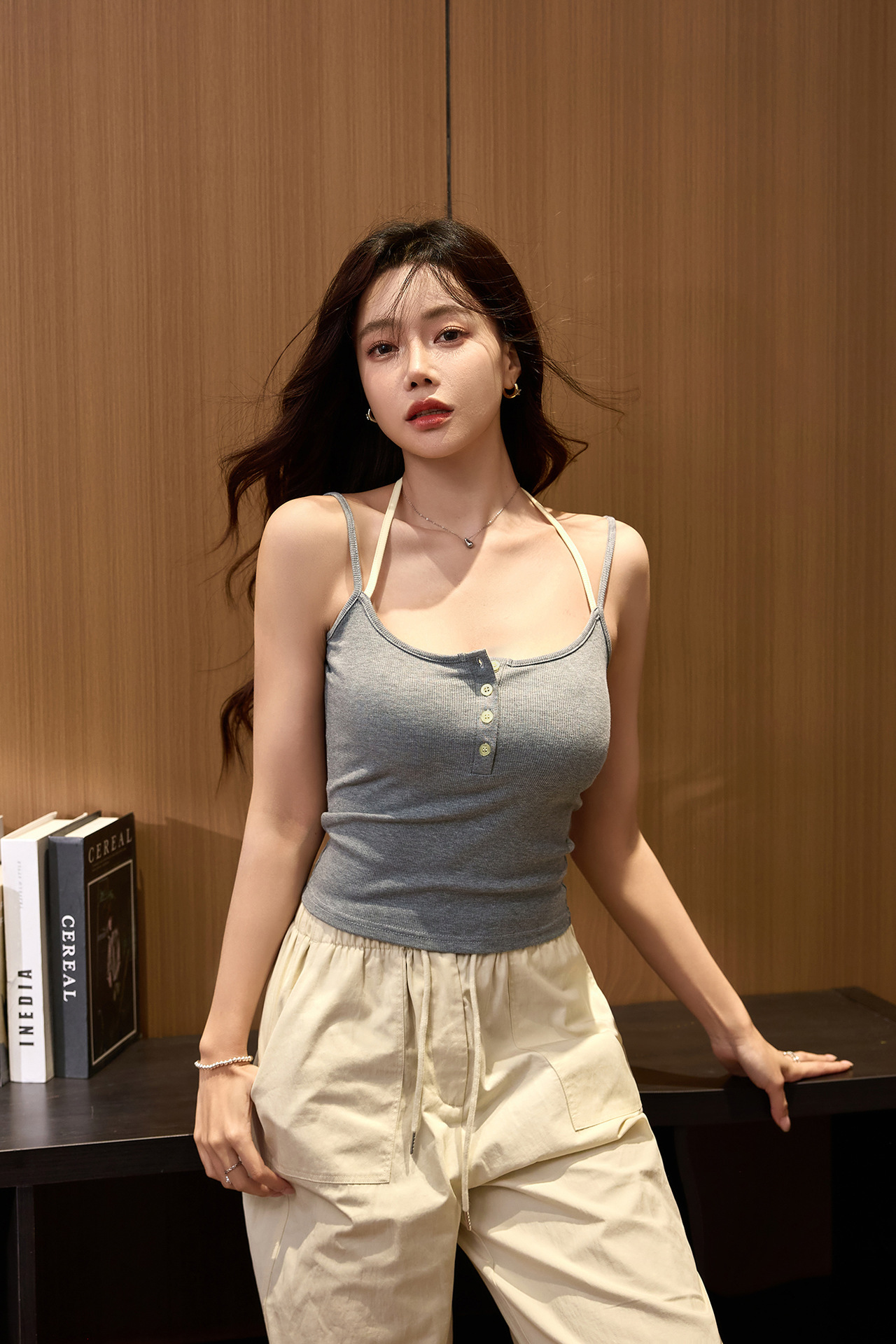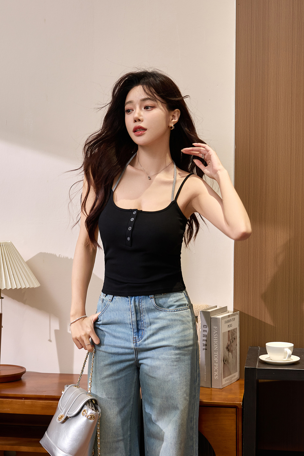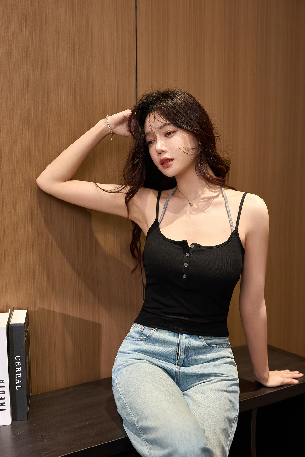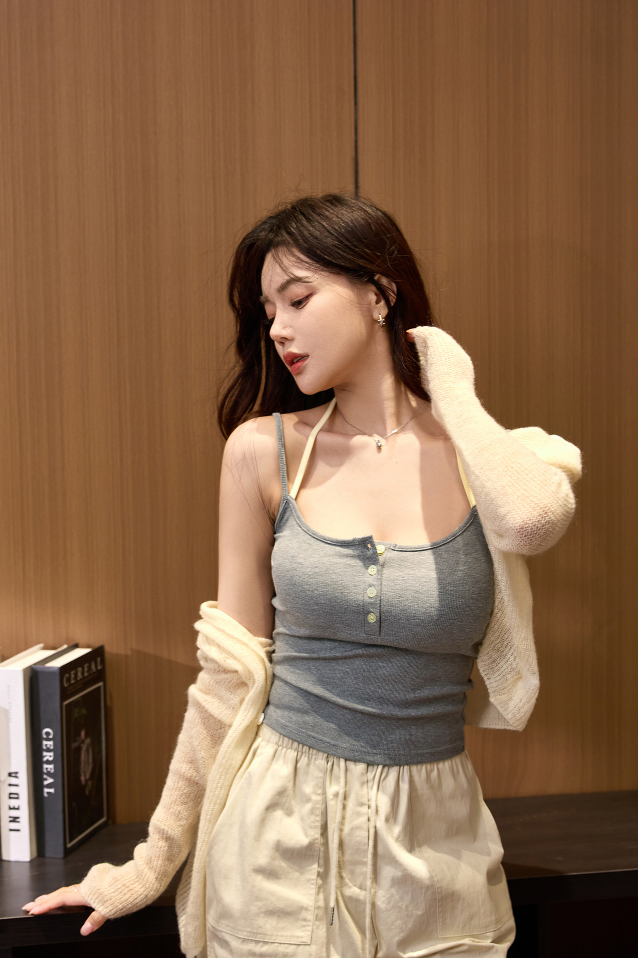#High elastic pure cotton #Fake two-piece neck sling Spice Girl vest women's summer new sexy outer wear with bottom top
