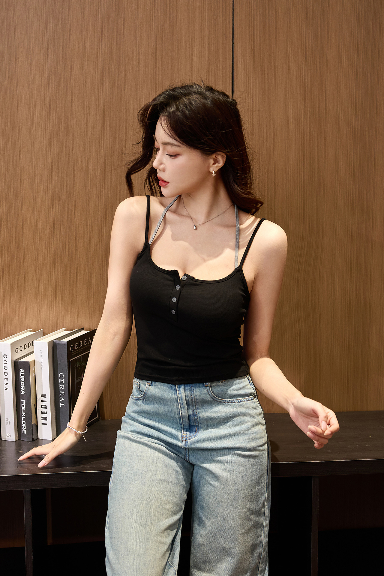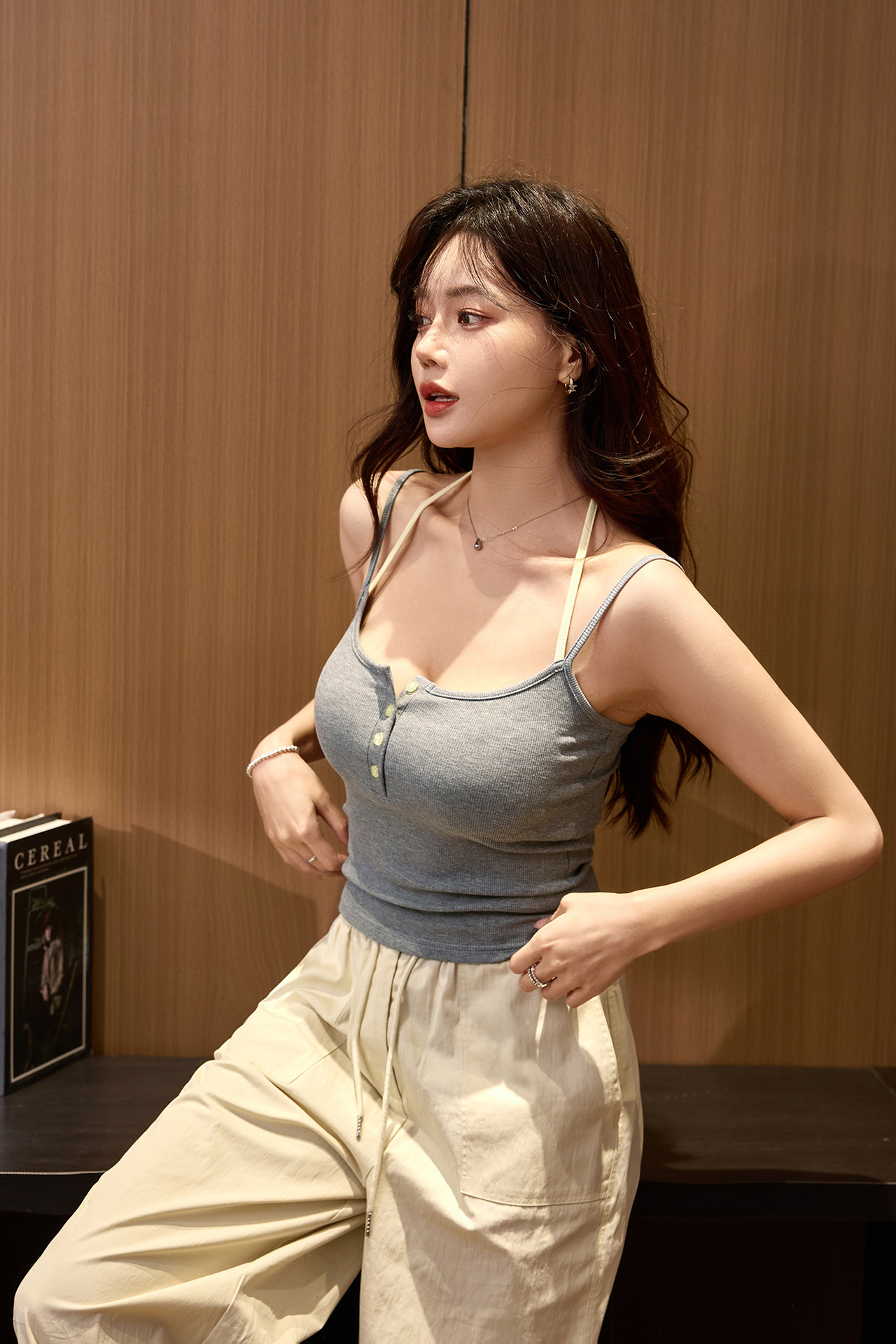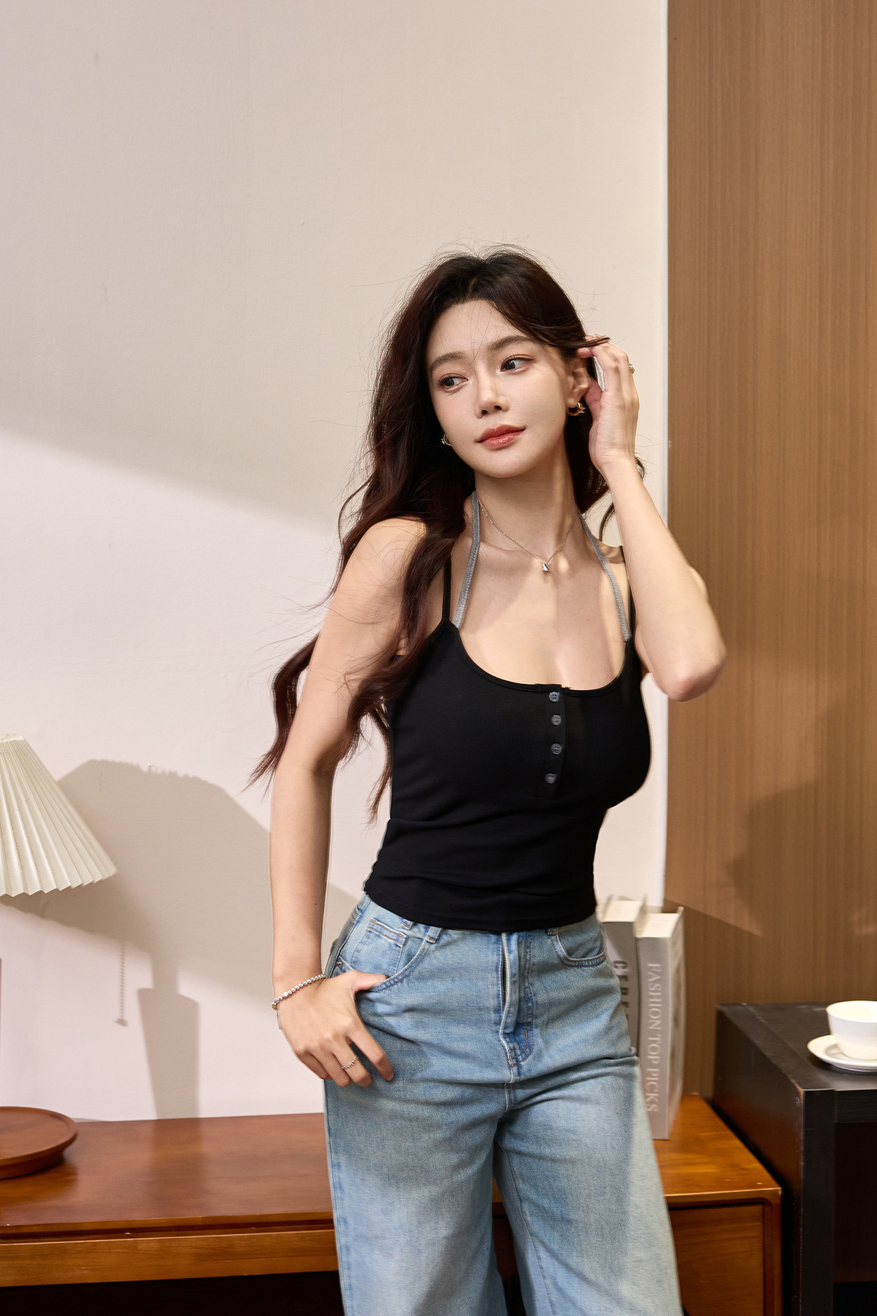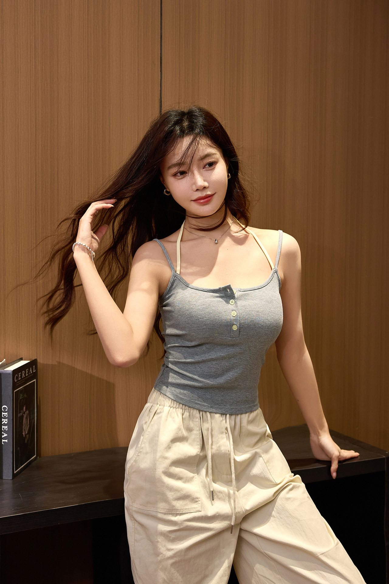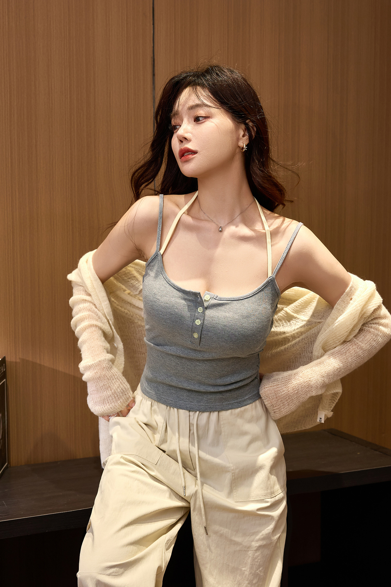 #High elastic pure cotton #Fake two-piece neck sling Spice Girl vest women's summer new sexy outer wear with bottom top
