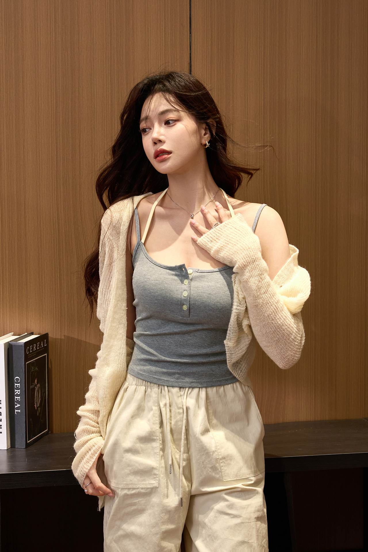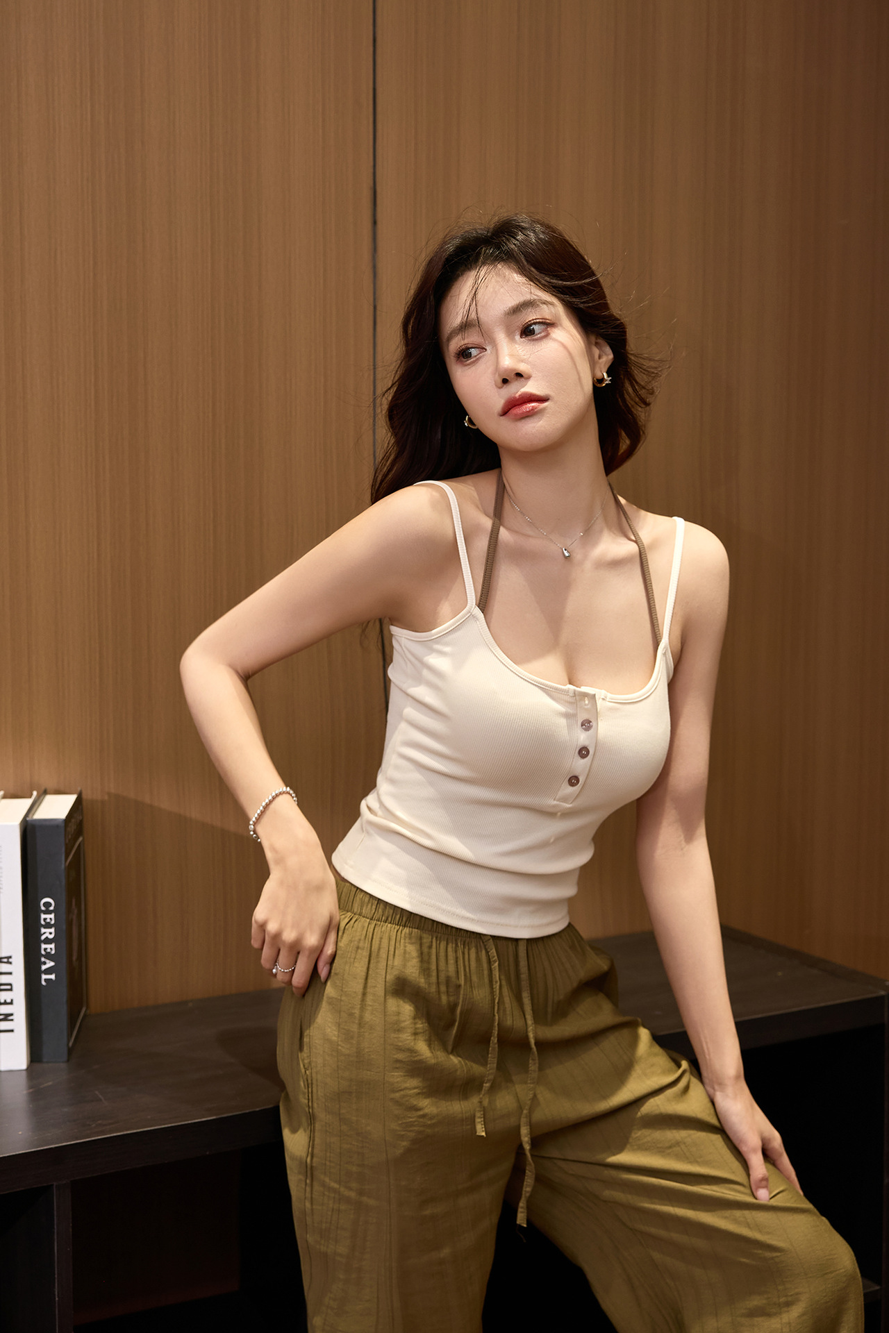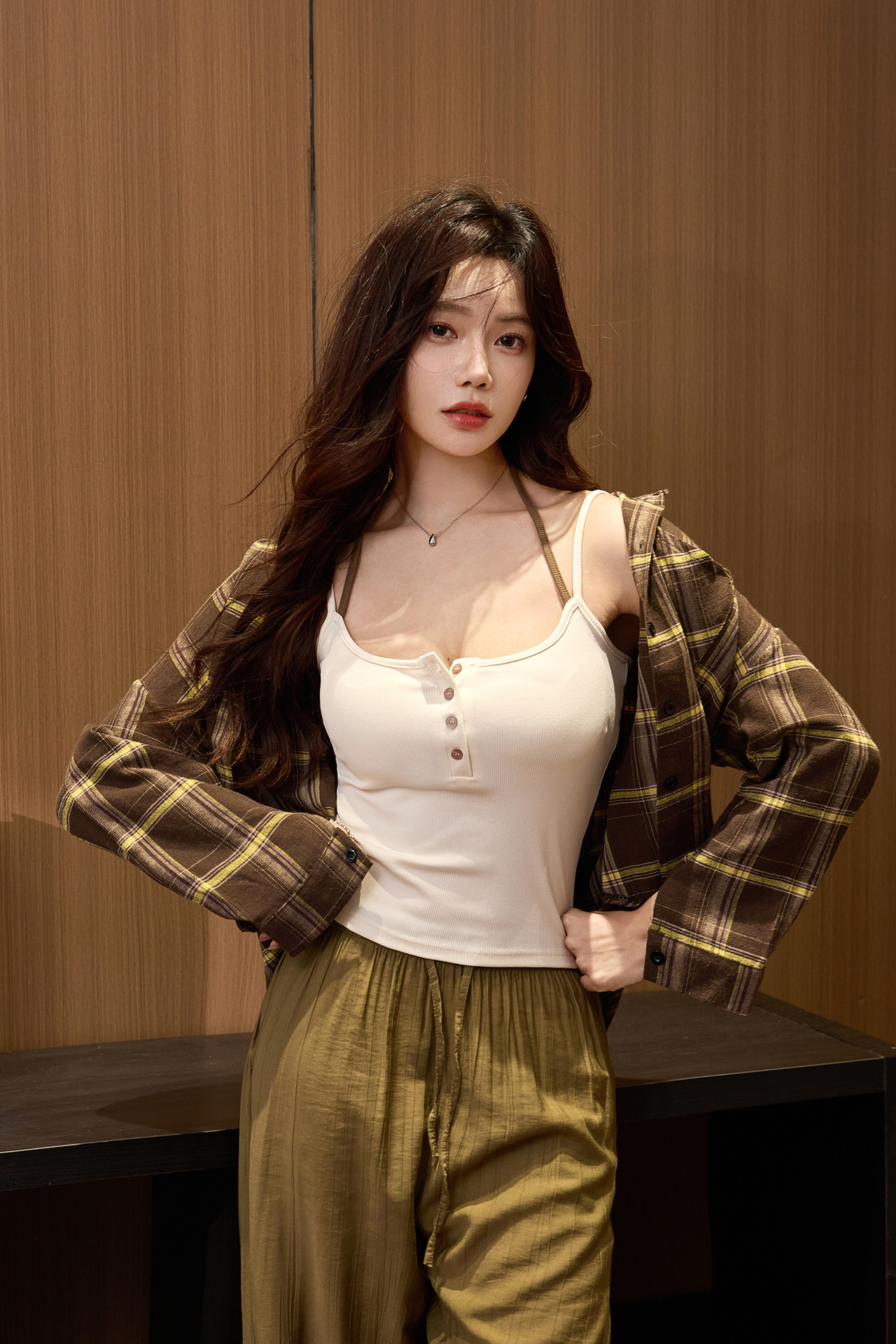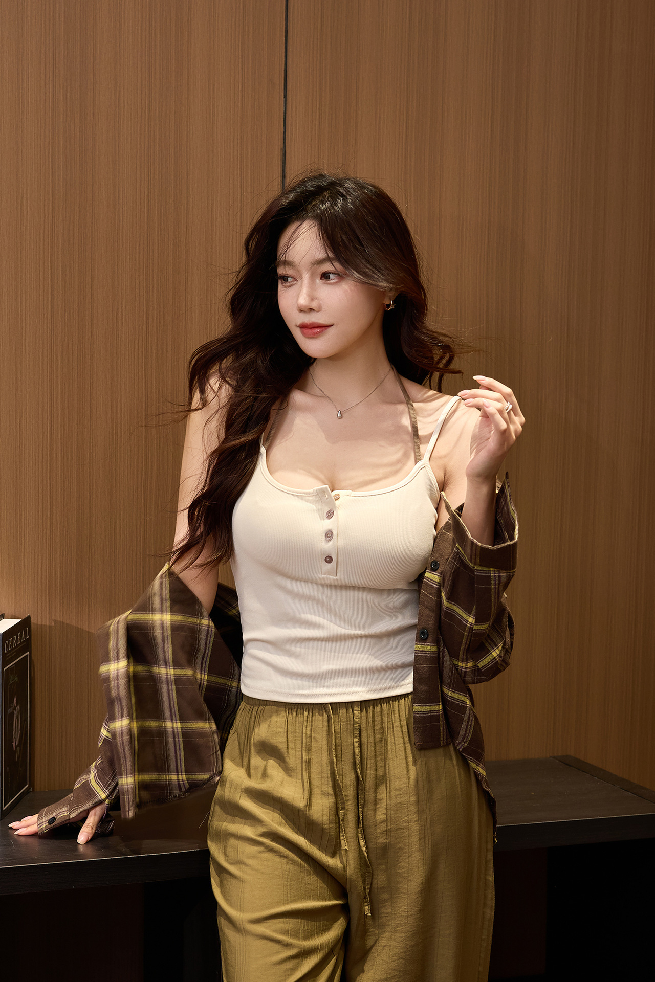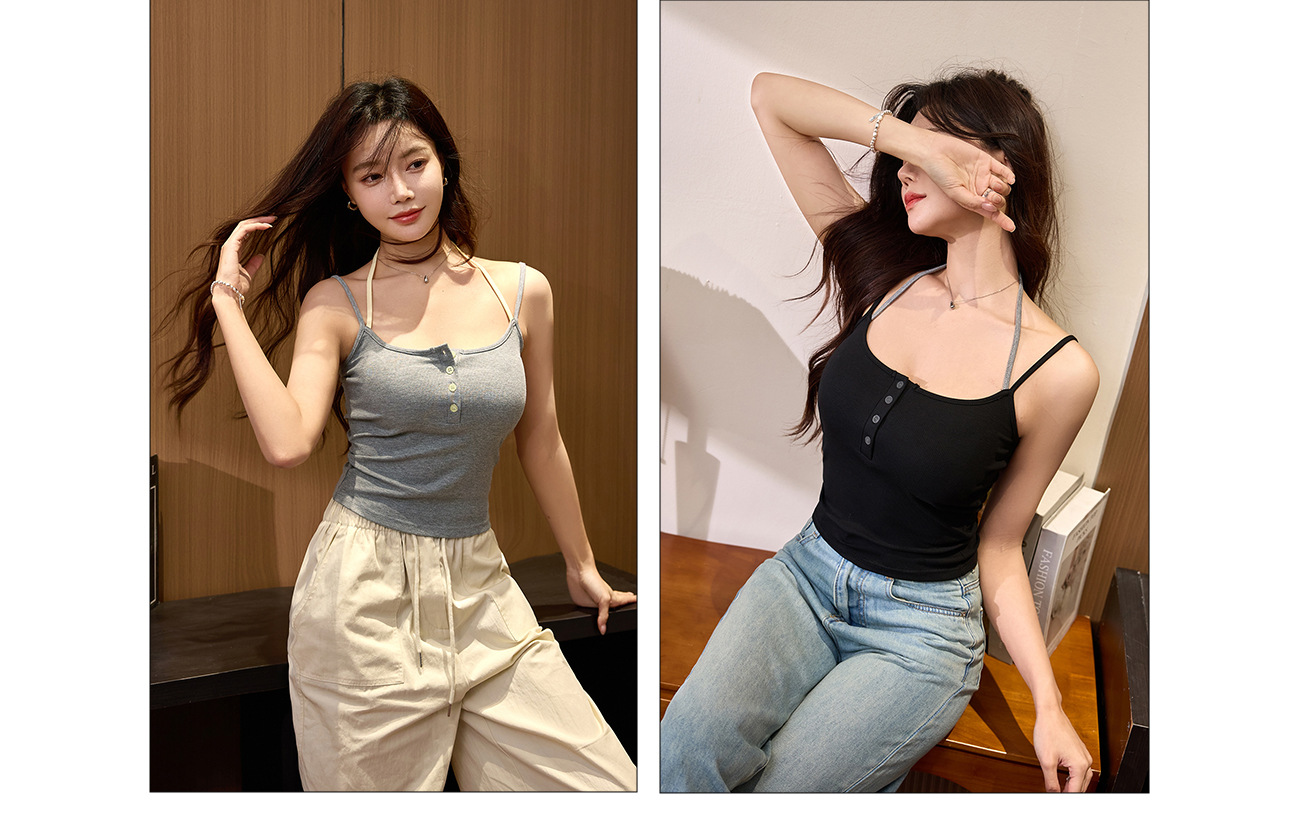#High elastic pure cotton #Fake two-piece neck sling Spice Girl vest women's summer new sexy outer wear with bottom top