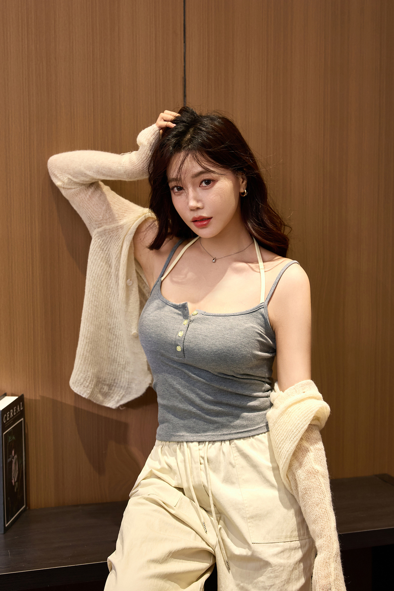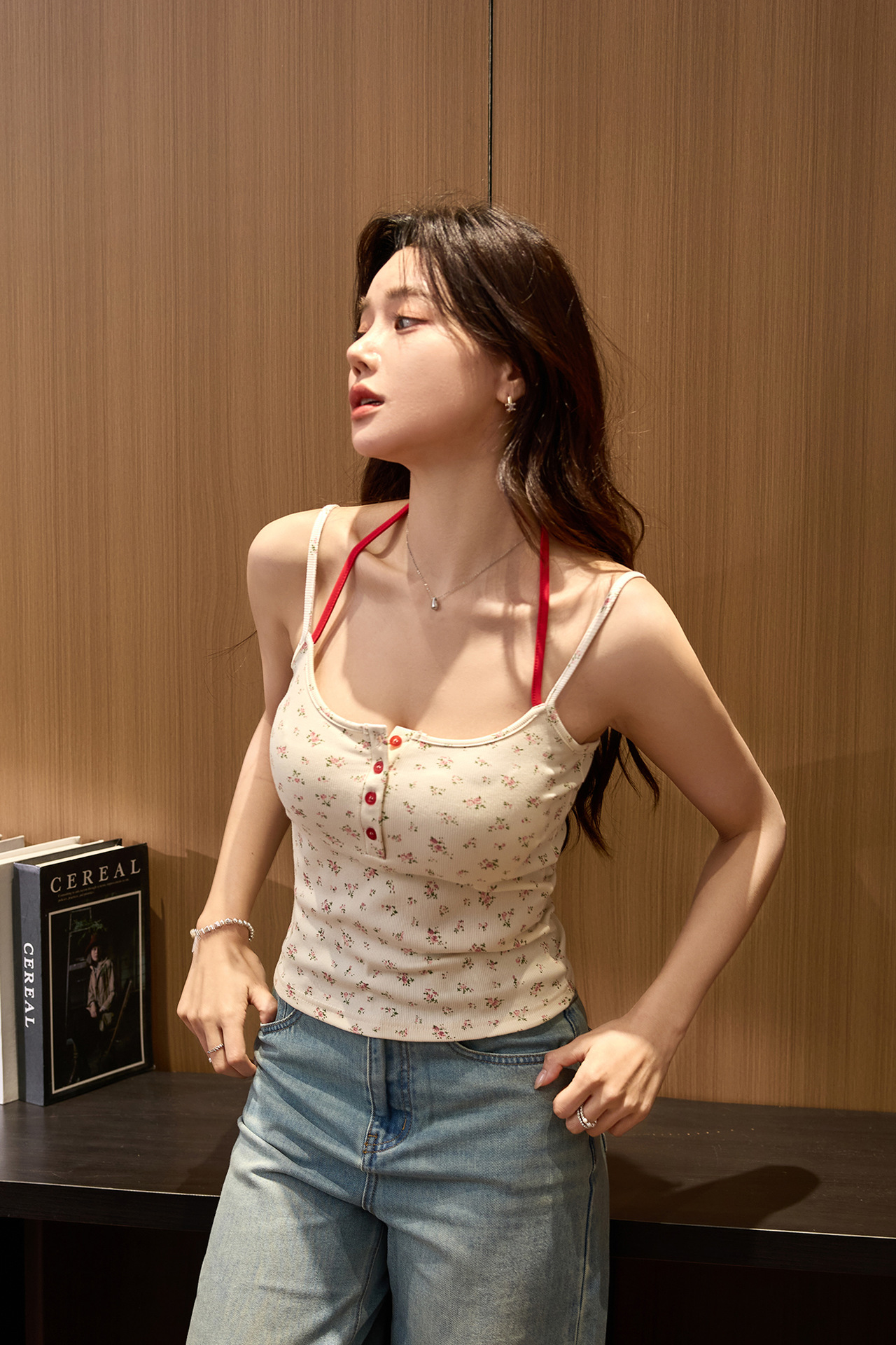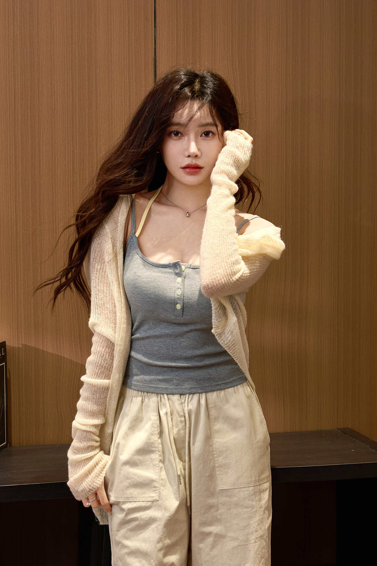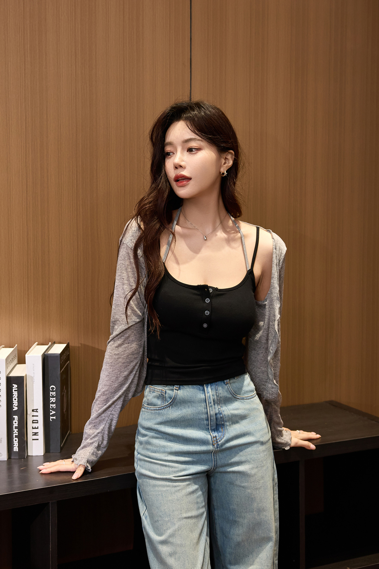 #High elastic pure cotton #Fake two-piece neck sling Spice Girl vest women's summer new sexy outer wear with bottom top