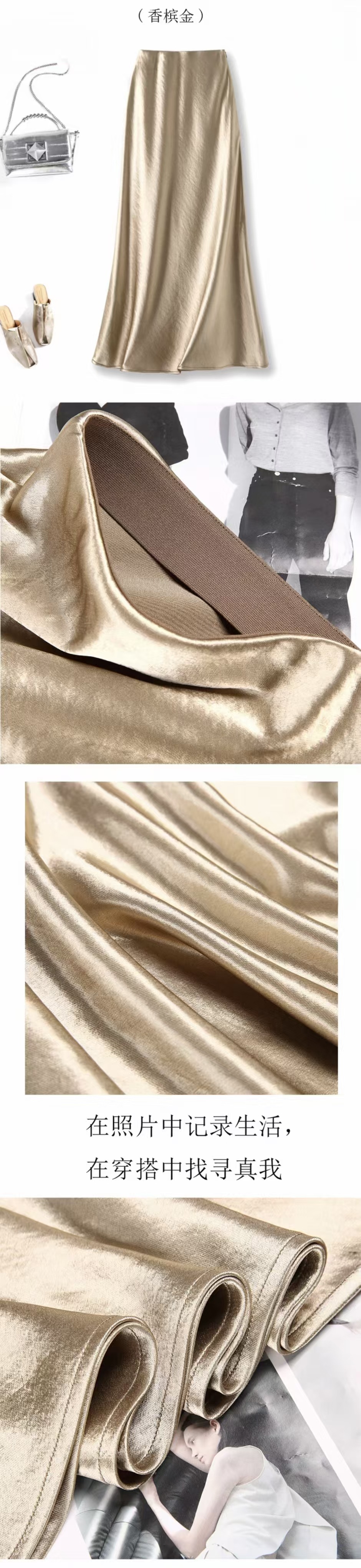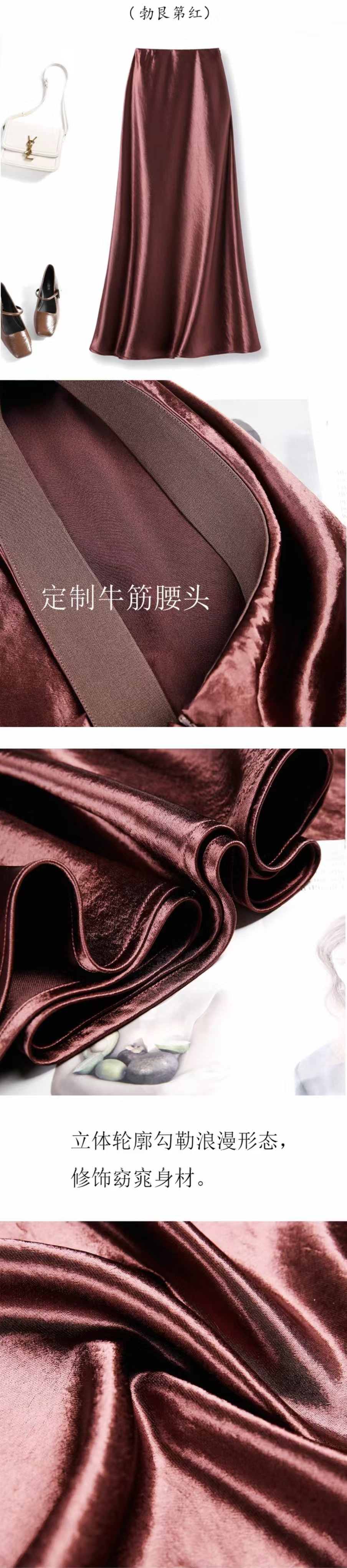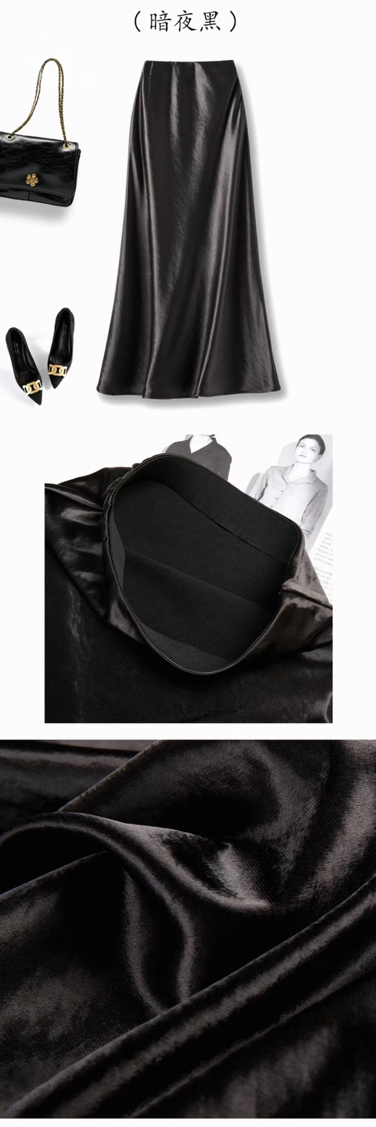 High-end acetate velvet skirt for women, silky and drape in winter, thin and elastic waist oblique French fishtail dress