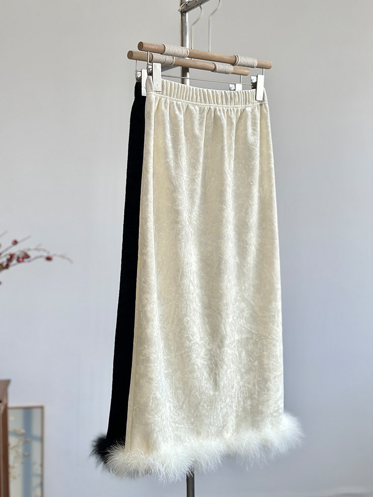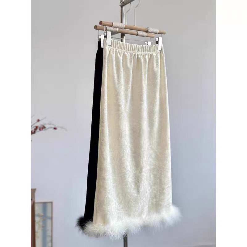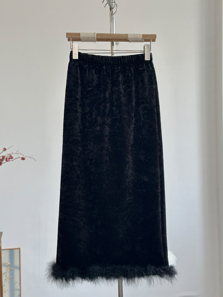High-end black velvet skirt for women's 2025 autumn and winter new slim-fitting and thin velvet-covered straight hip-wrapped skirt