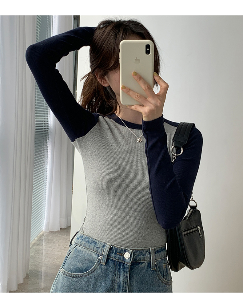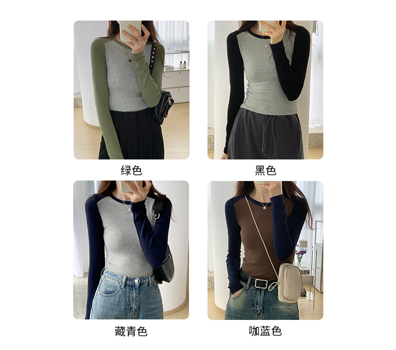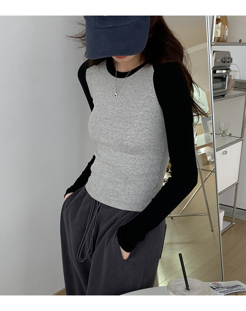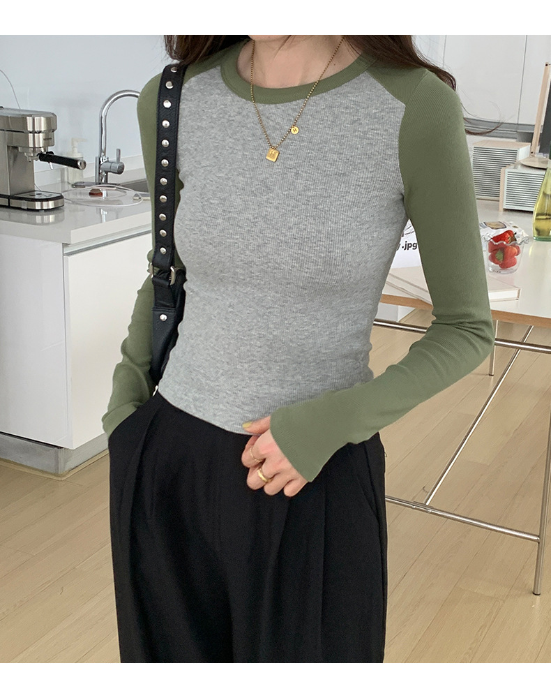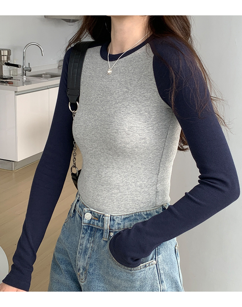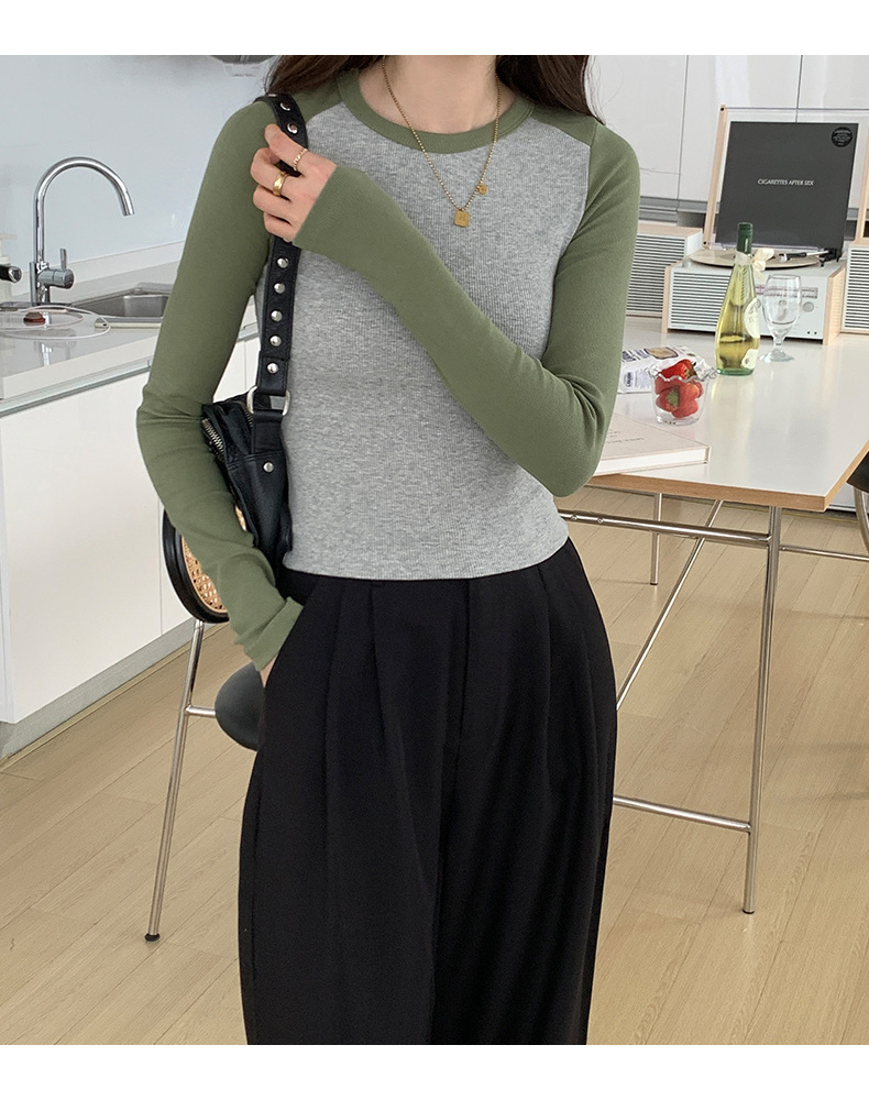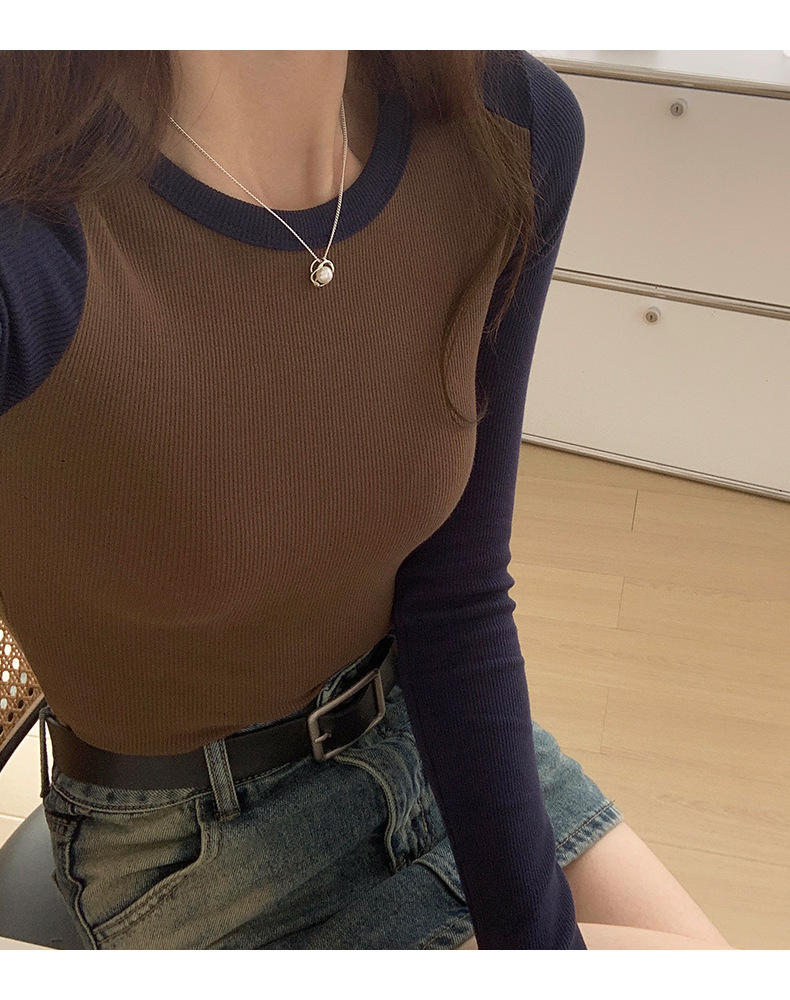 High-quality, fine-threaded cotton 2026 autumn new product bottoming shirt women's long-sleeved T-shirt color matching retro contrasting versatile top