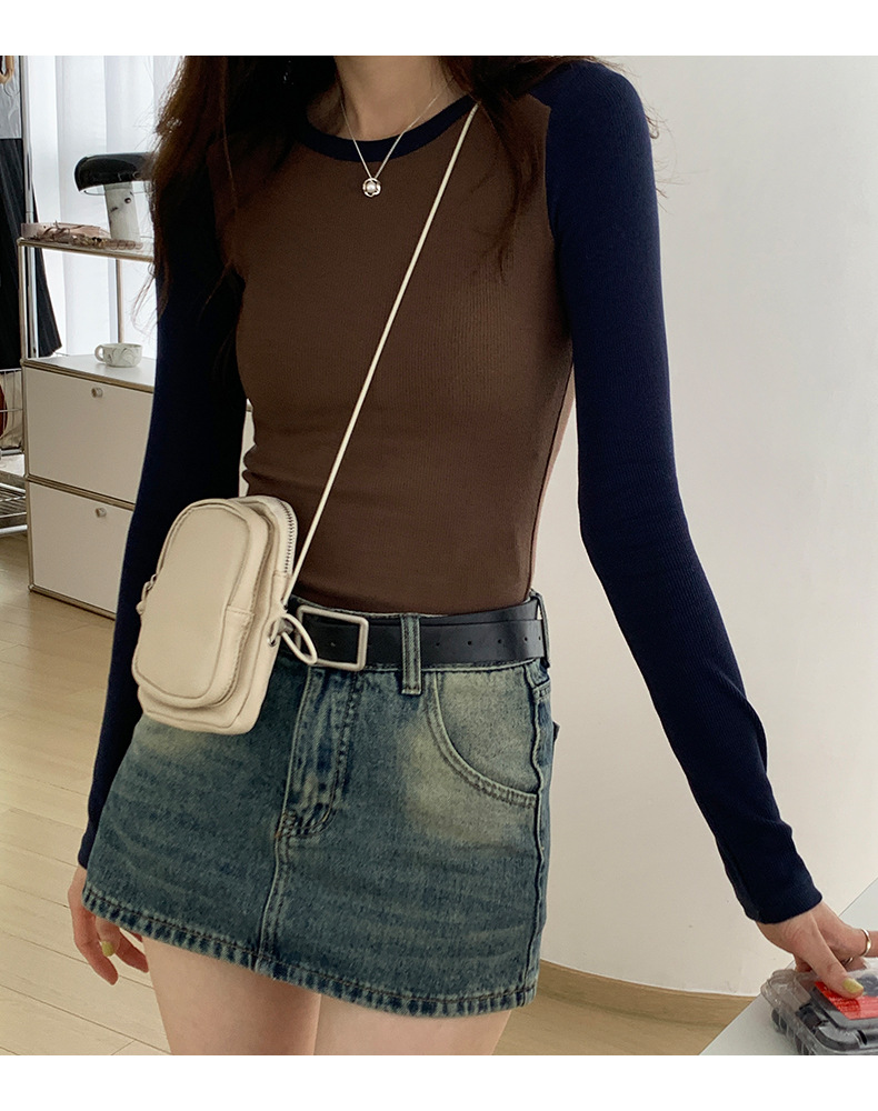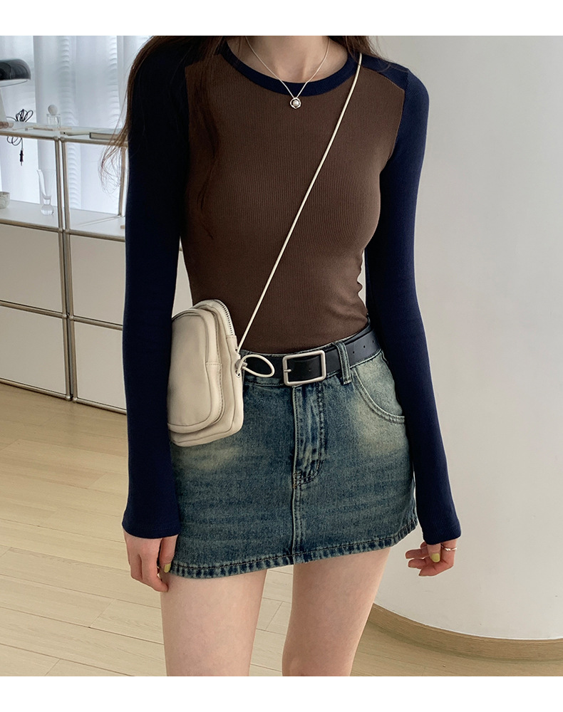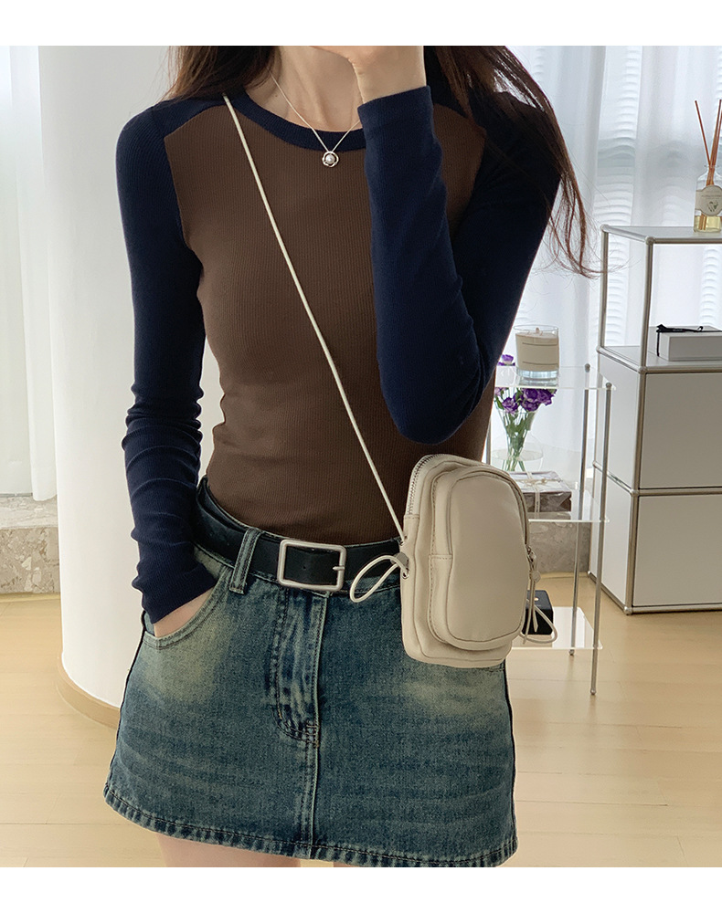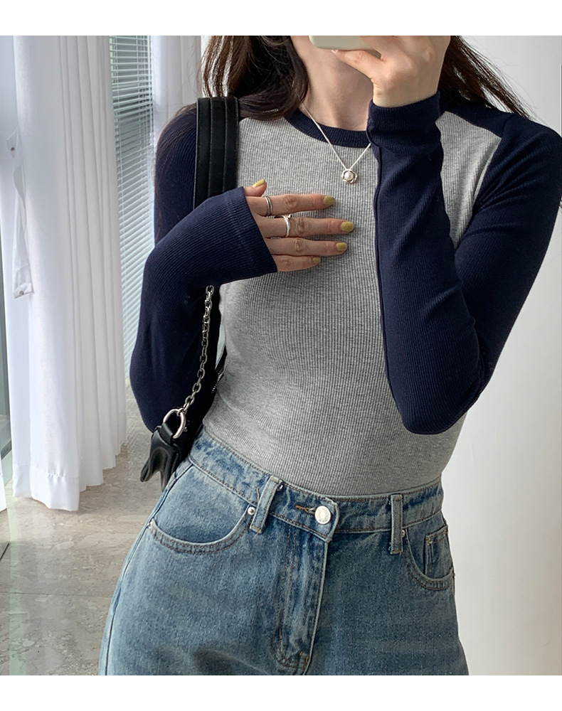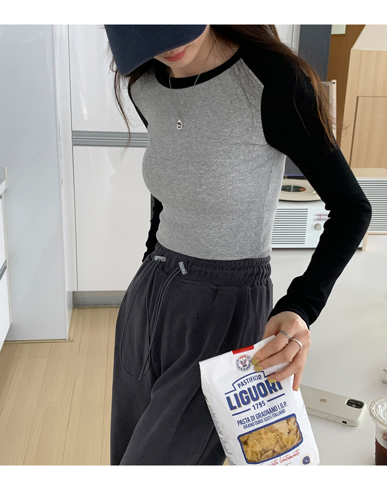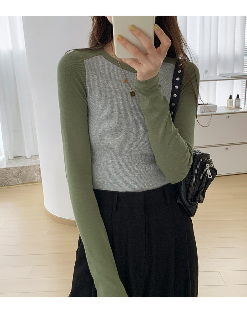 High-quality, fine-threaded cotton 2026 autumn new product bottoming shirt women's long-sleeved T-shirt color matching retro contrasting versatile top