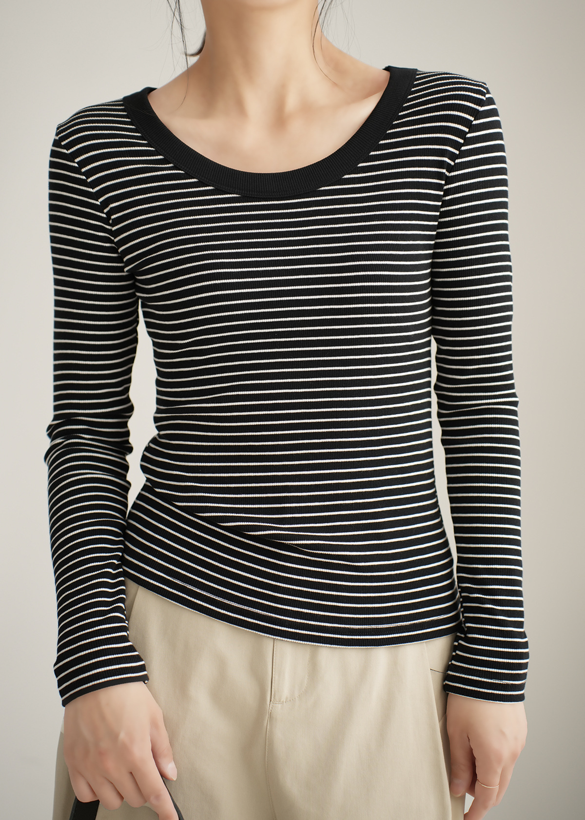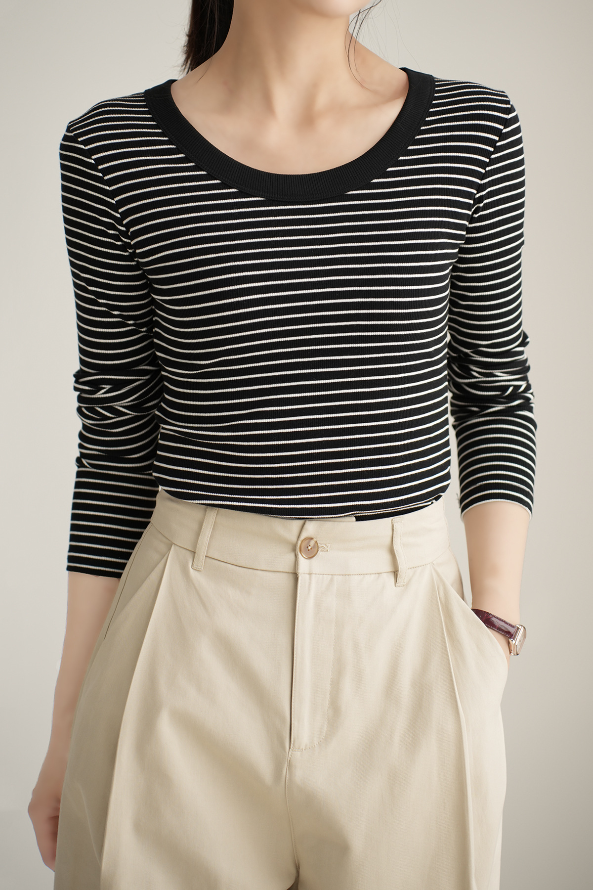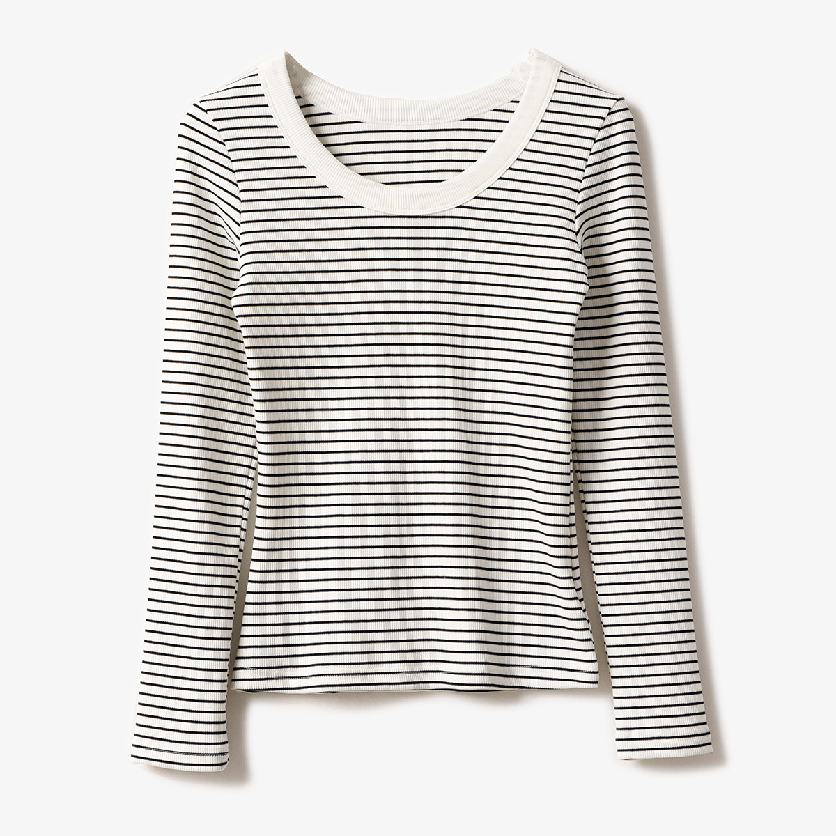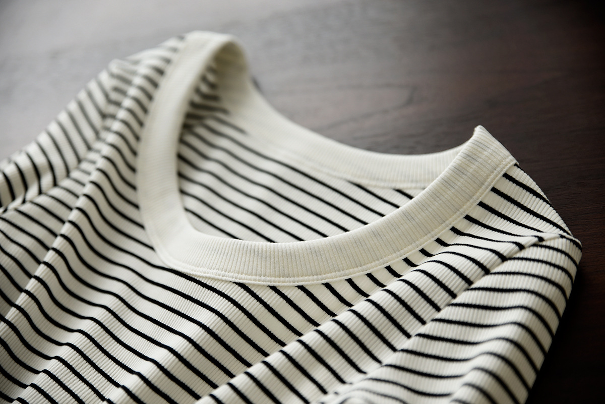 High-quality pure cotton T-shirt women's long-sleeved striped bottoming shirt 2026 autumn new round neck slim-fitting and thin versatile top