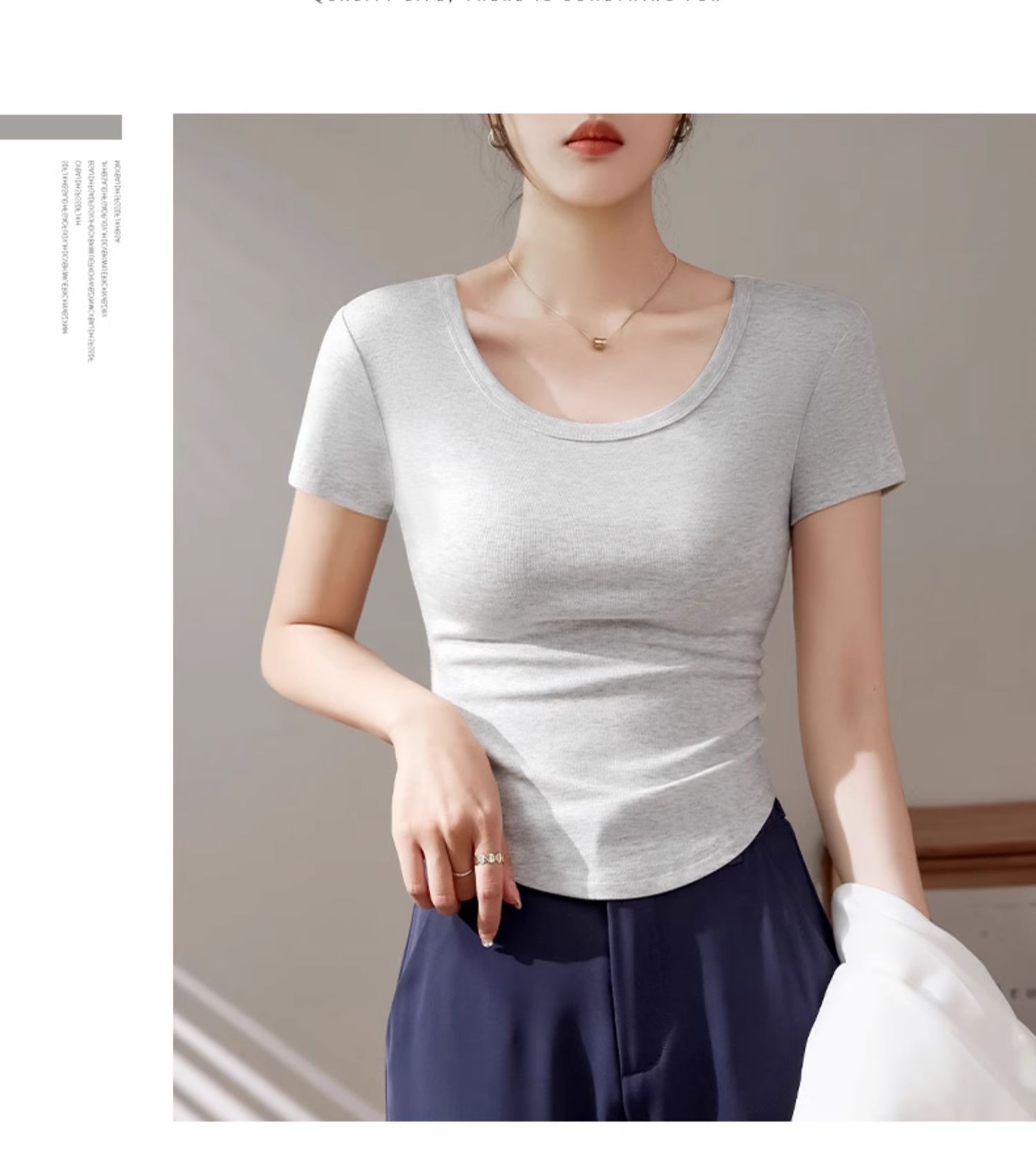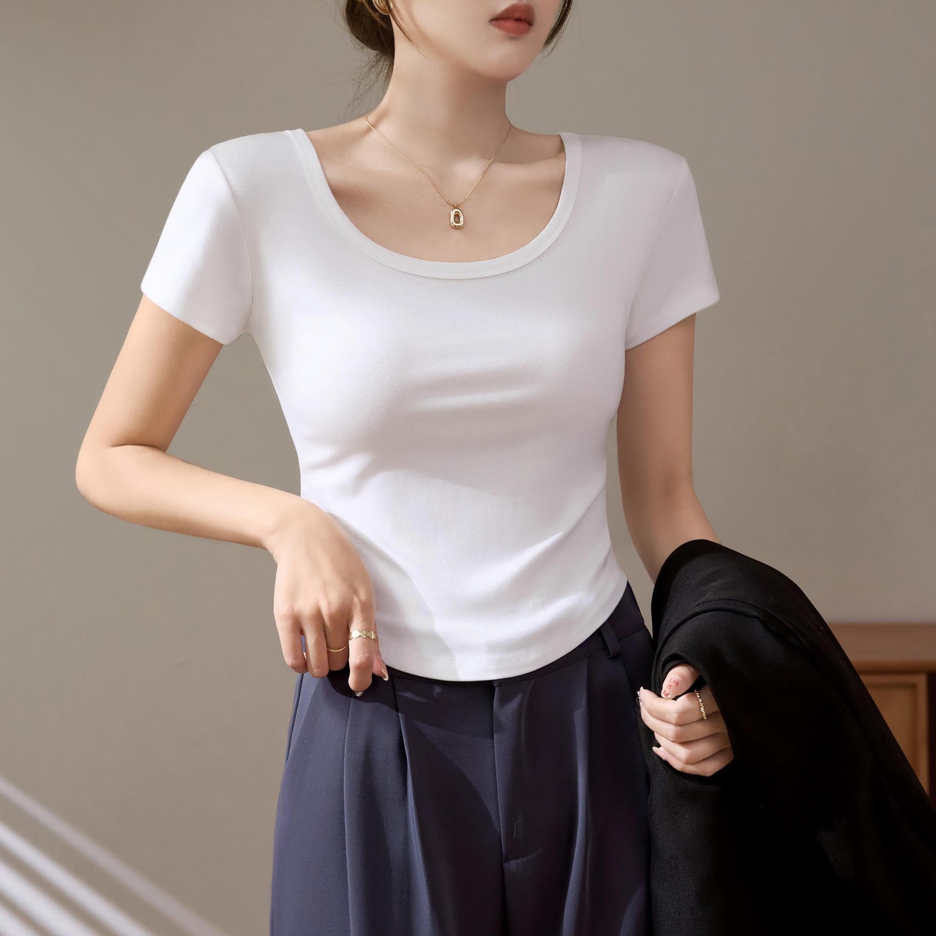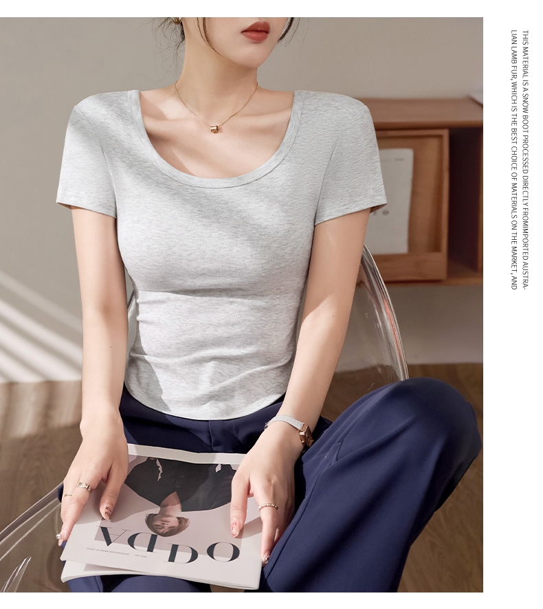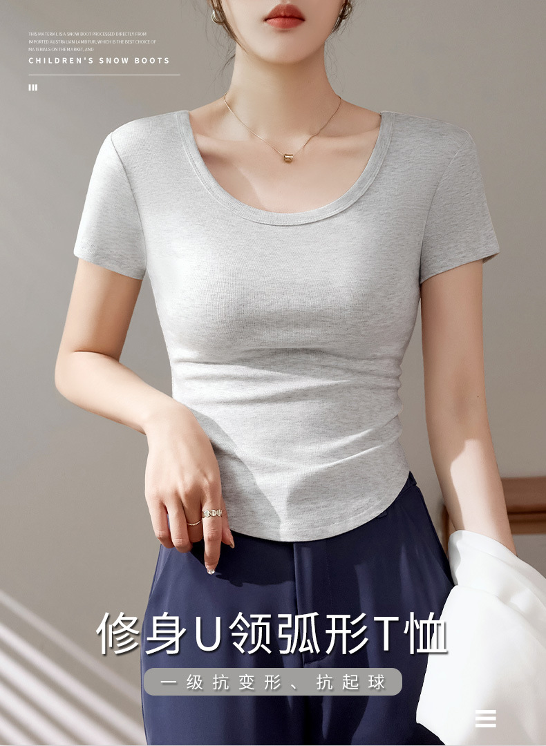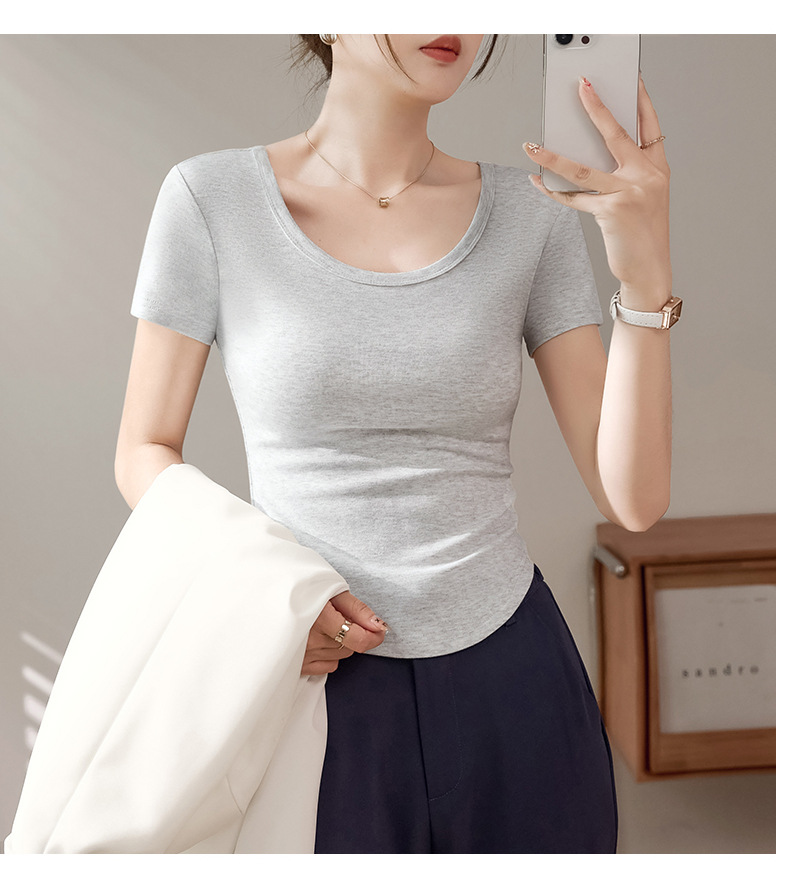 High-quality short-sleeved T-shirt women's 2025 new summer slim-fitting and thin curved hem fashionable foreign U-neck top trendy