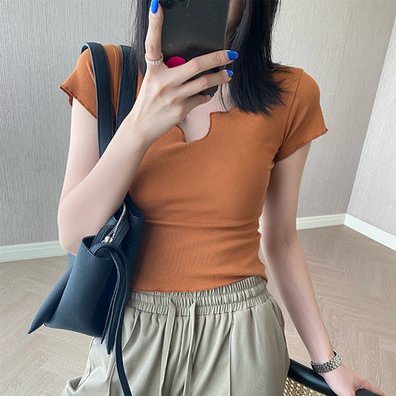 High waist dew belly button curling 2026 summer new cotton short t-shirt women's short-sleeved Spice Girl slim-fit shoulder top