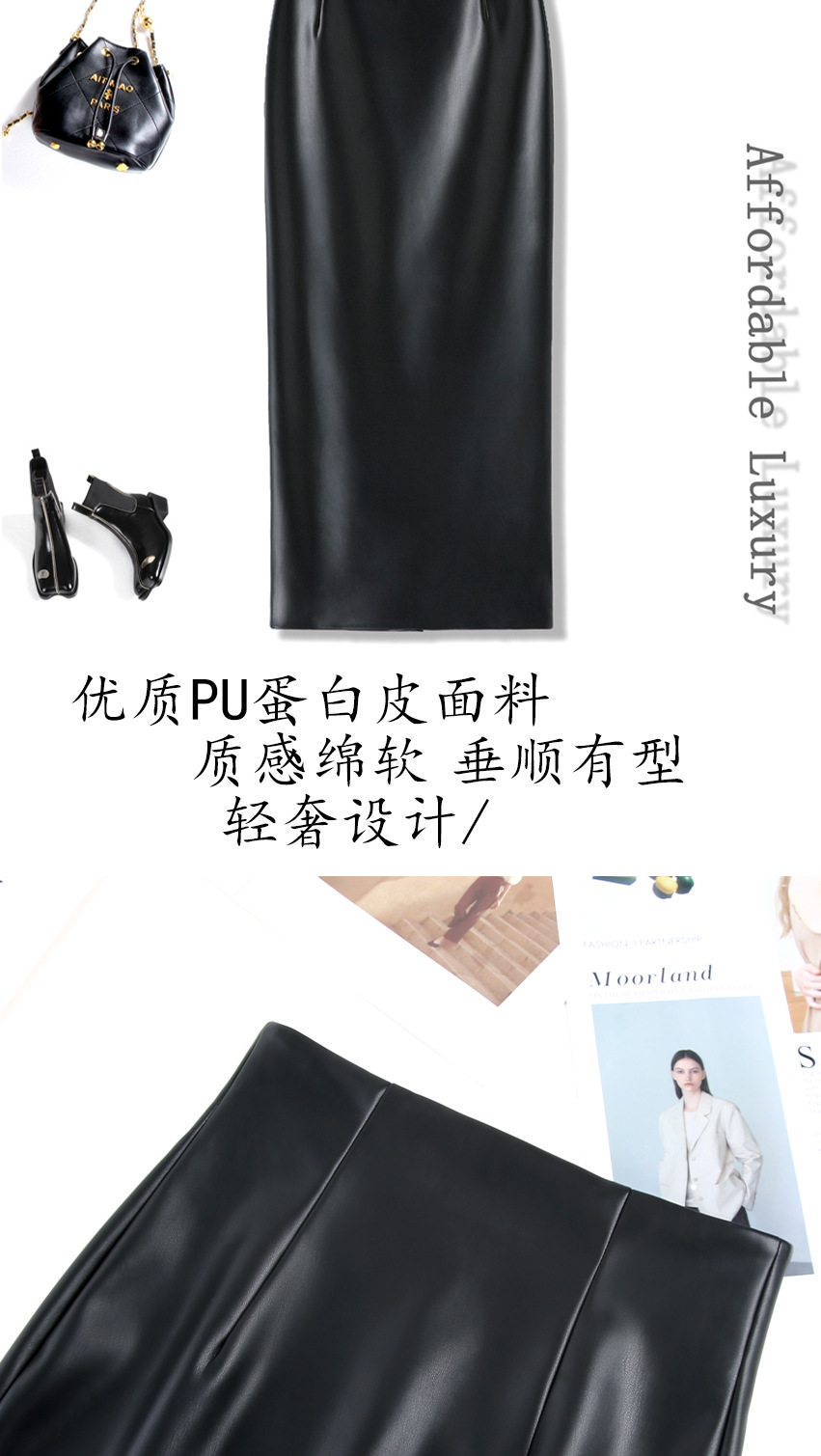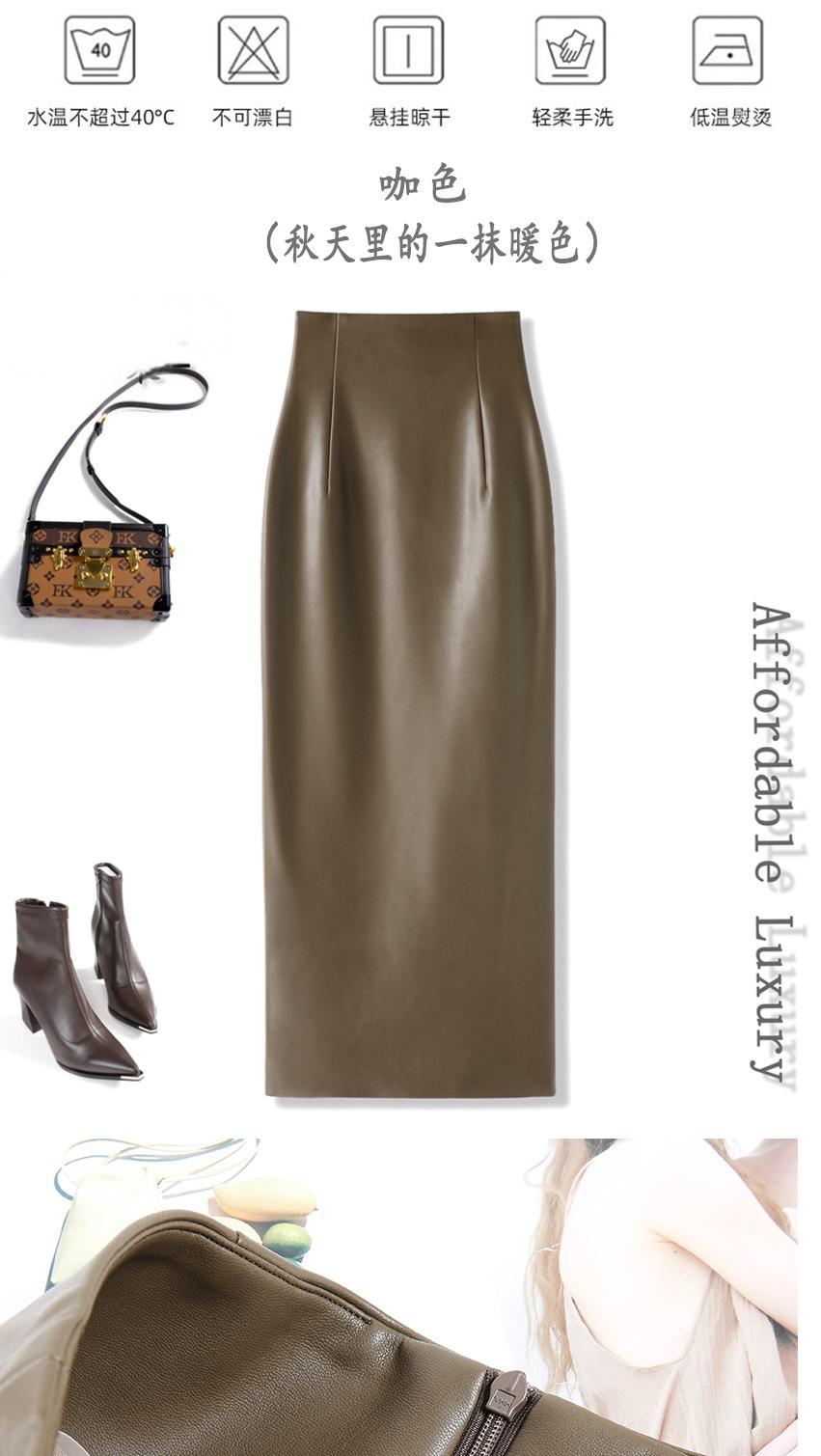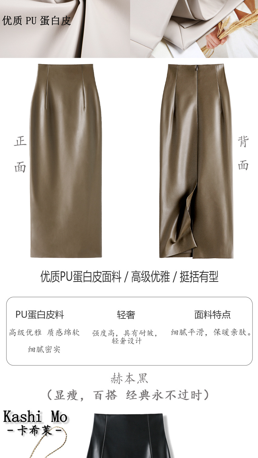 High waist leather skirt, half-length long skirt for women's autumn and winter new hip-wrapped temperament straight skirt, split fork, slim fit elastic one-step skirt