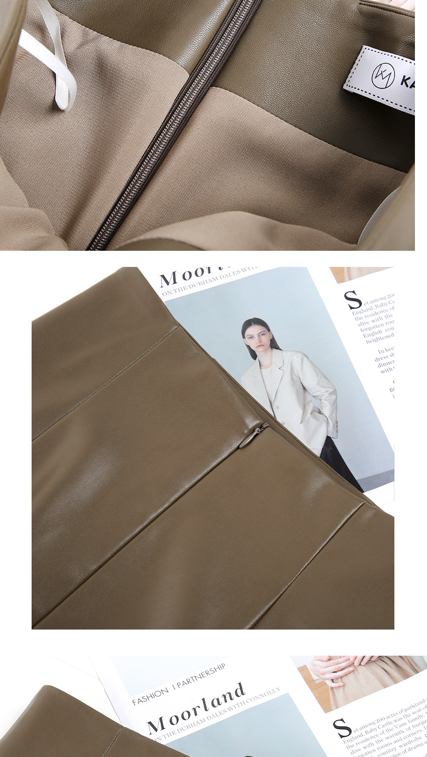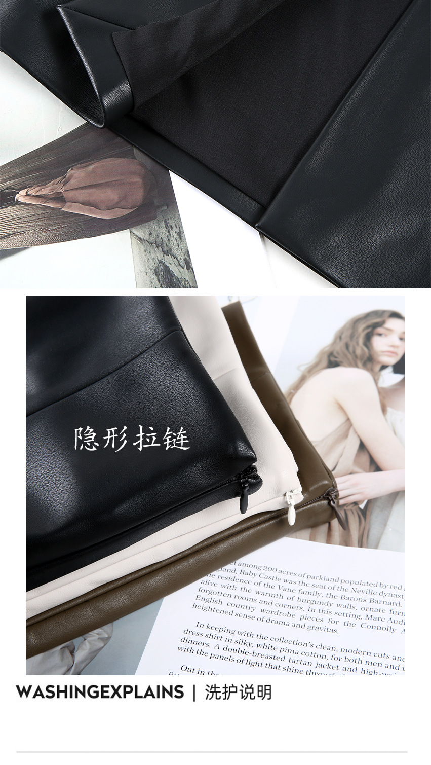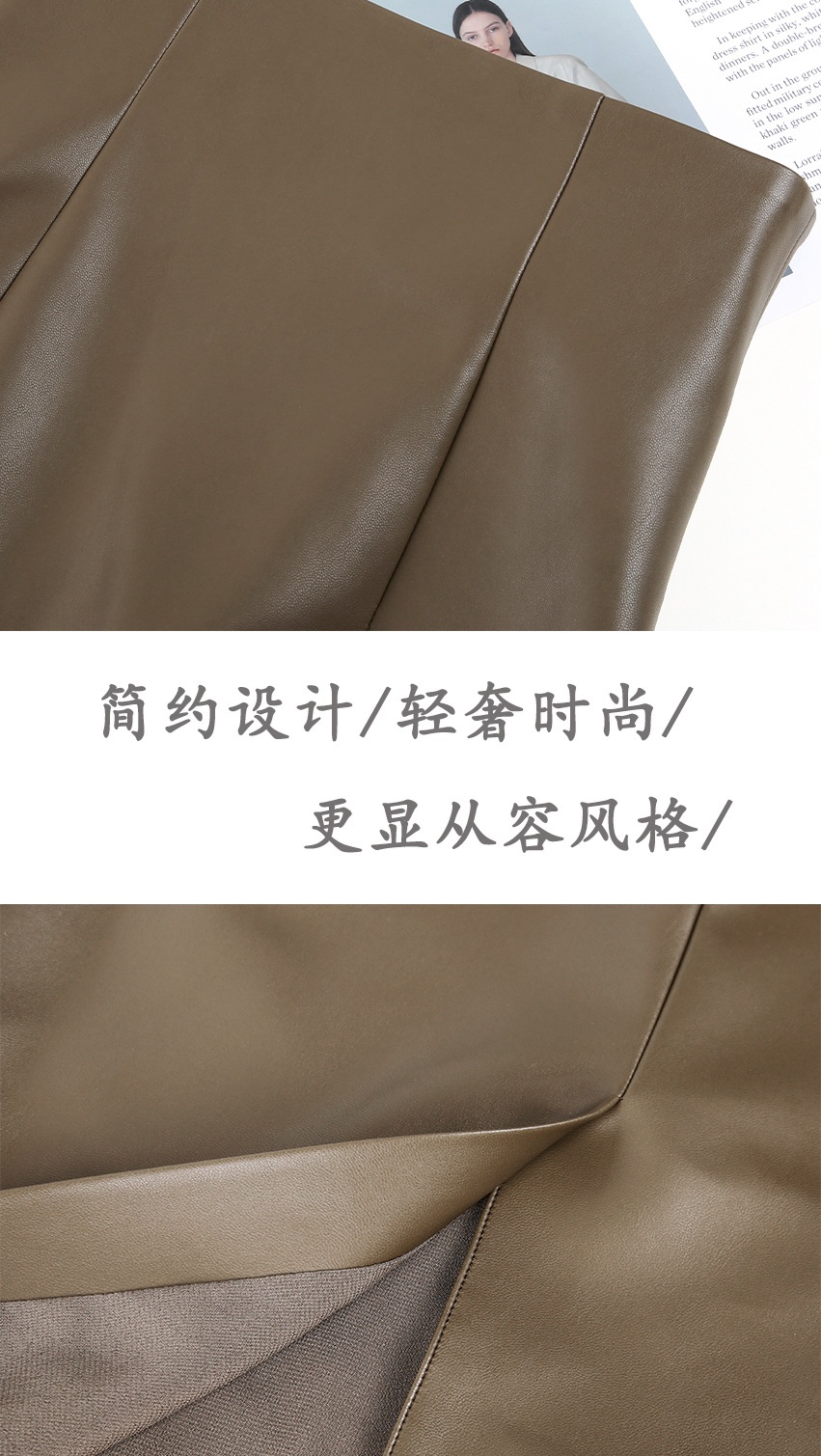 High waist leather skirt, half-length long skirt for women's autumn and winter new hip-wrapped temperament straight skirt, split fork, slim fit elastic one-step skirt