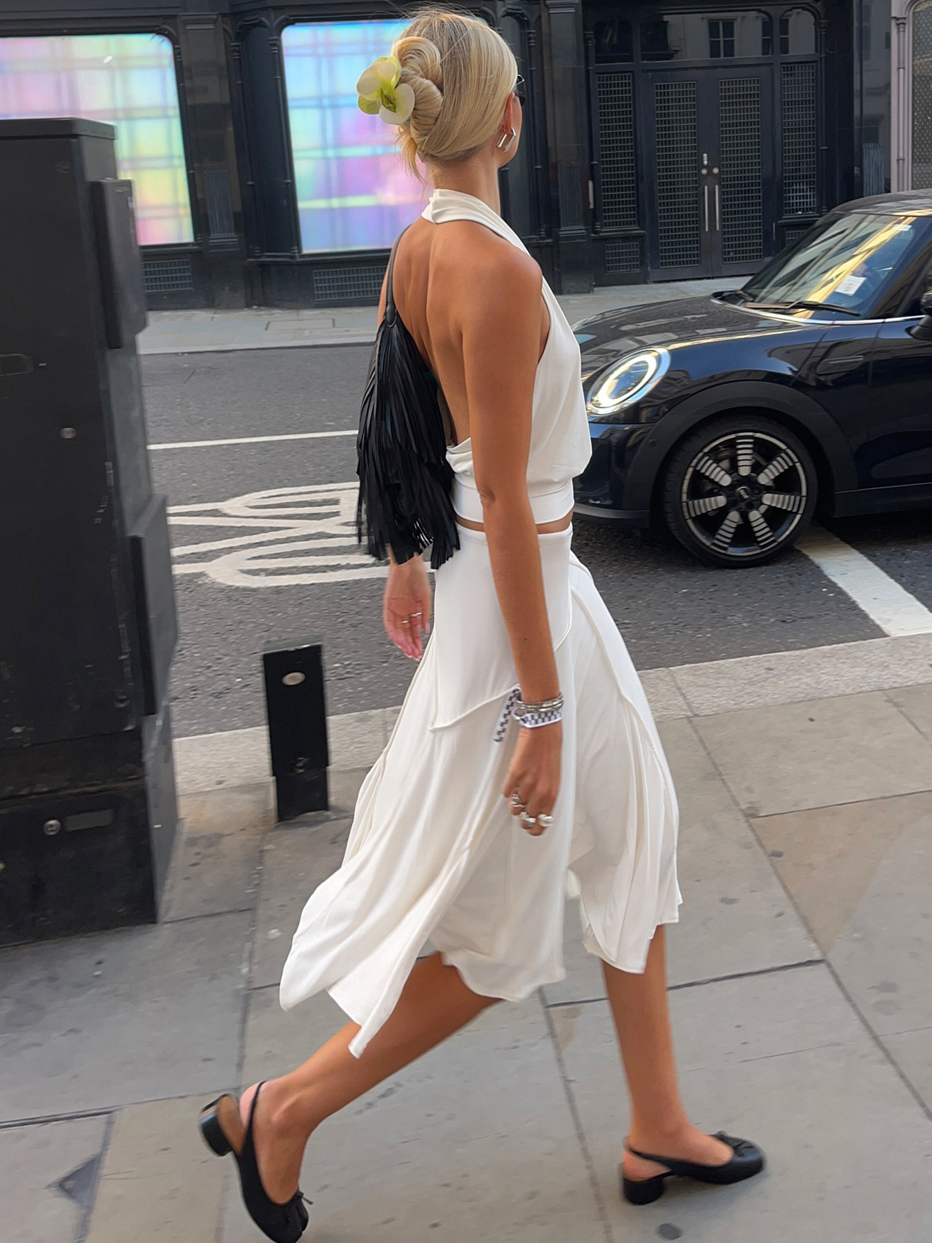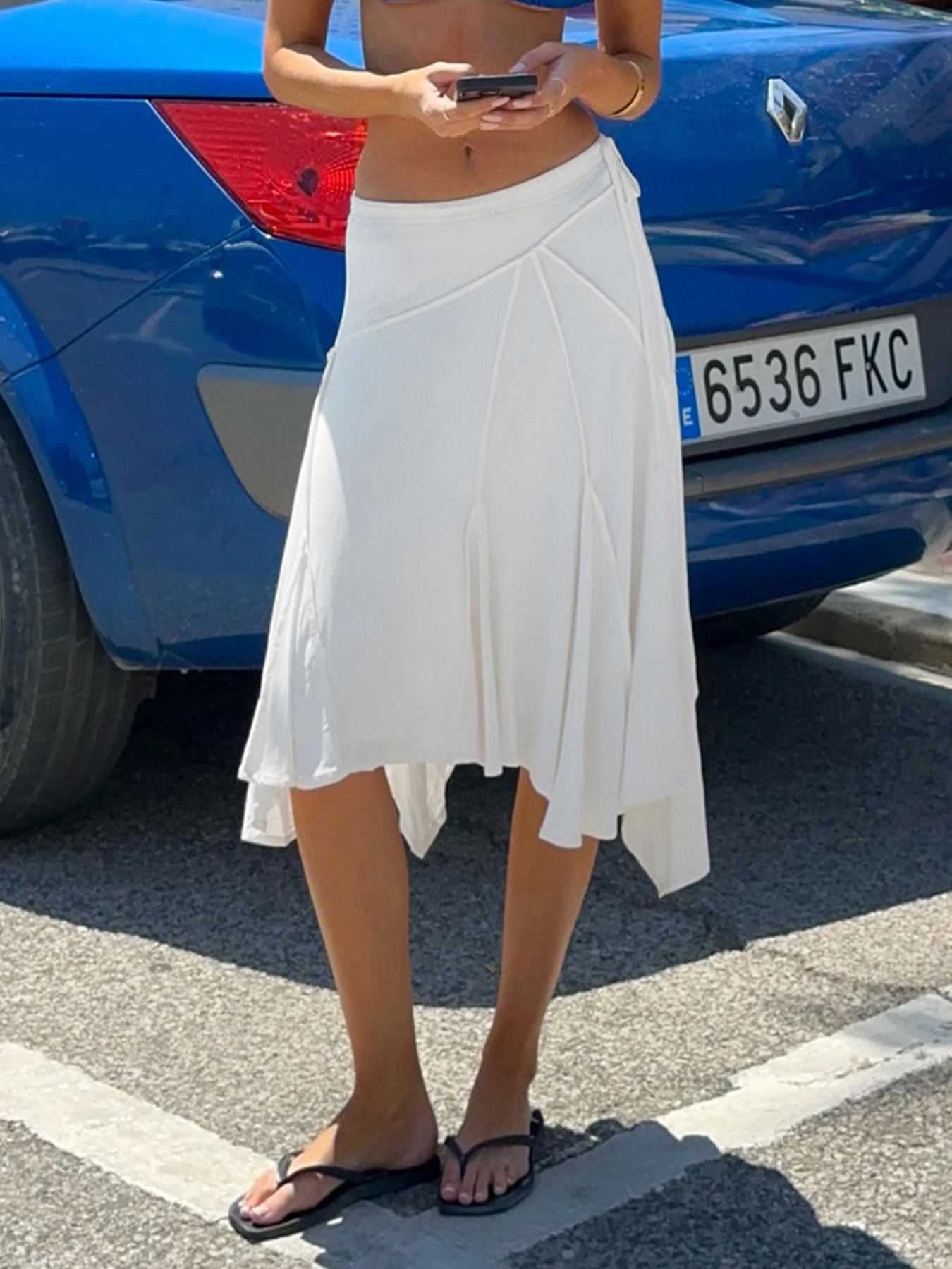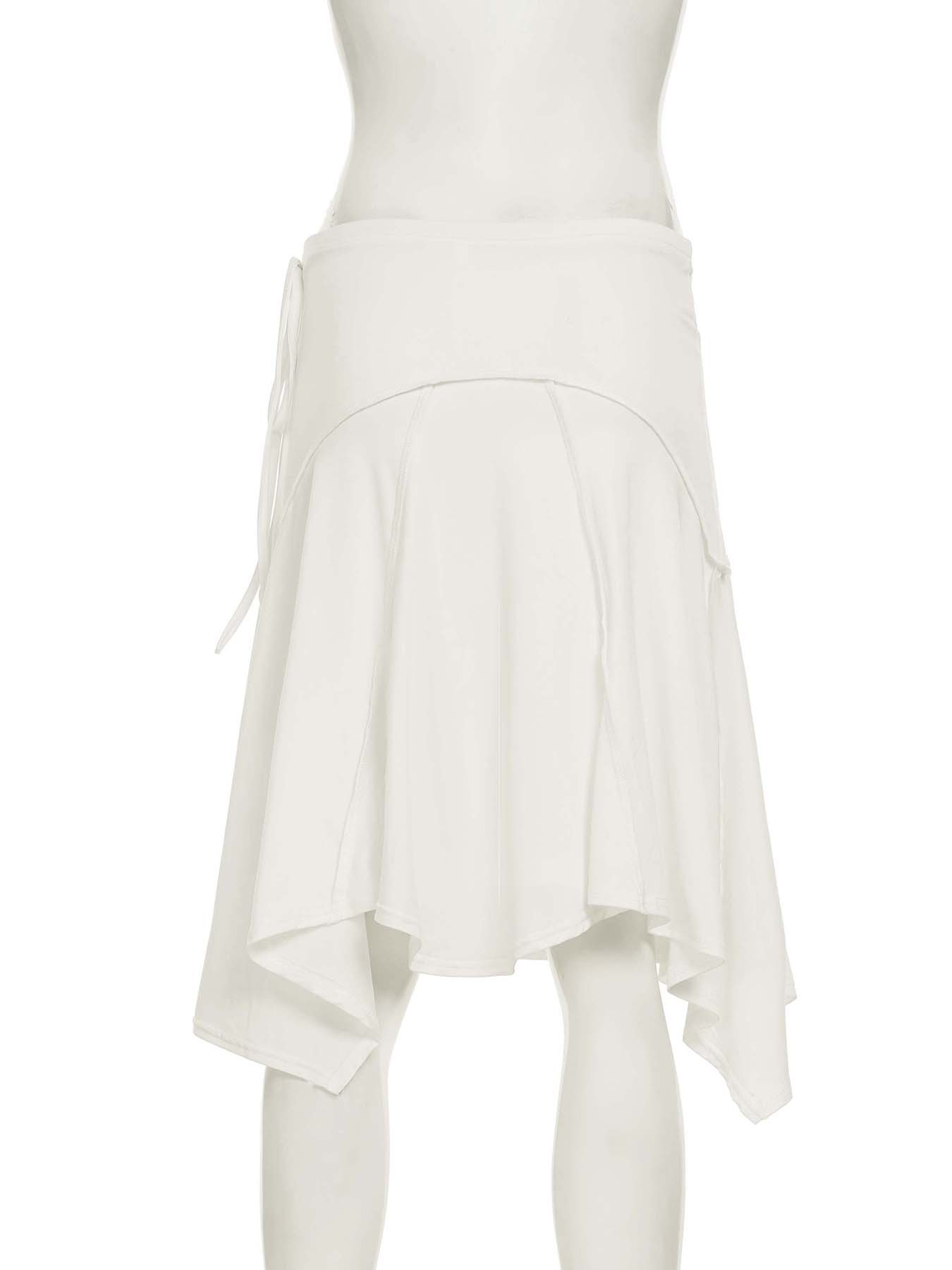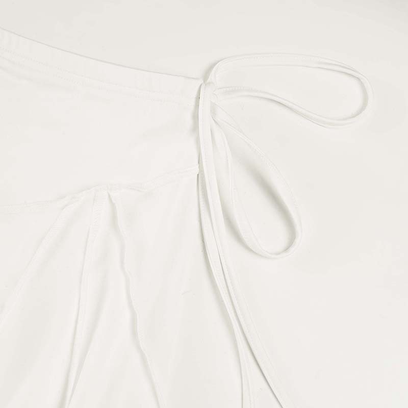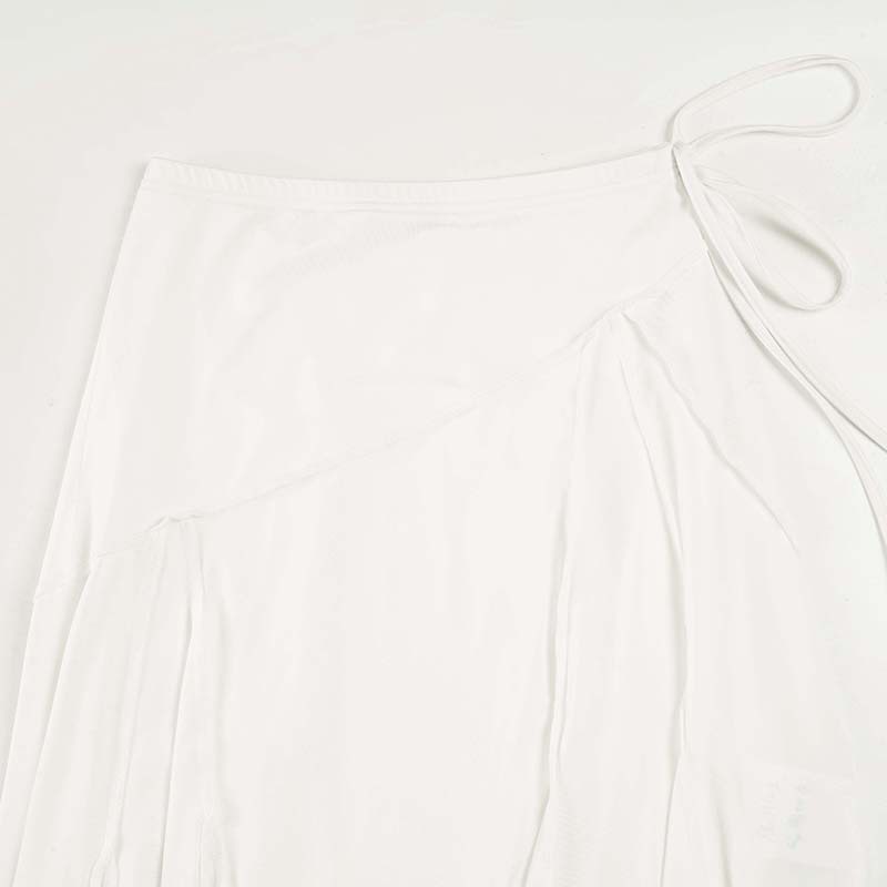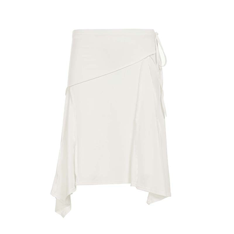 Holiday style light and familiar temperament irregular skirt European and American fashion white simple side strap Spice Girl medium and long skirt