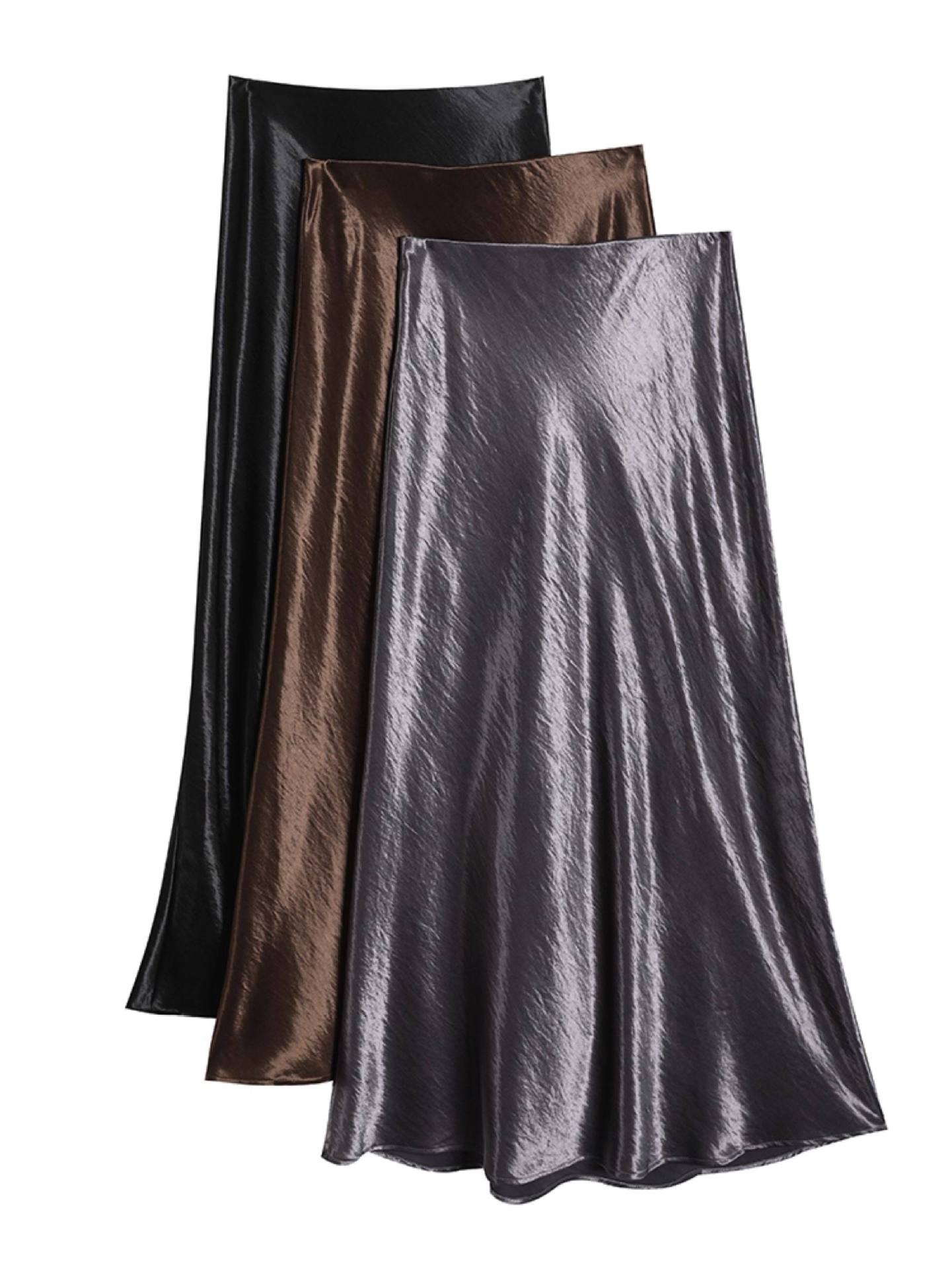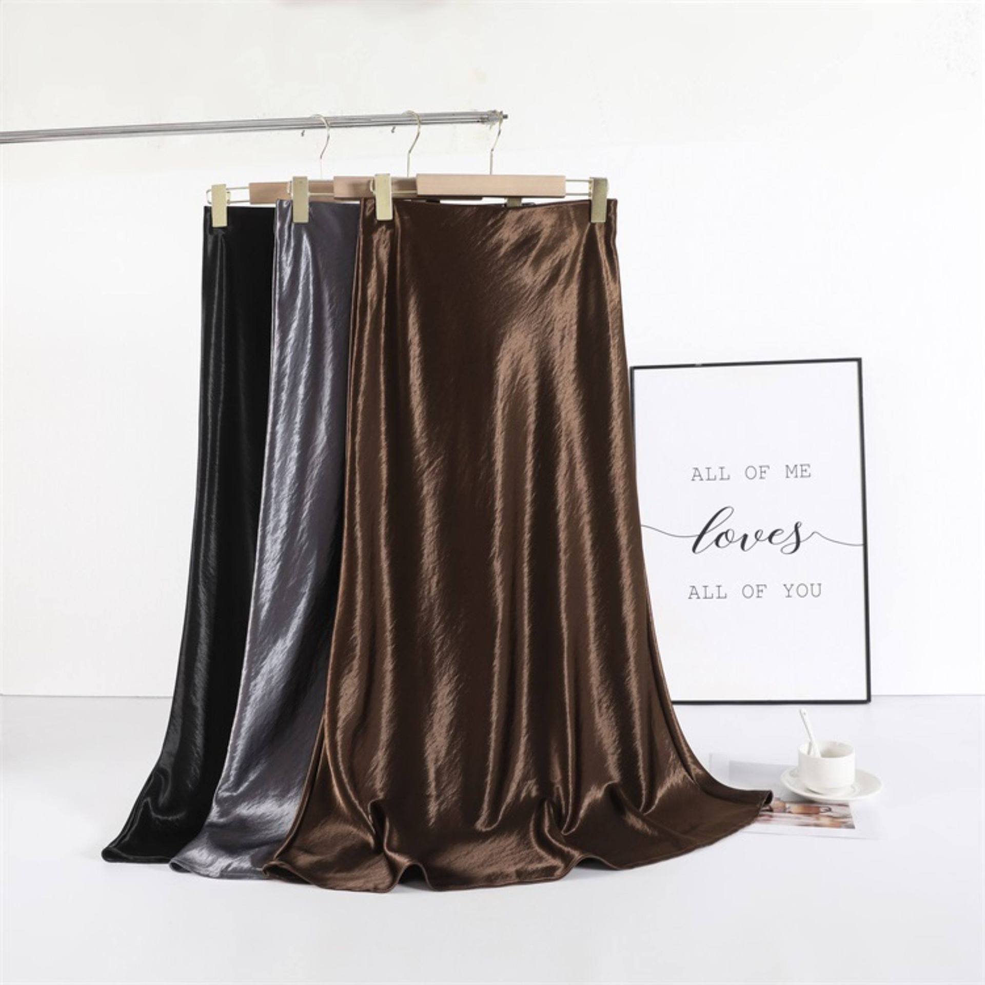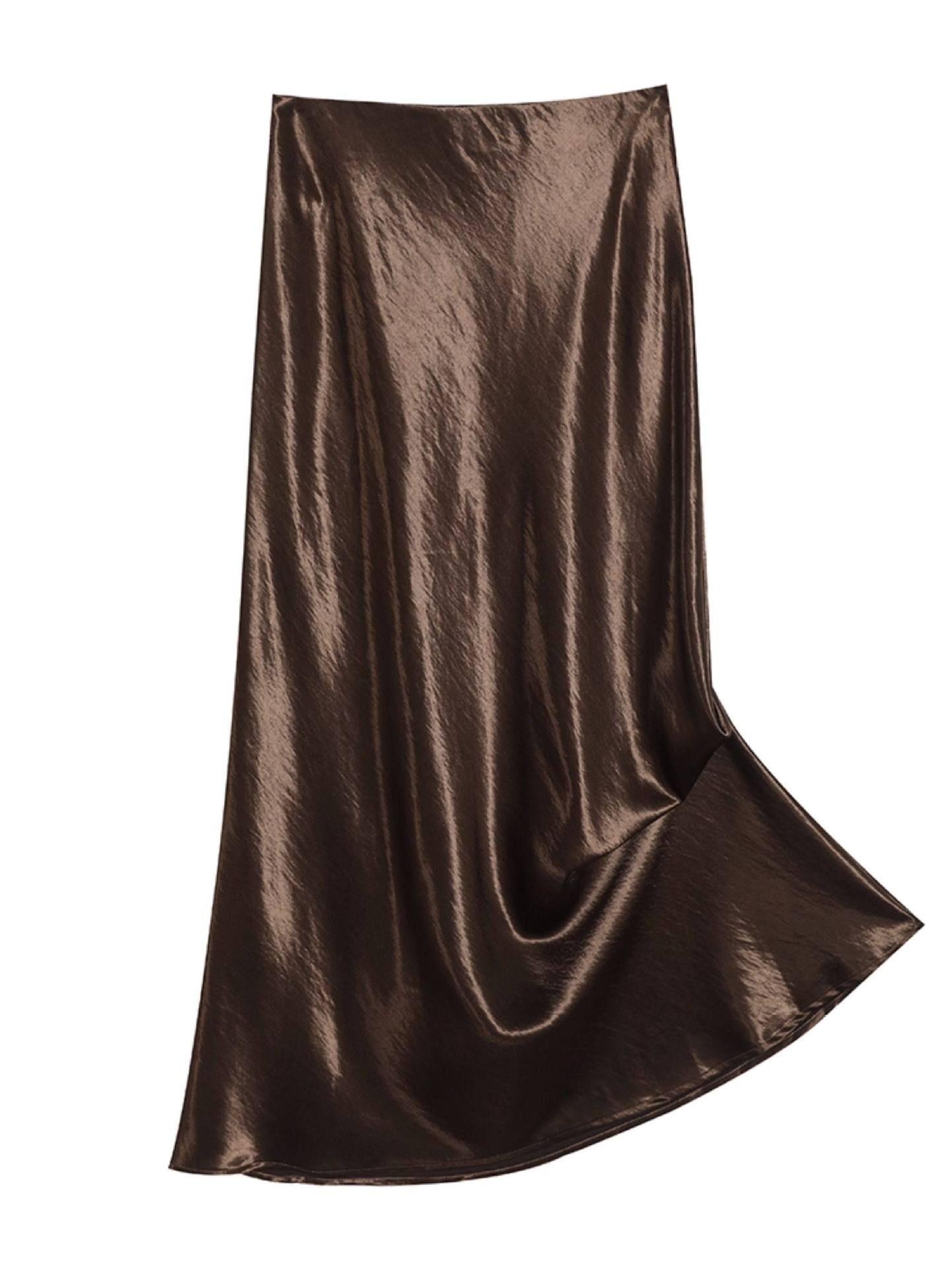 Imported new triacetic acid skirt, women's satin skirt diagonally cut a word acetic acid long skirt, thin and high waist luster