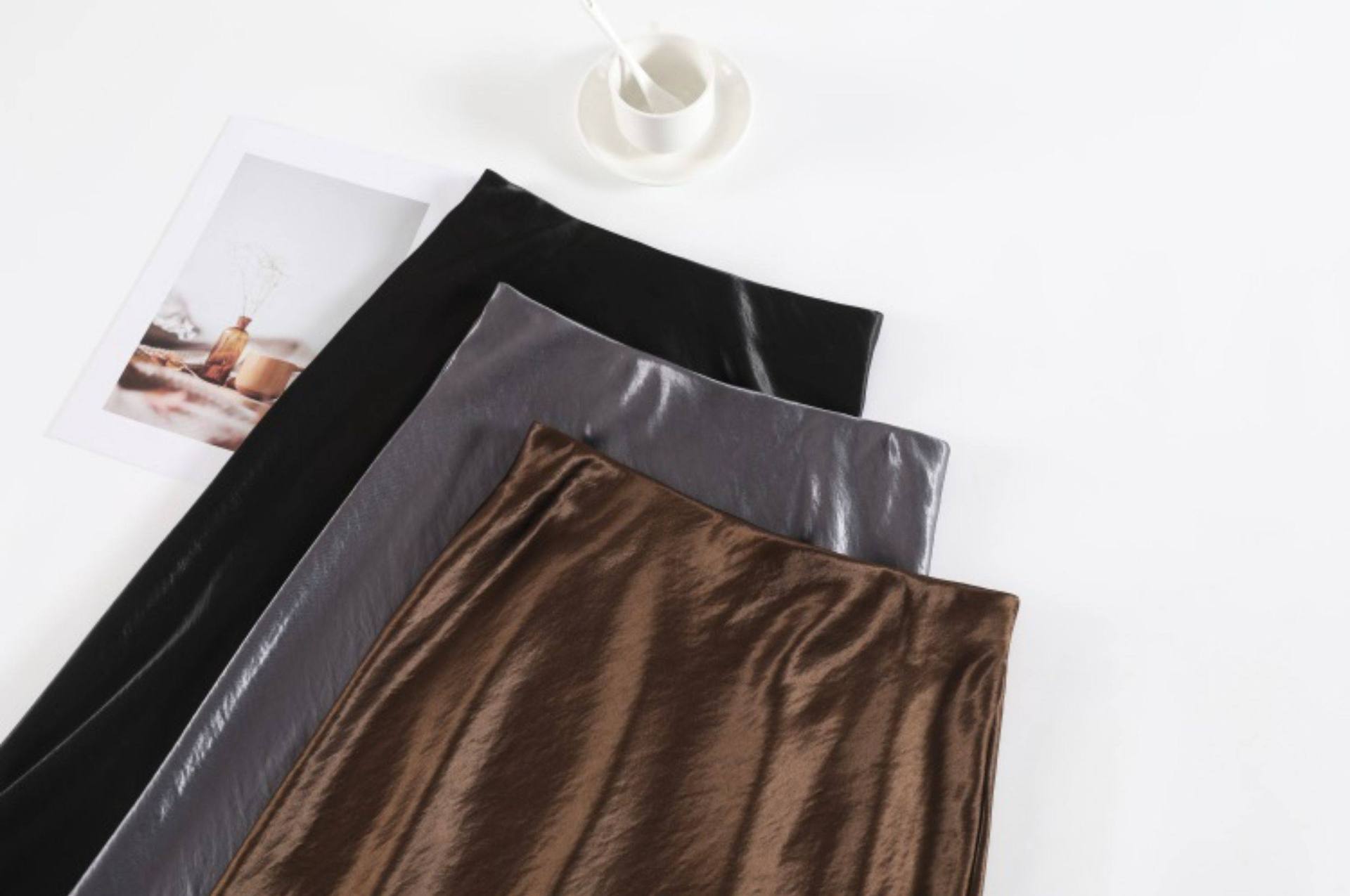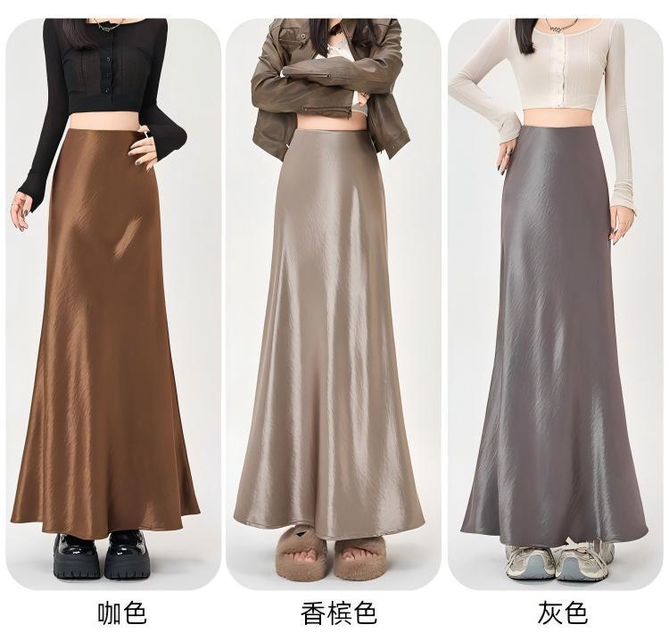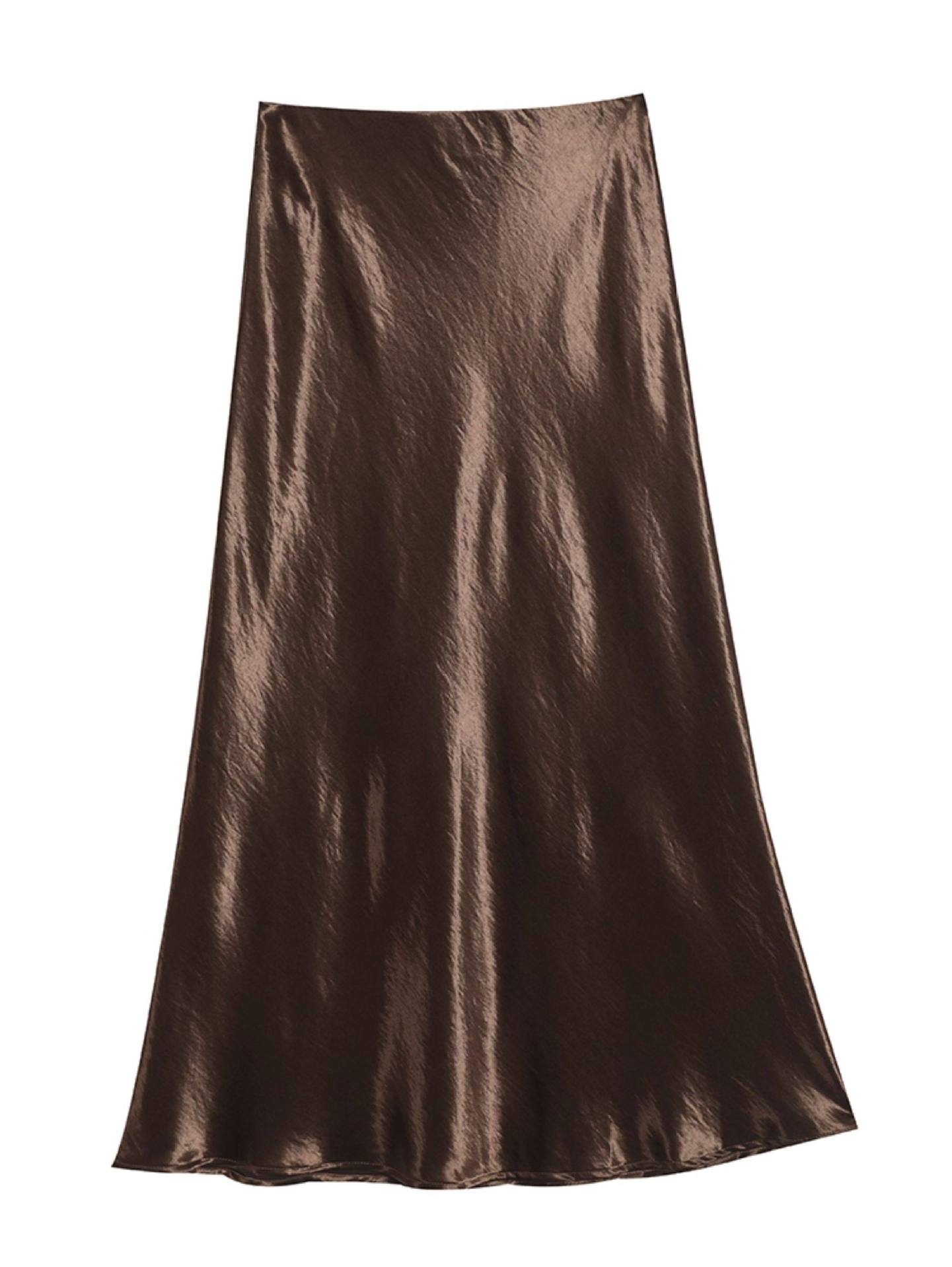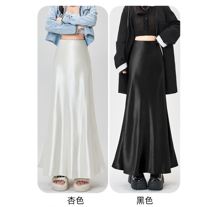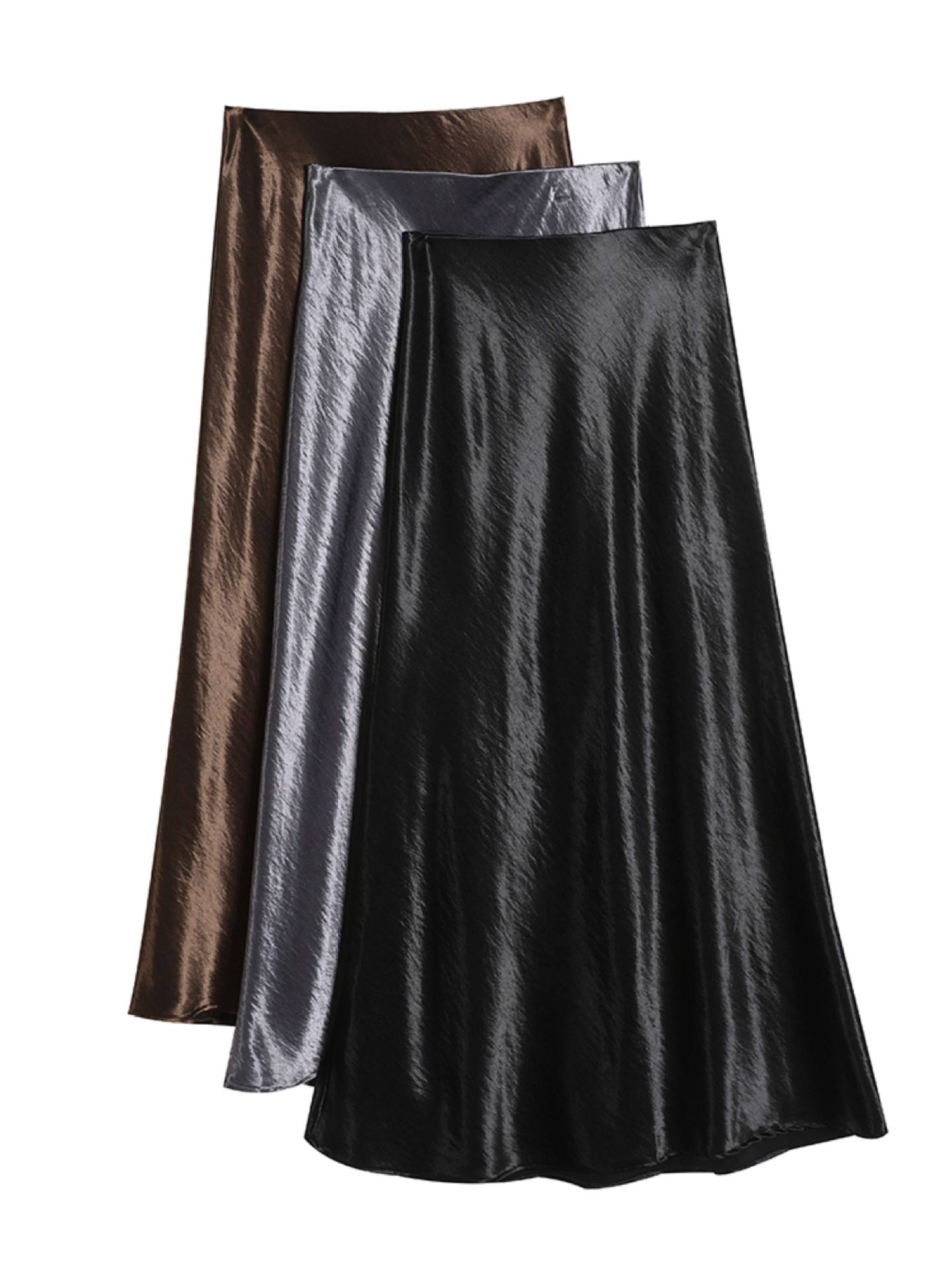 Imported new triacetic acid skirt, women's satin skirt diagonally cut a word acetic acid long skirt, thin and high waist luster