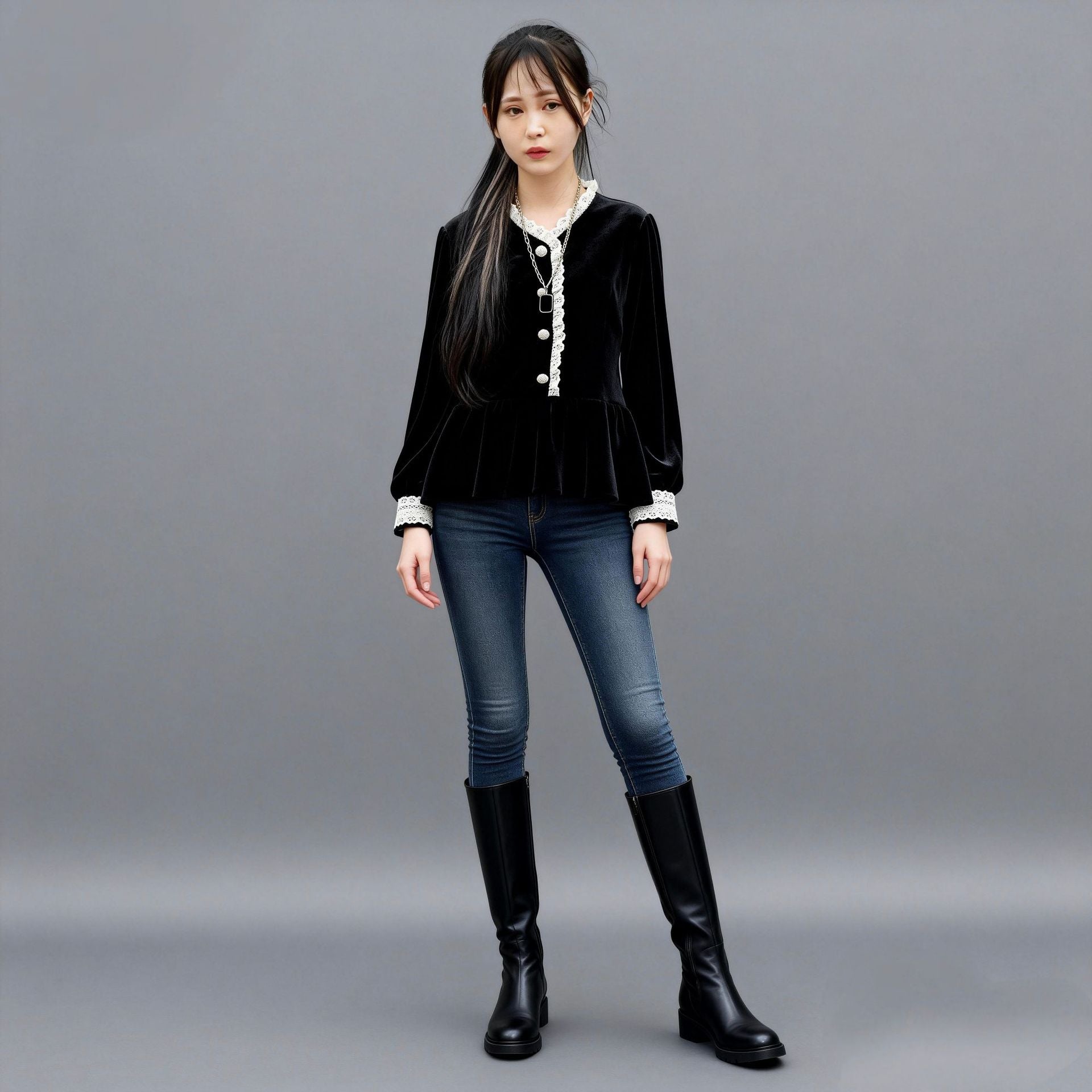 In the fall of 2025, the new large-size women's clothing covers the meat and looks thin. French retro long-sleeved shirt and top 221 #