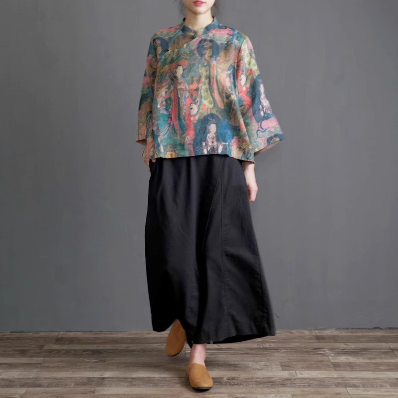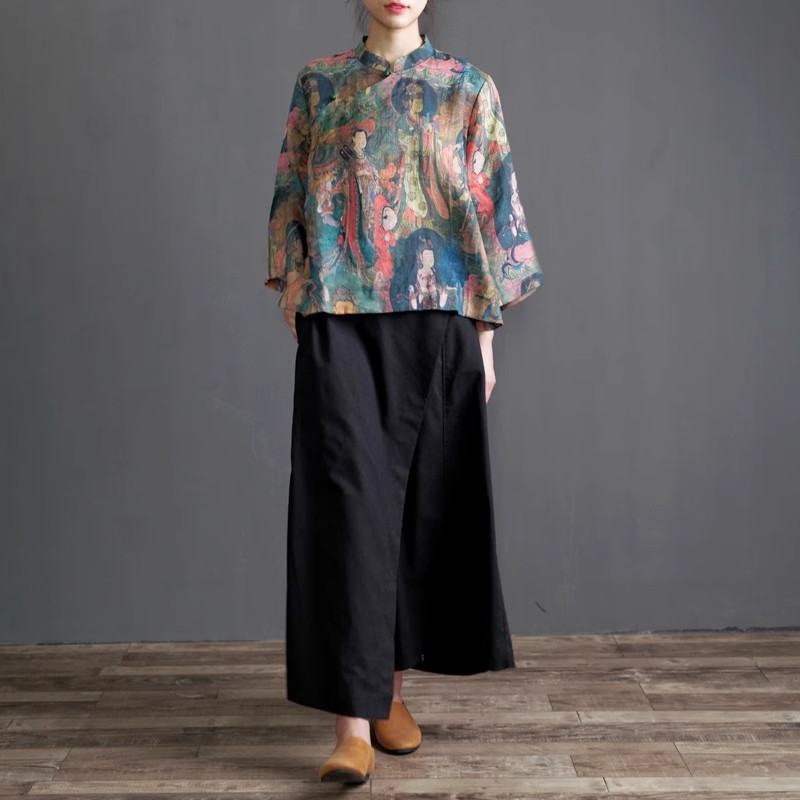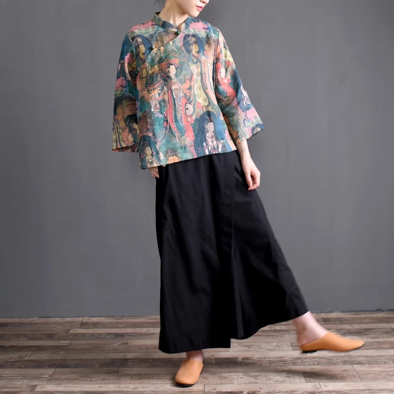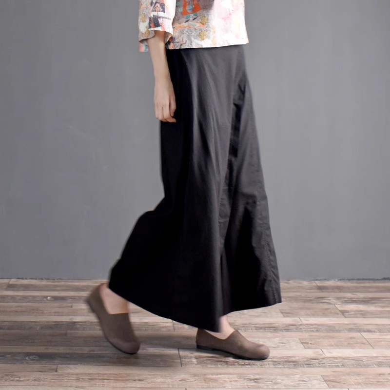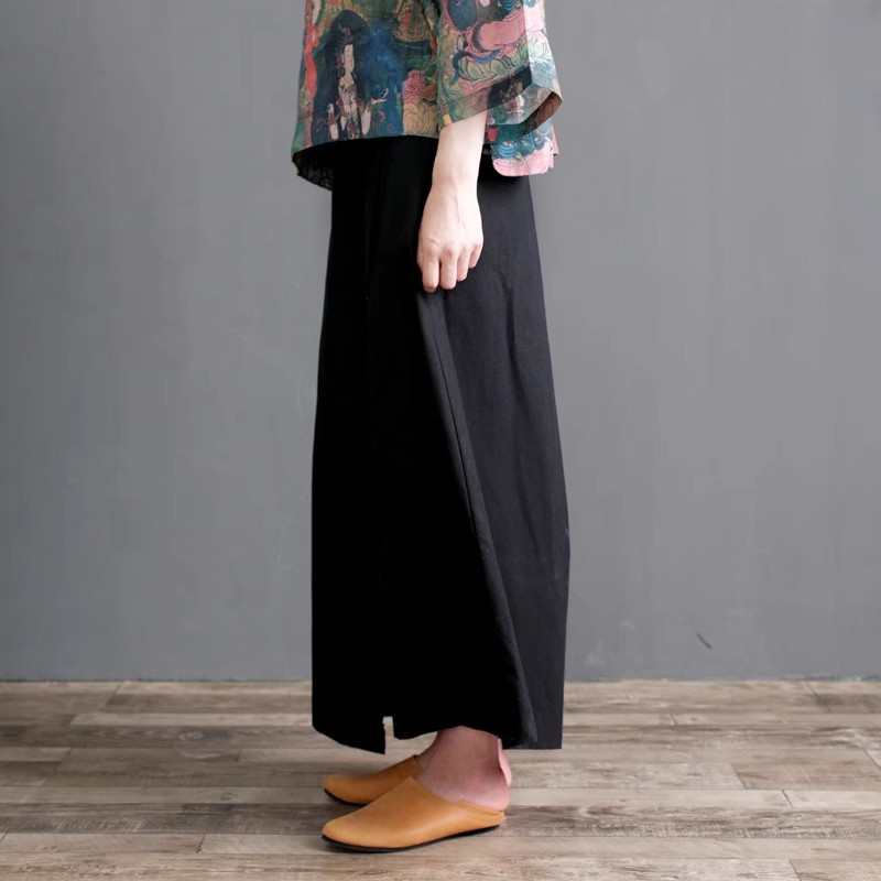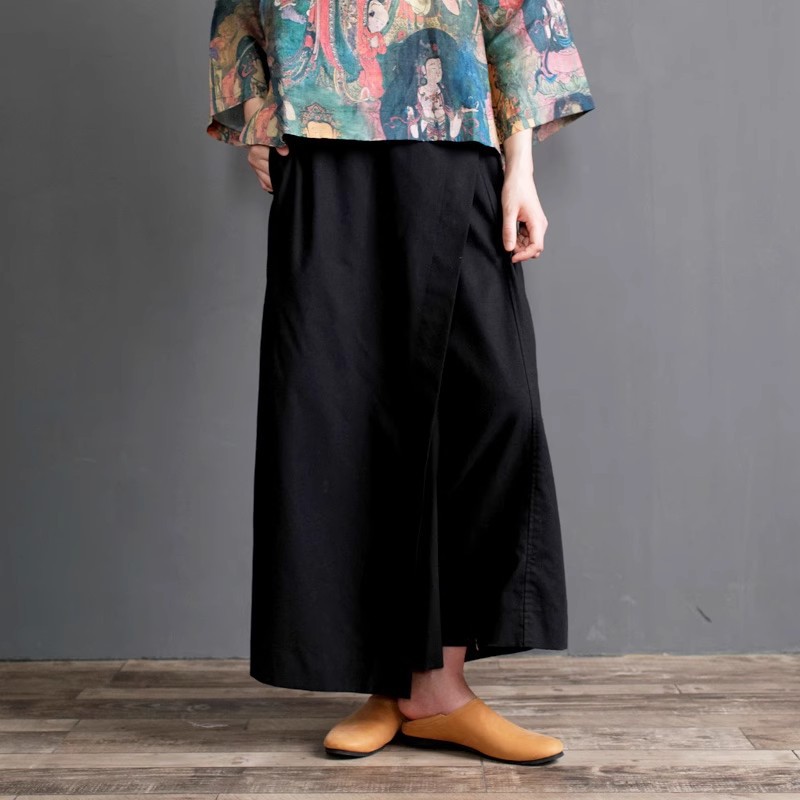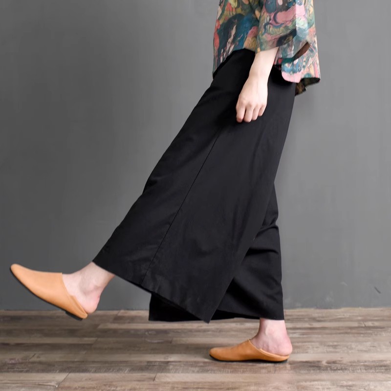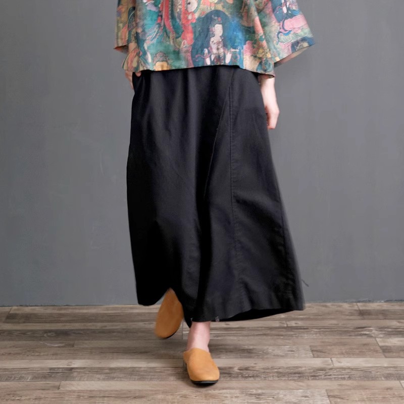 In the summer of 2024, the new cotton and linen literary loose large-size wide-leg pants with elastic waist and irregular swing skirt pants for women