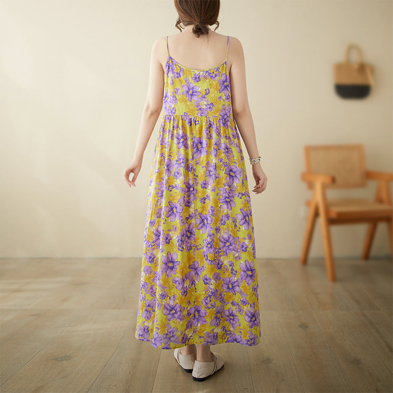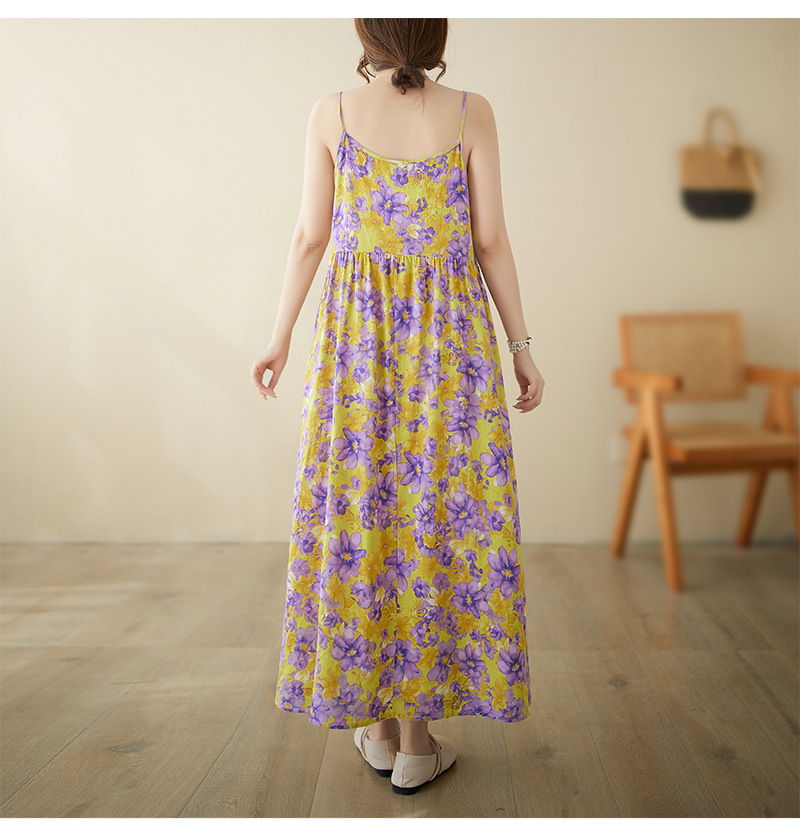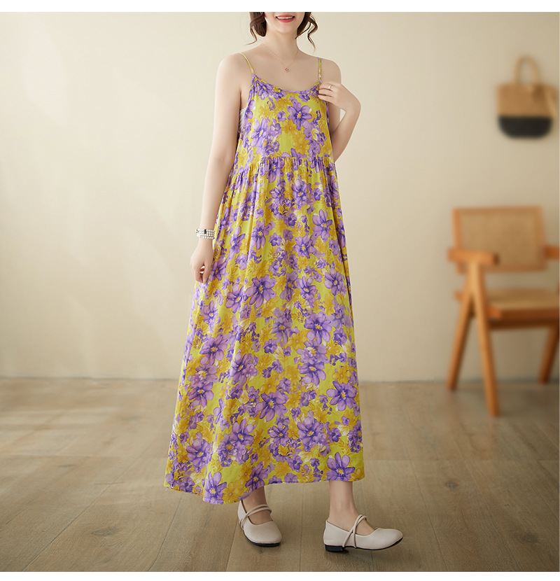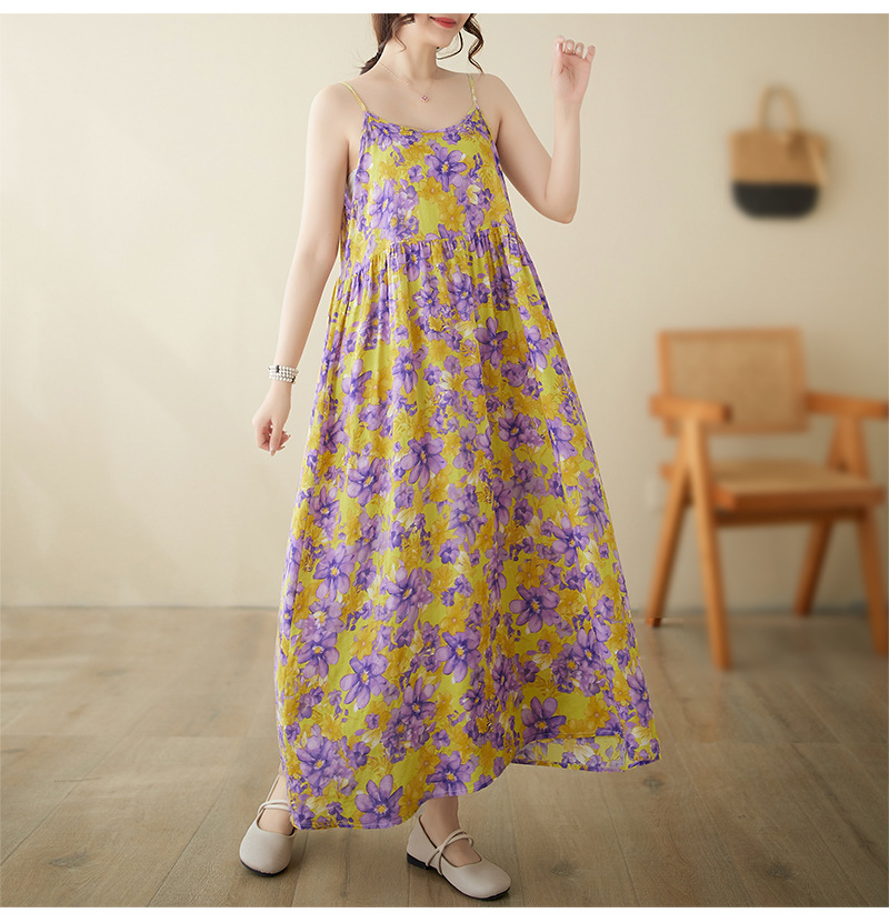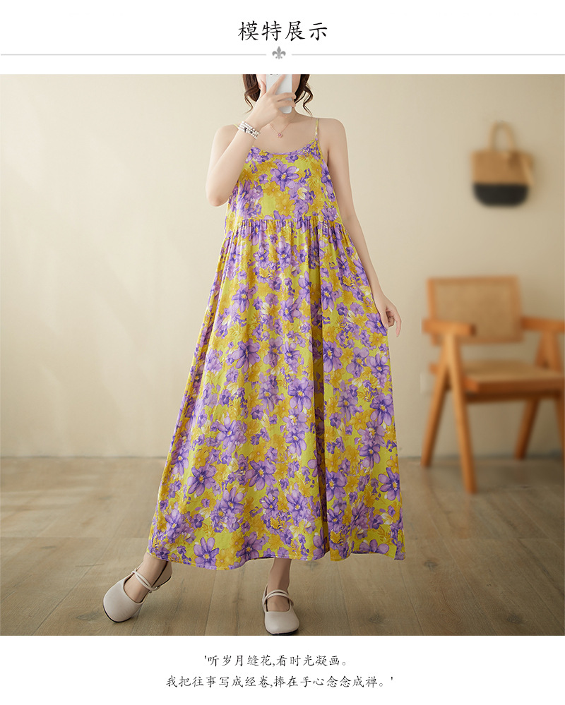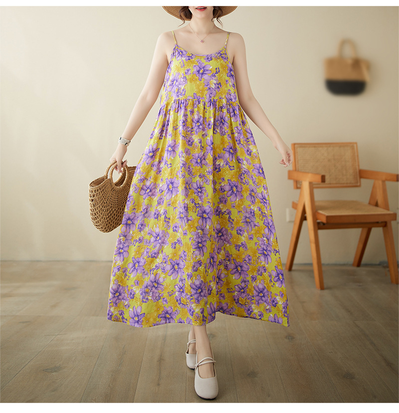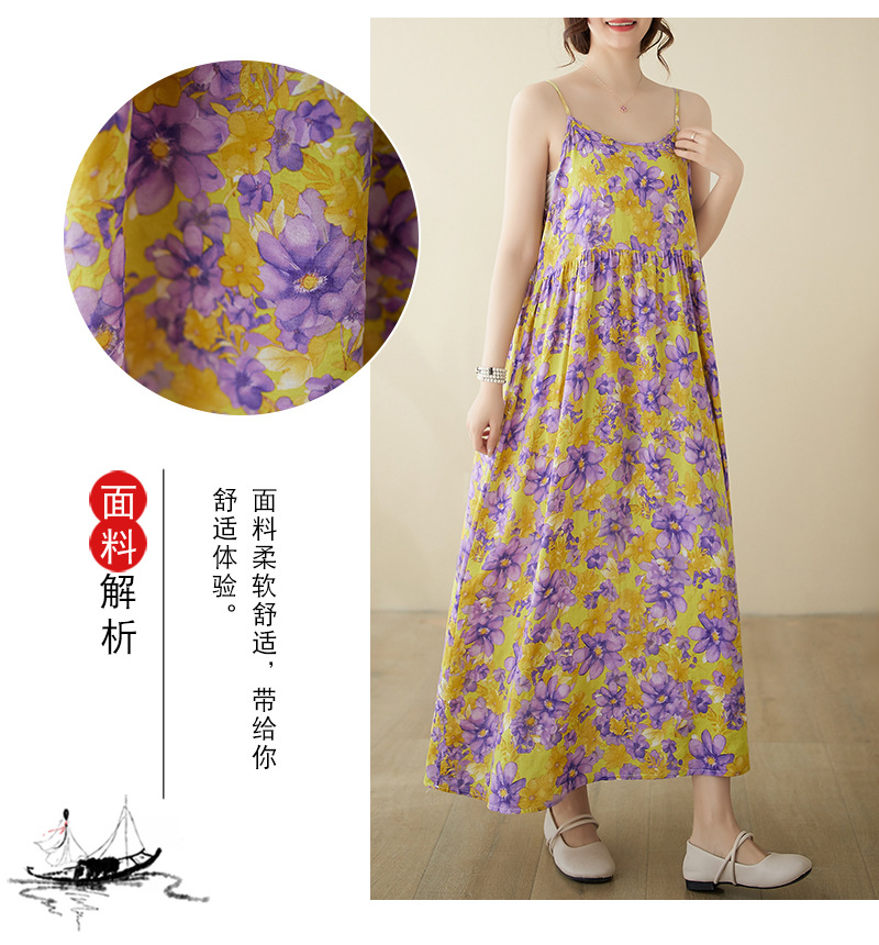 In the summer of 2024, the new literary and retro pastoral fairy beach dress pullover sleeveless suspender dress women