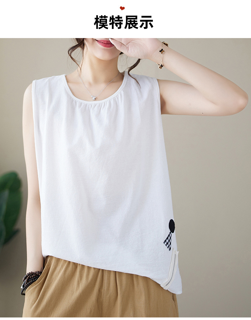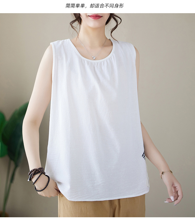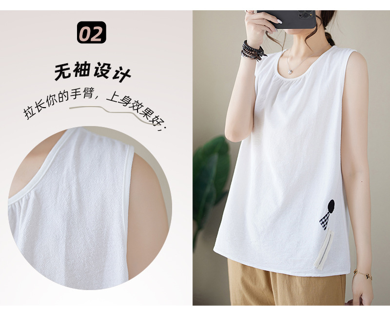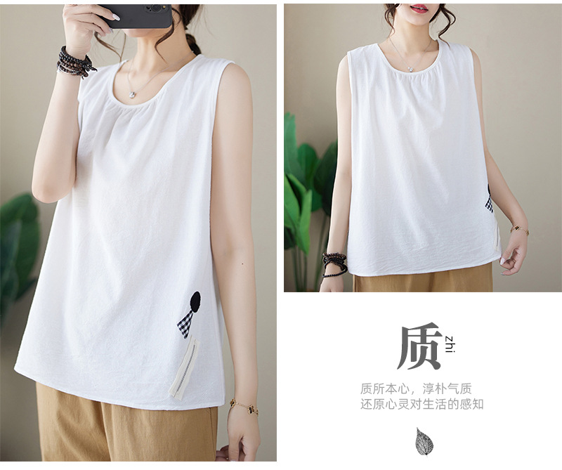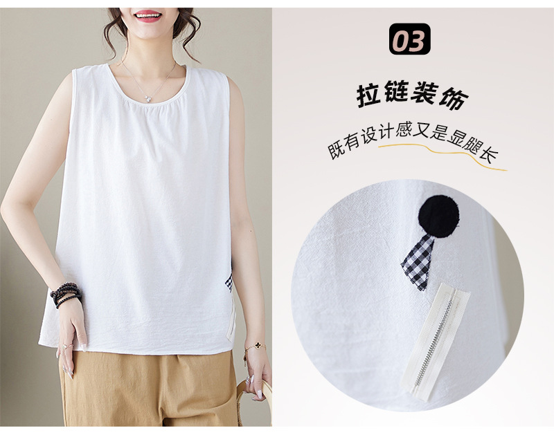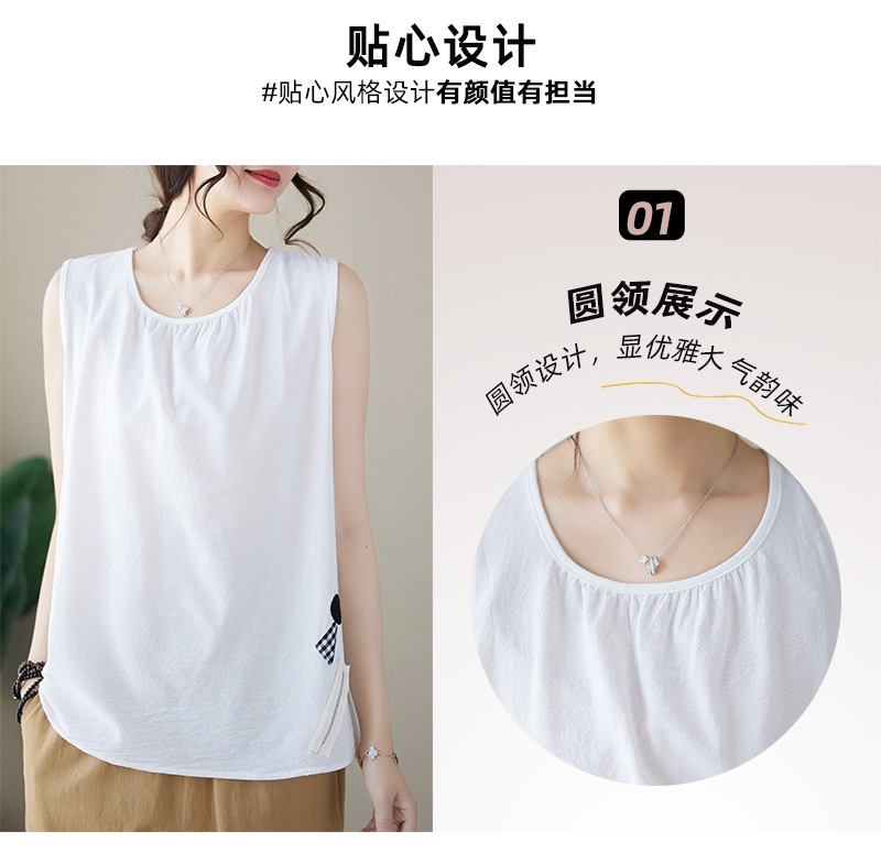 In the summer of 2025, the new cotton and linen patches, fine wrinkle vest, women's loose sleeveless T-shirt top